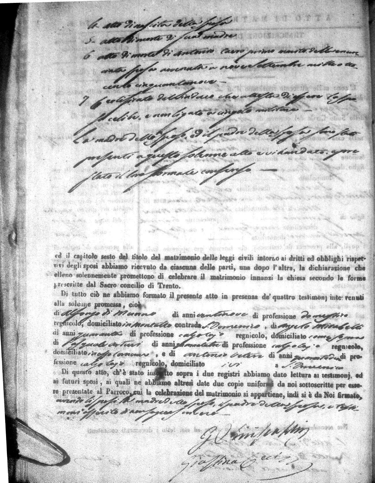 | 30 Apr | Tarsia | Gaetano | Luigi (fu) | Marrone | Lucrezia | Caruso | Palma Elisabetta | Giuseppe (fu) | Crivaro | Maria |