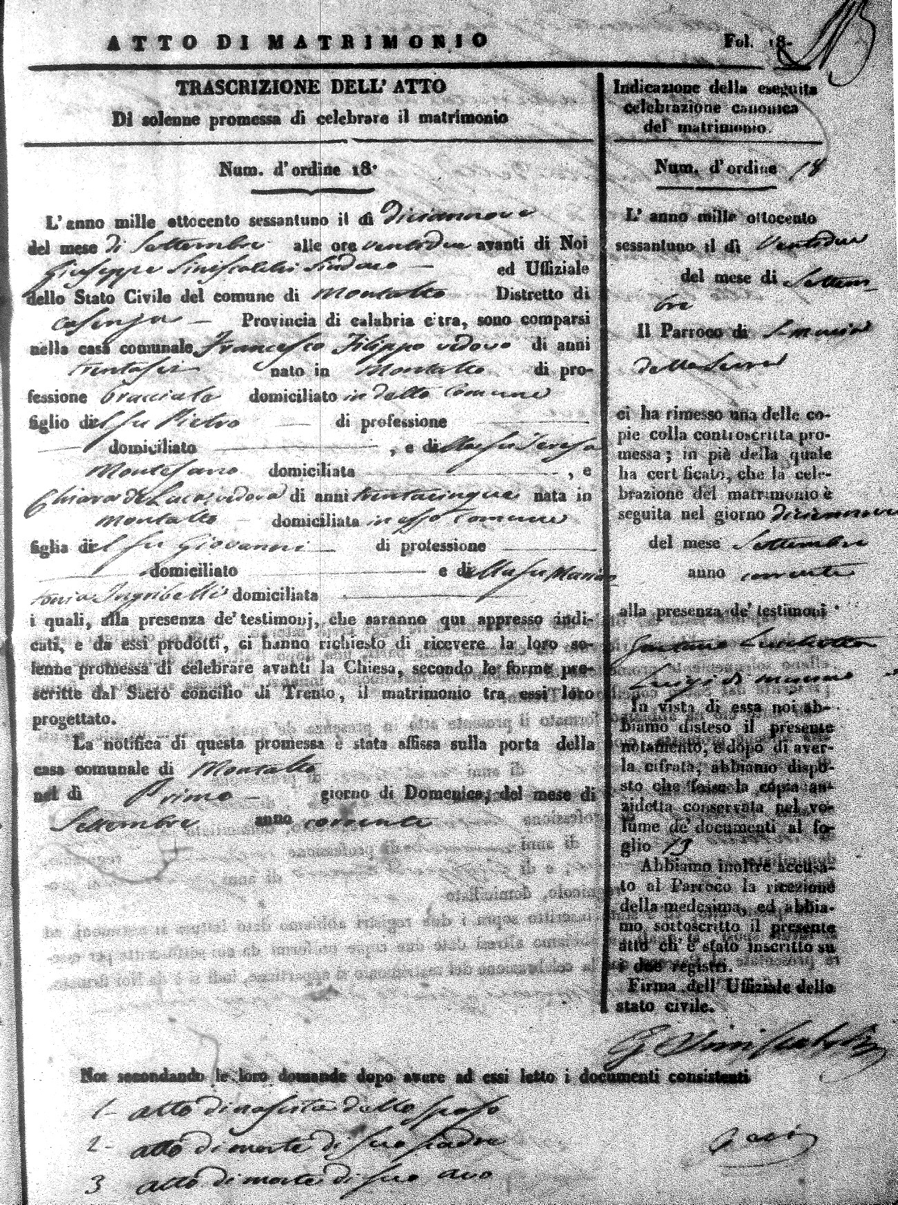 | 19 Sep | Filippo | Francesco | Pietro (fu) | Montesano | Teresa (fu) | DeLuca | Chiara | Giovanni (fu) | Ingribelli | Mariantonia (fu) |