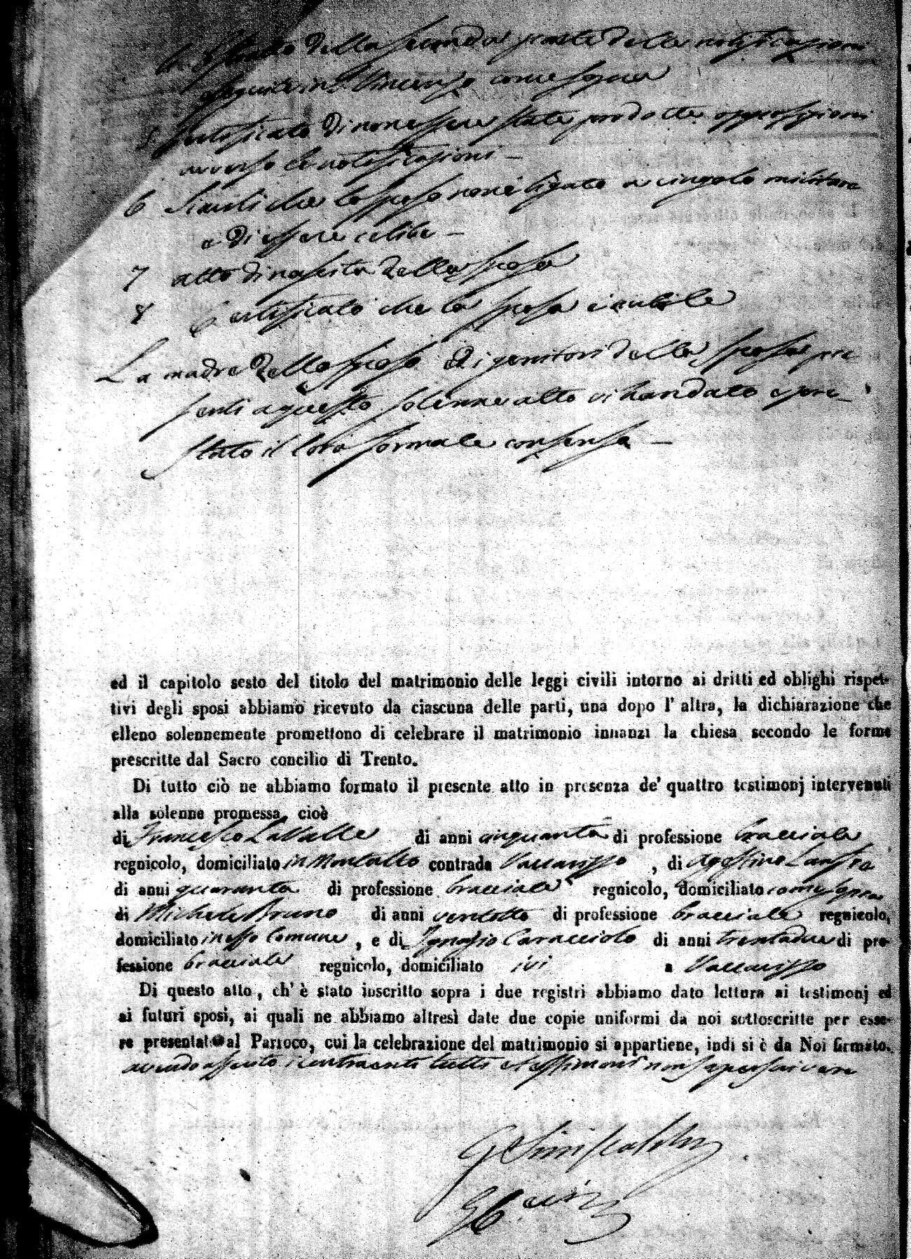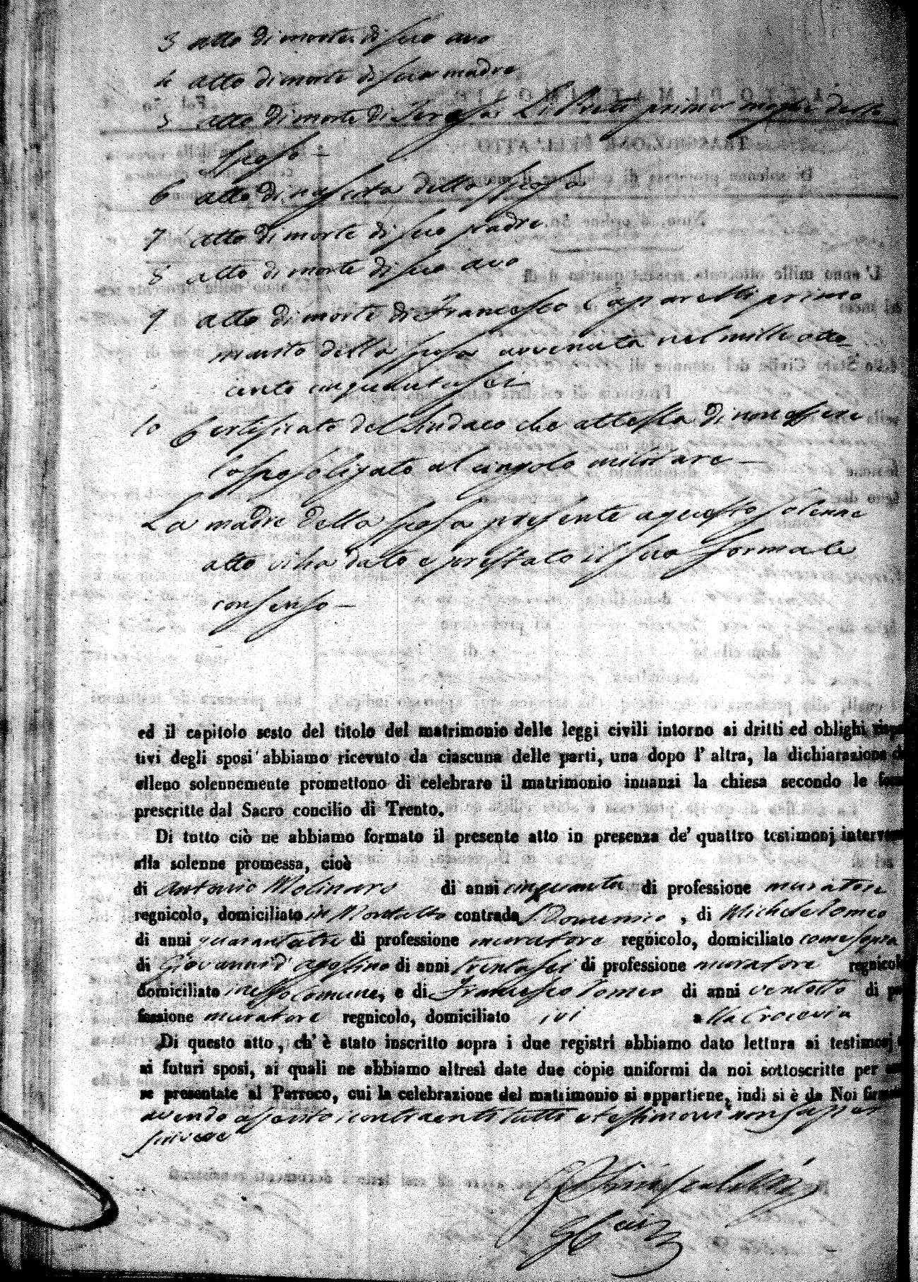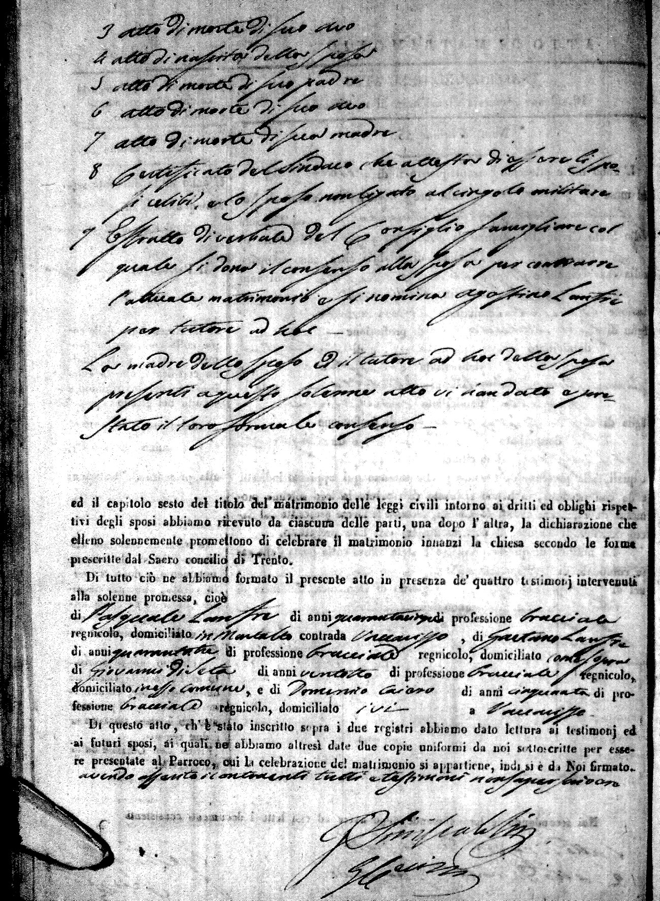 | 12 Oct | Mele | Giuseppe Antonio | Francesco (fu) | Mantuano | Stella (fu) | Novello | Caterina | Bonaventuro (fu) | Lanfre | Angela (fu) |
