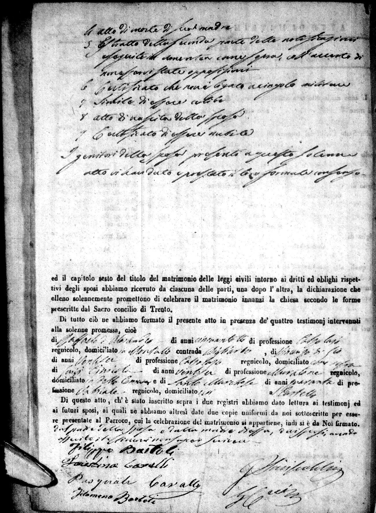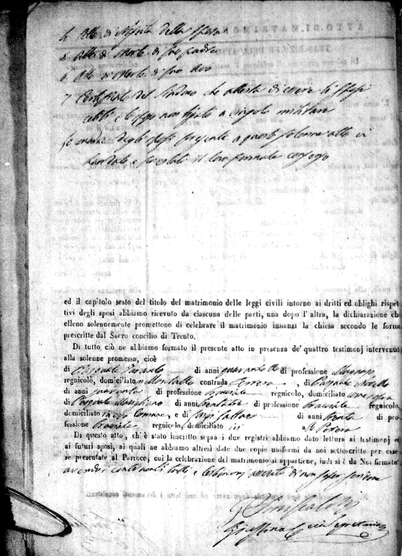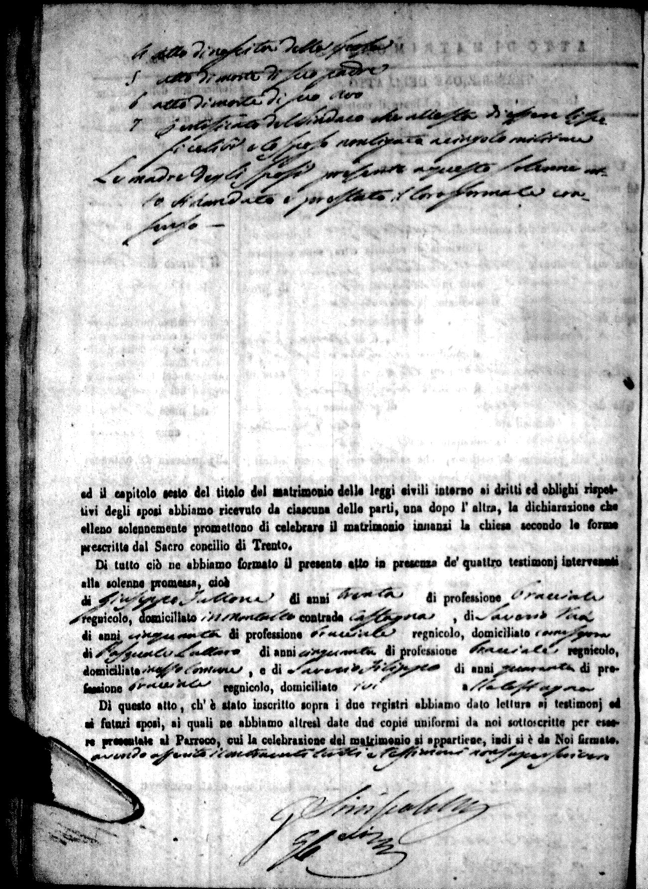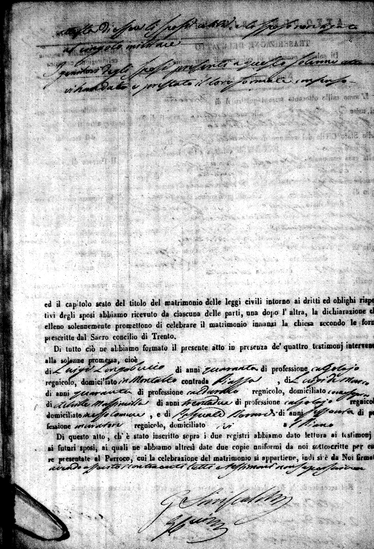 | 12 Oct | Mele | Giuseppe Antonio | Francesco (fu) | Mantuano | Stella (fu) | Novello | Caterina | Bonaventuro (fu) | Lanfre | Angela (fu) |