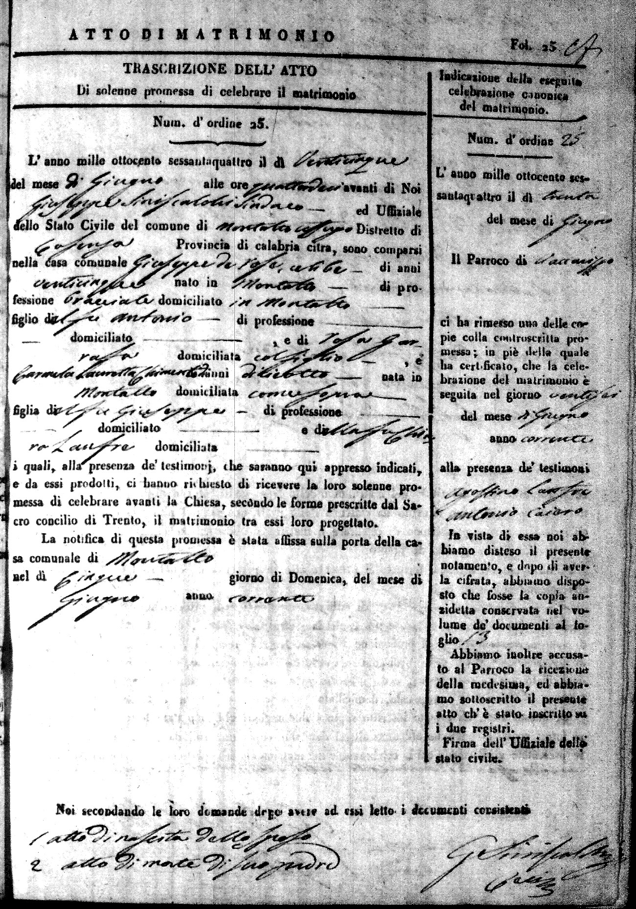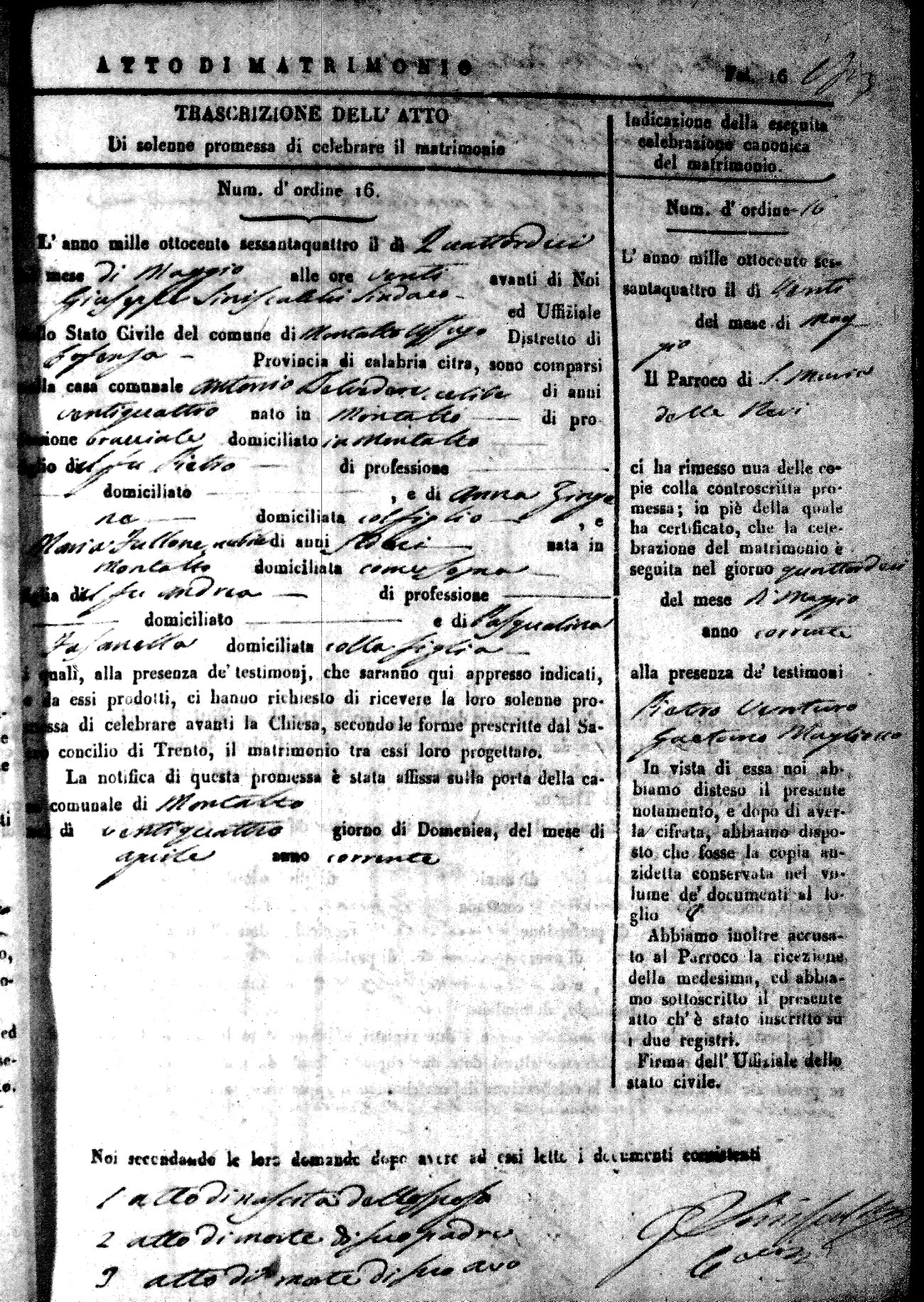 | 16 Jun | Piraino | Michele | Giuseppe (fu) | deSimone | Vittoria | Lunnacci | Maria Rosaria | Francesco (fu) | Curcio | Mariantonia (fu) |