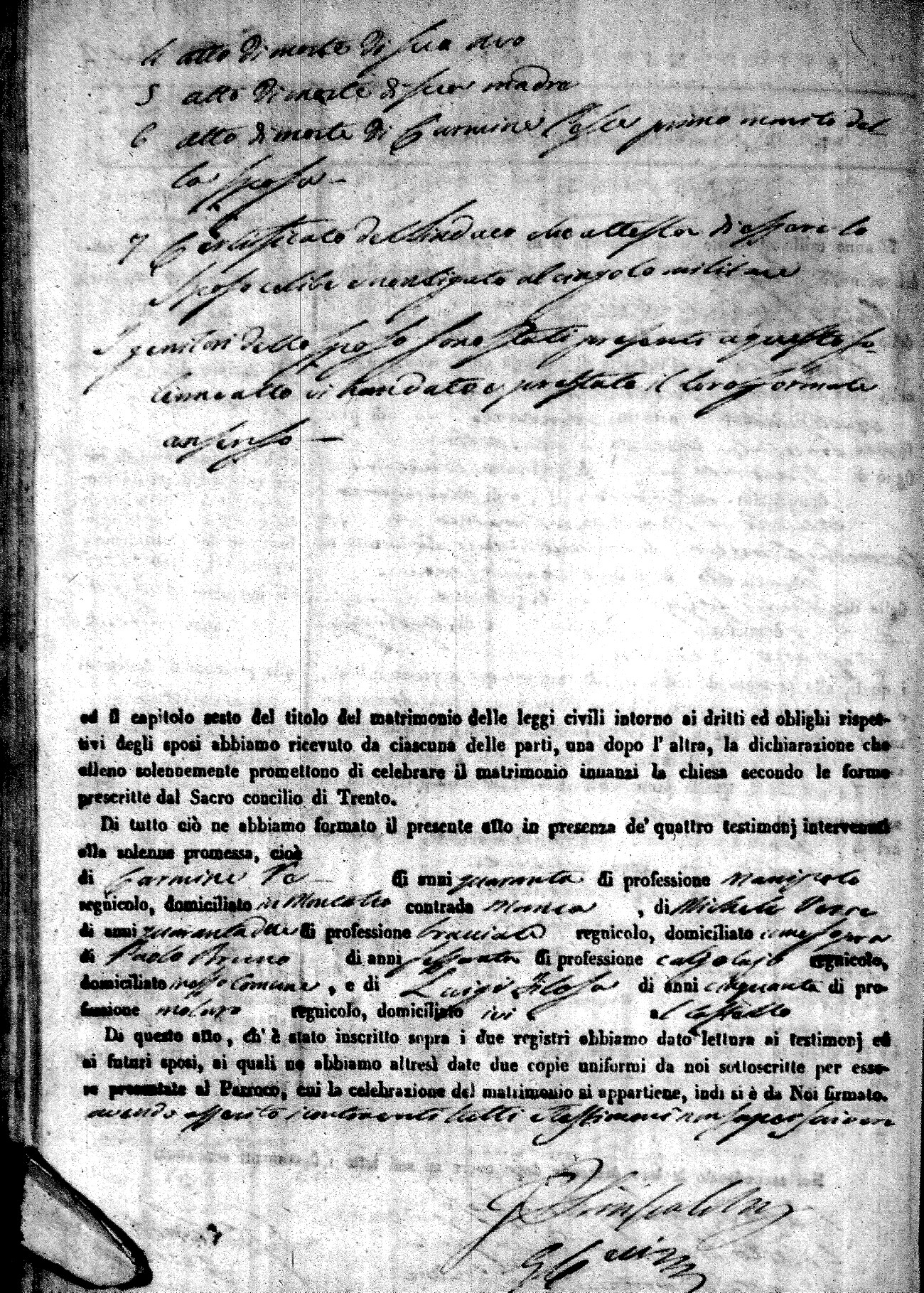 | 5 Oct | Alfano | Vincenzo | Francesco (fu) | Ortino | Saveria | Sciommarella | Chiara | Francesco | Marchese | Maria |