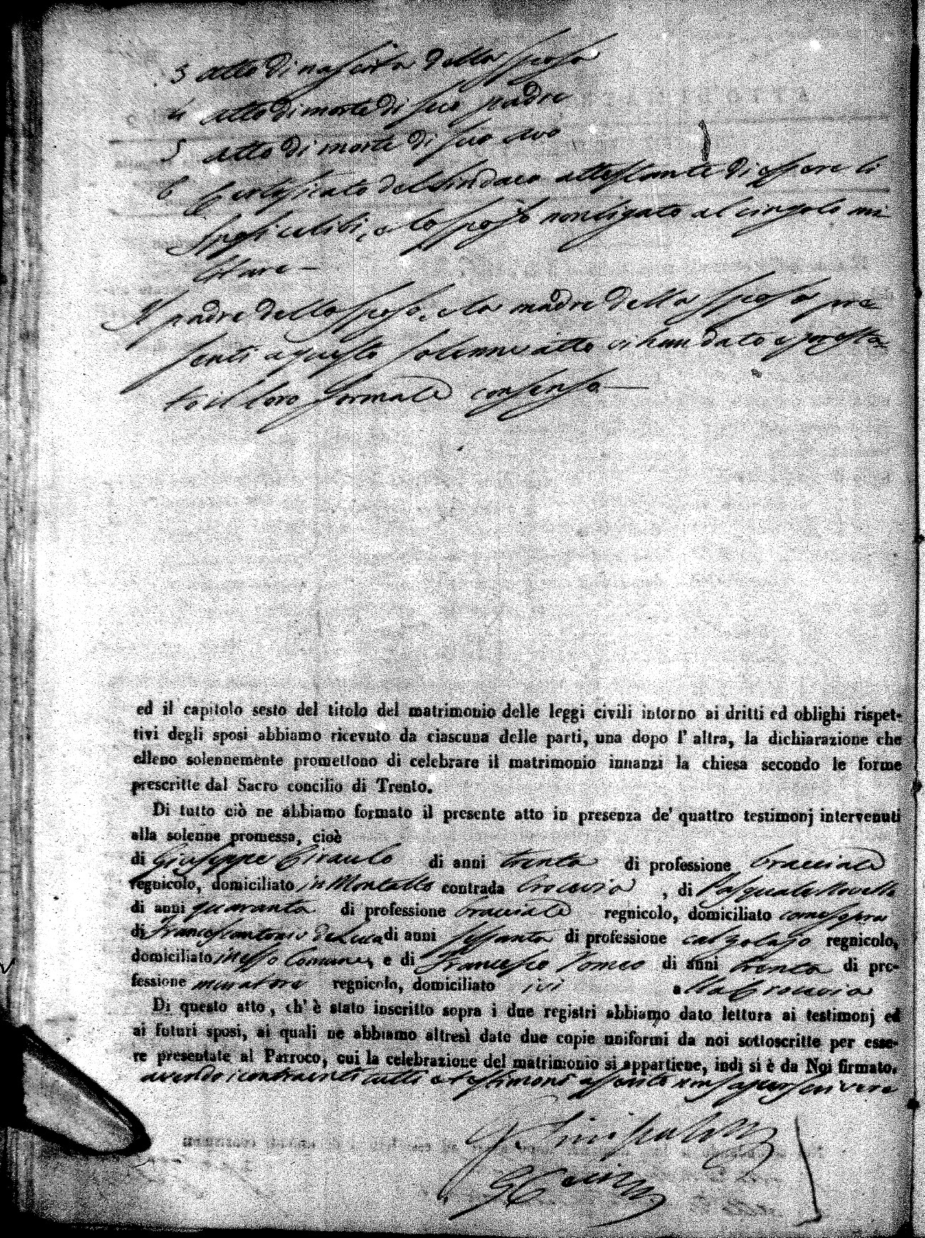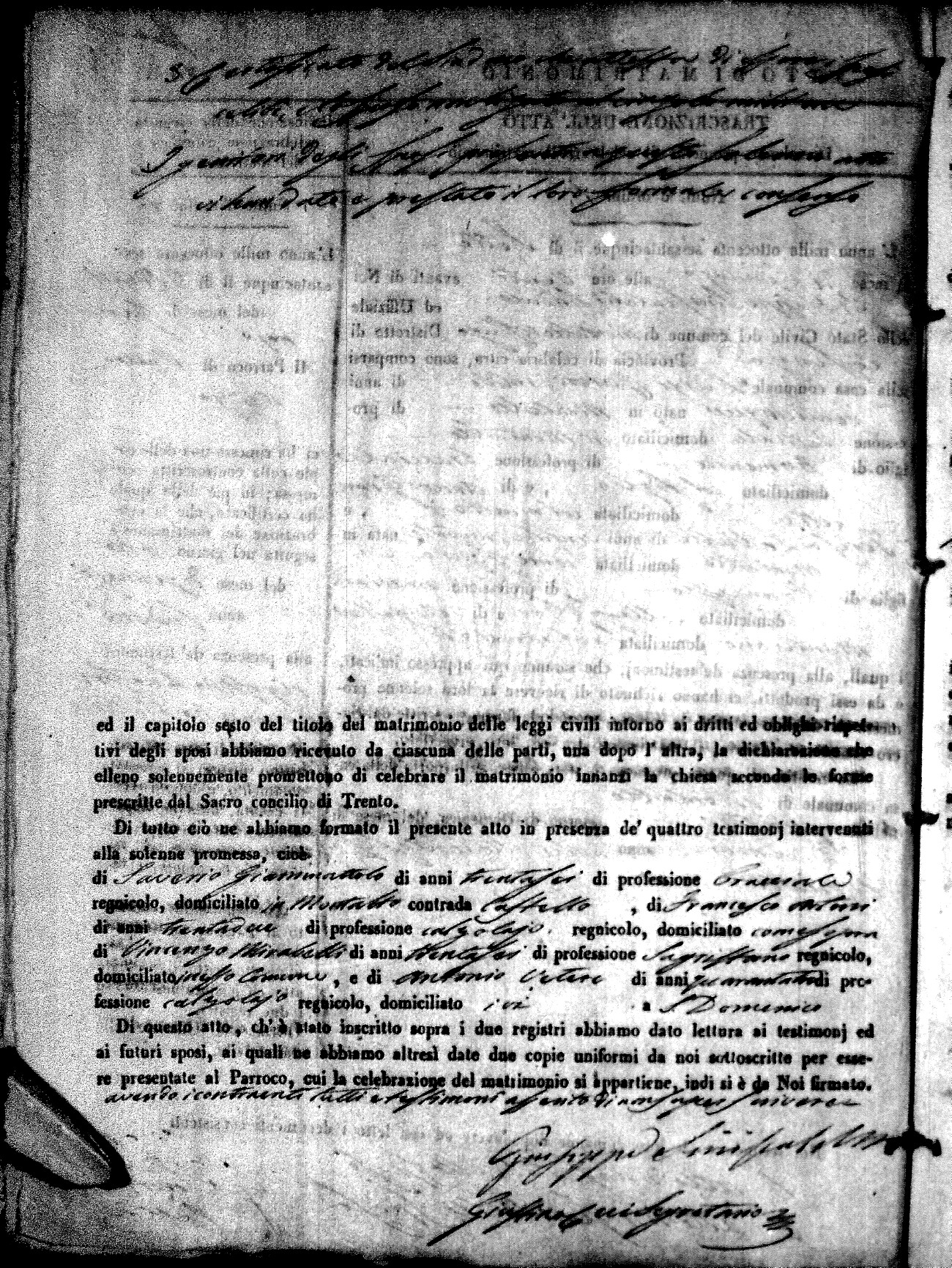 | Giammattolo | Gaetano | Giuseppe (fu) | Florio | Rosa Saveria | Taranto | Maria Gaetana | Francesco (fu) | Aloise | Serafina (fu) |