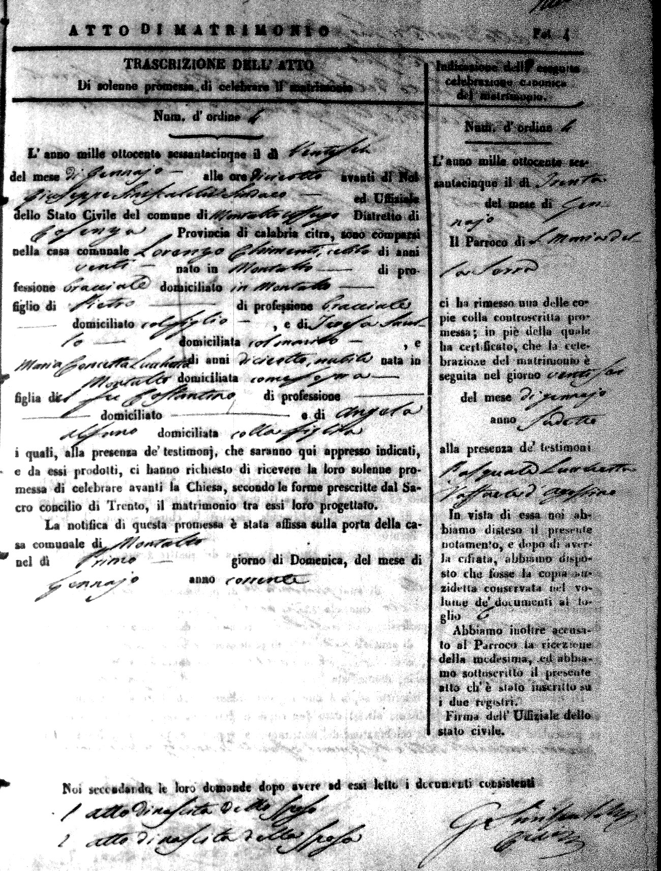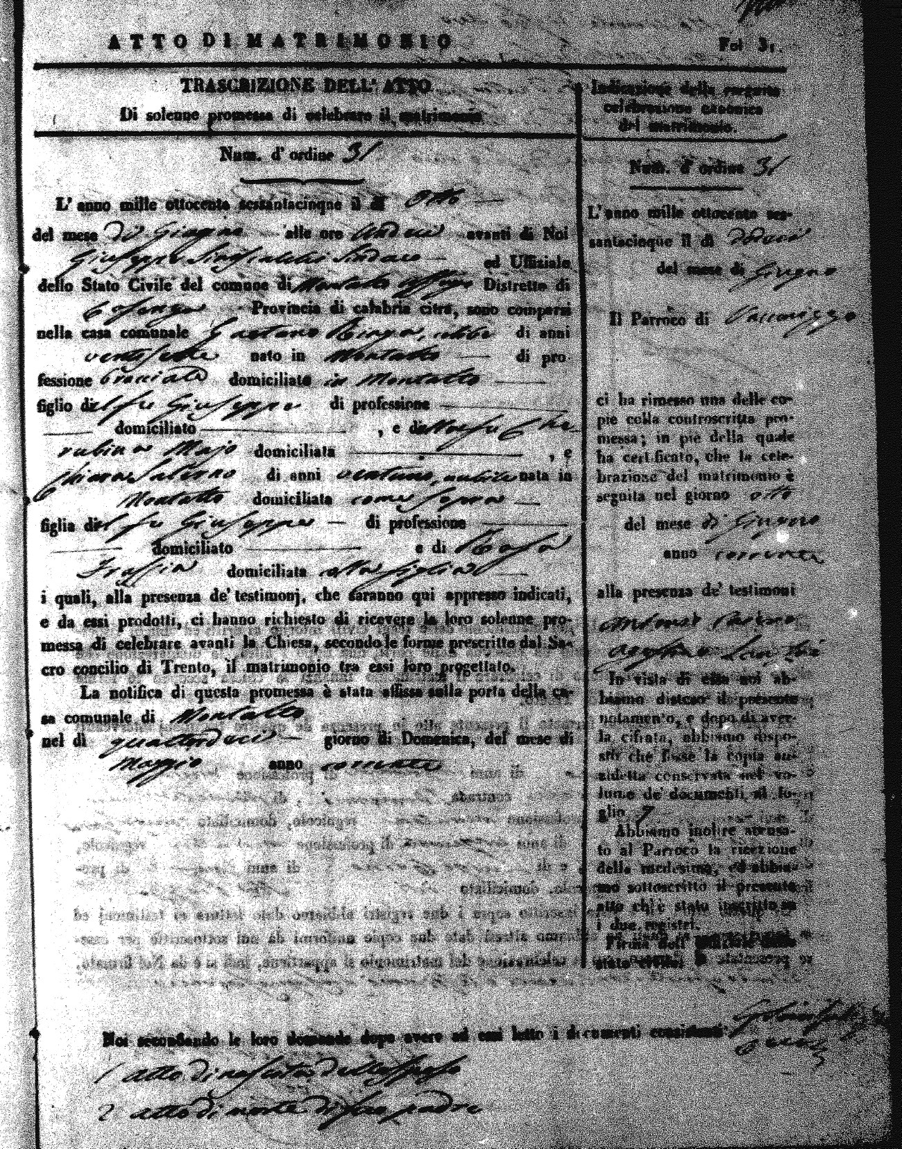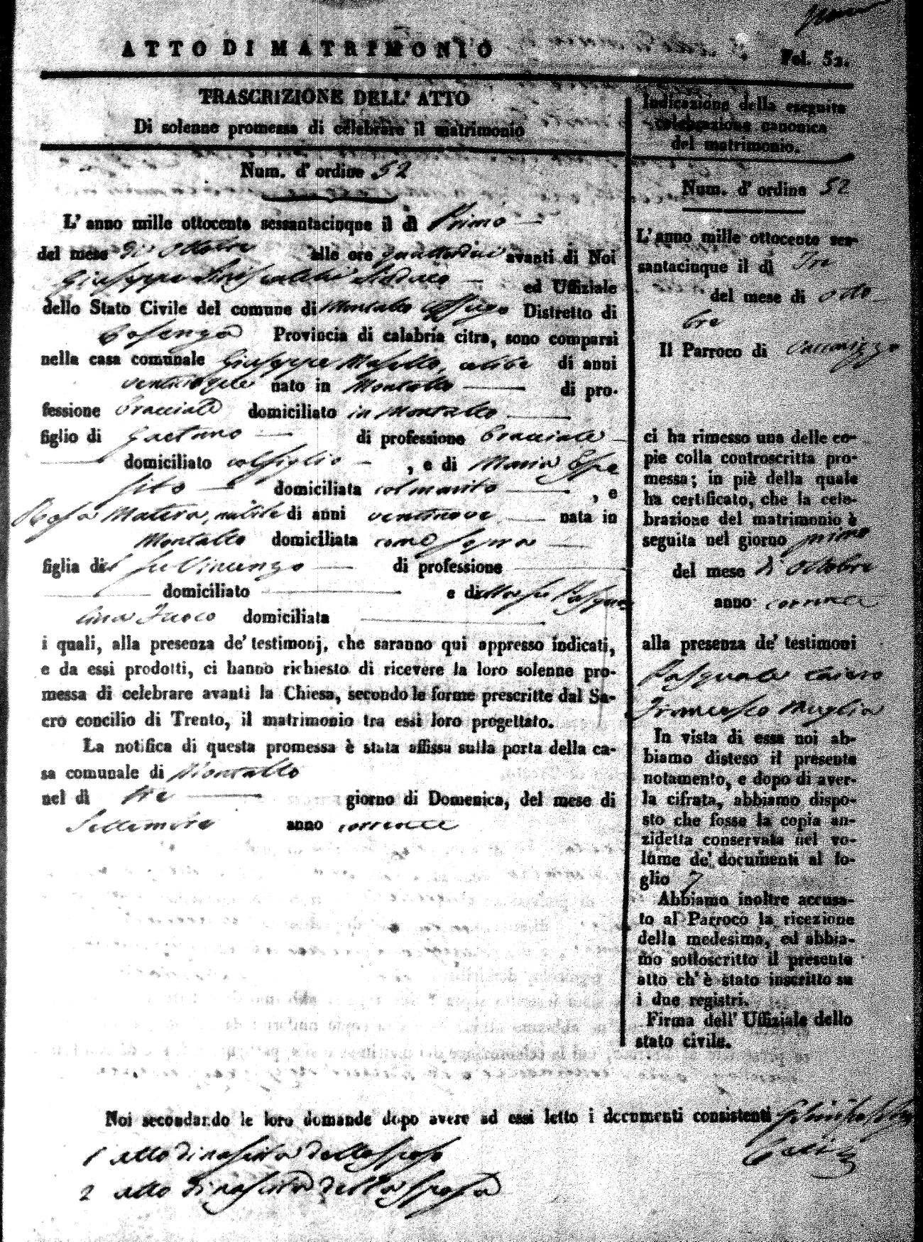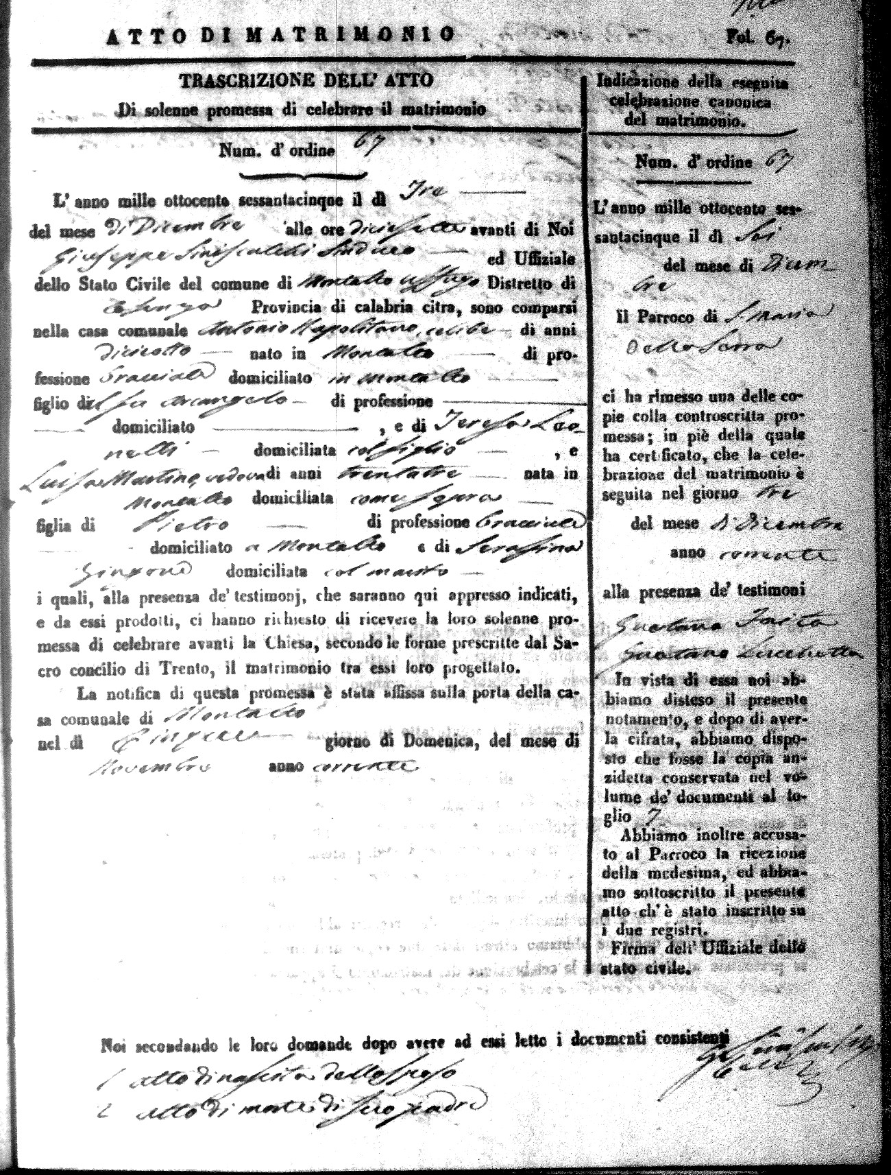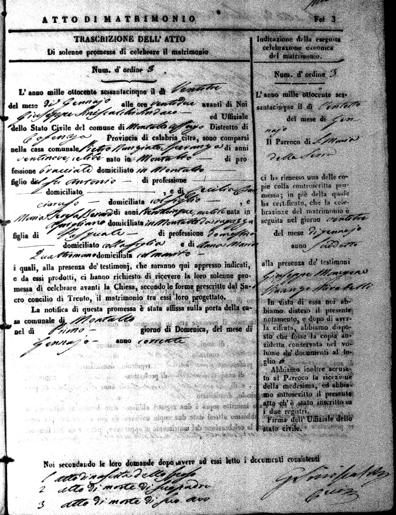 Here are the extractions for all the marriage acts in 1865 for Montalto Uffugo. When you see (fu) next to the parents names, that indicates that they were deceased at the time the marriage took place. For more information, click on the groom's surname to view a copy of the original document.