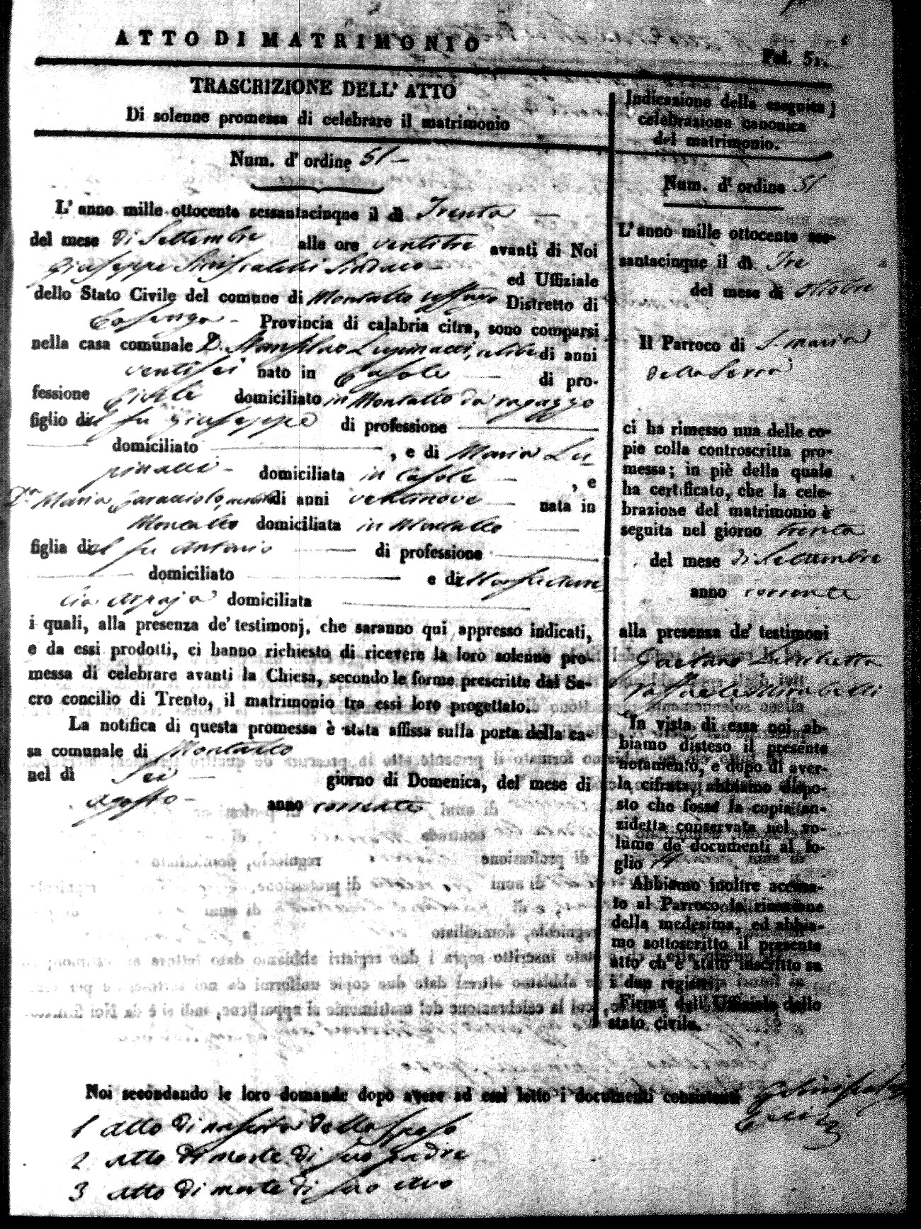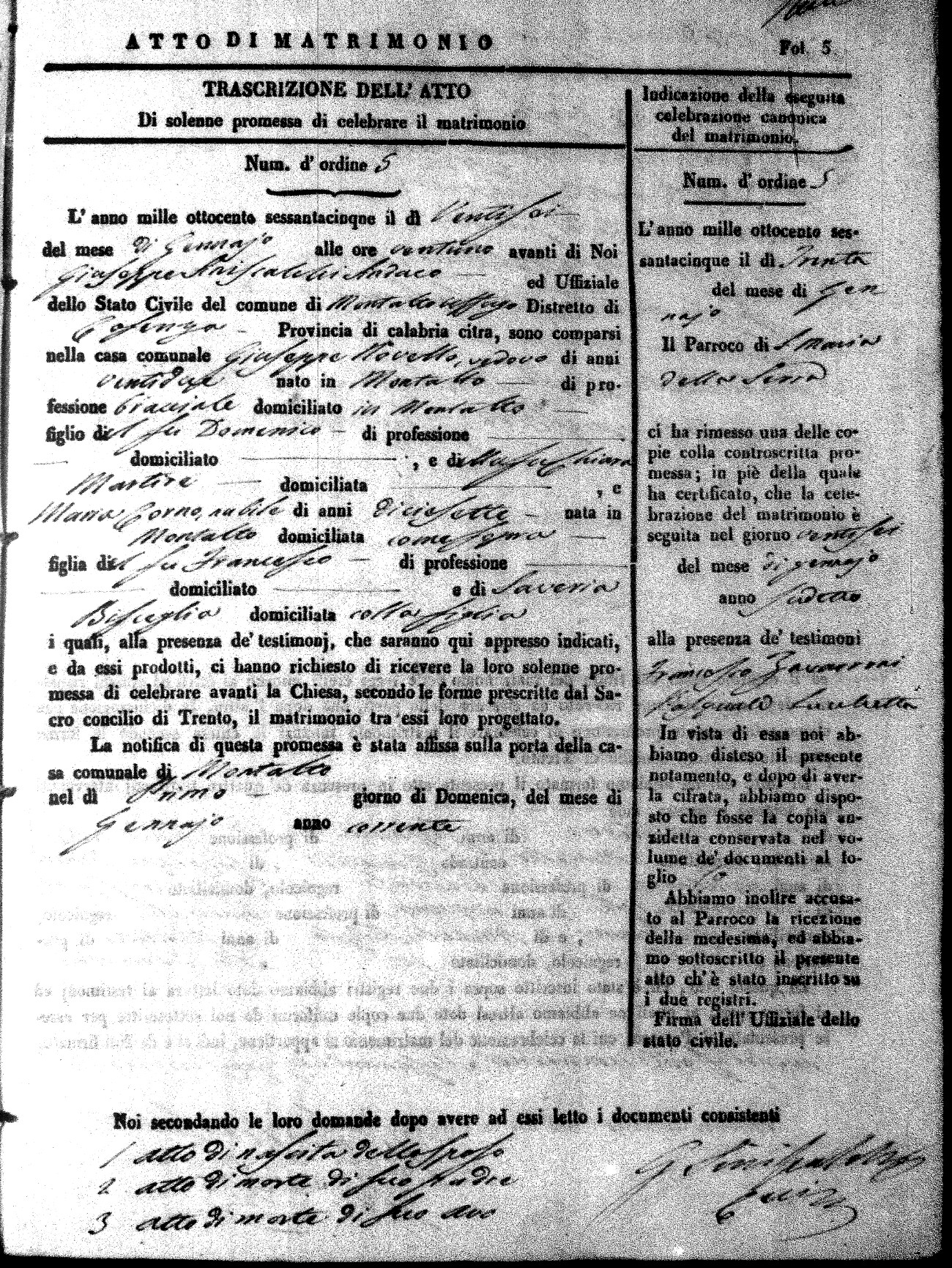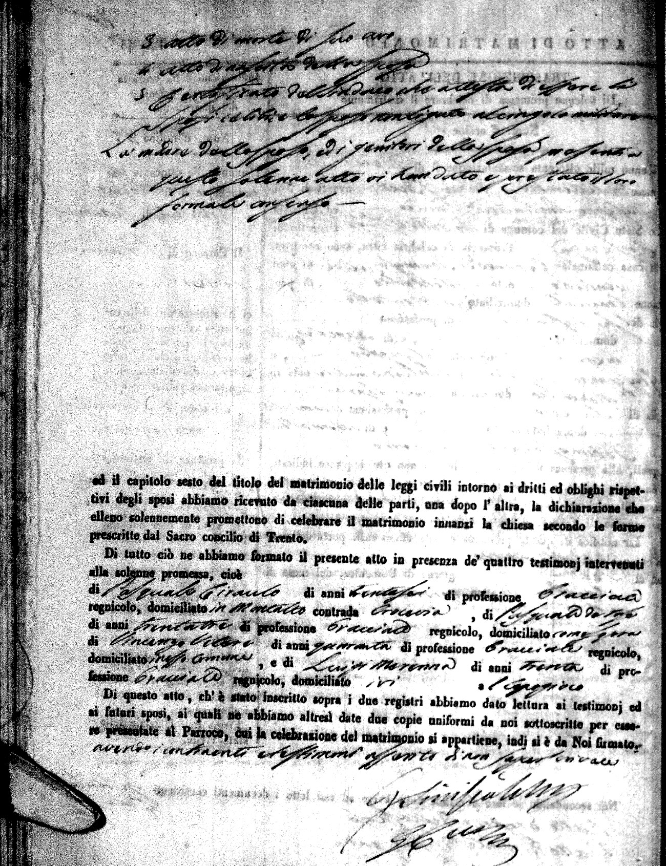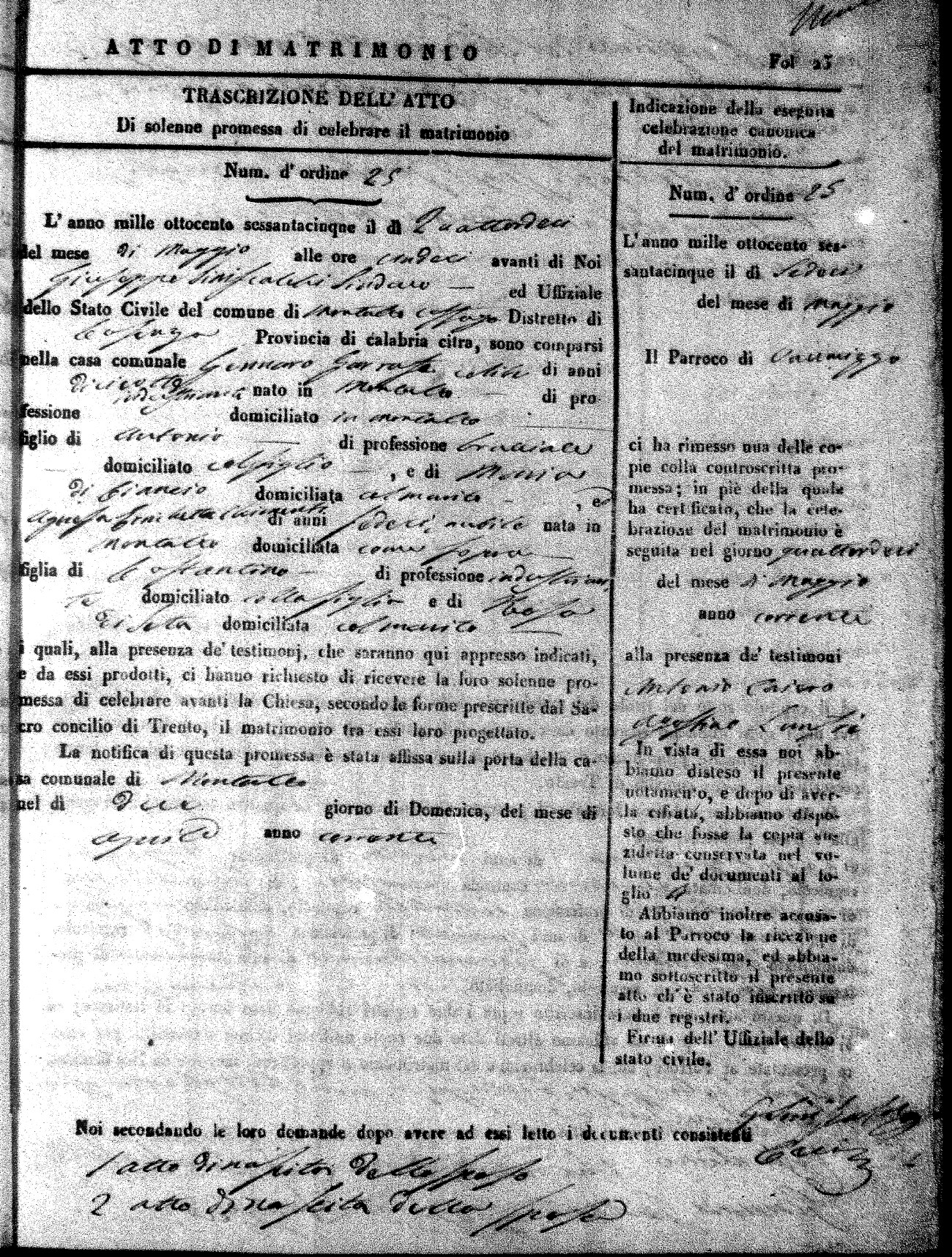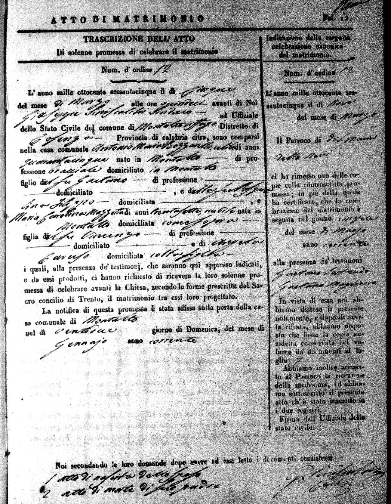 Here are the extractions for all the marriage acts in 1865 for Montalto Uffugo. When you see (fu) next to the parents names, that indicates that they were deceased at the time the marriage took place. For more information, click on the groom's surname to view a copy of the original document.