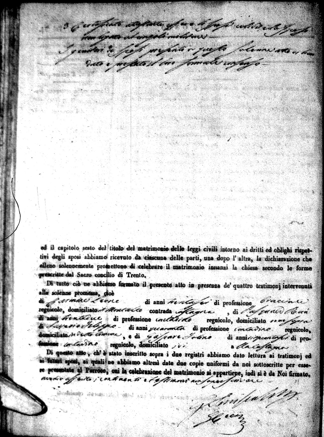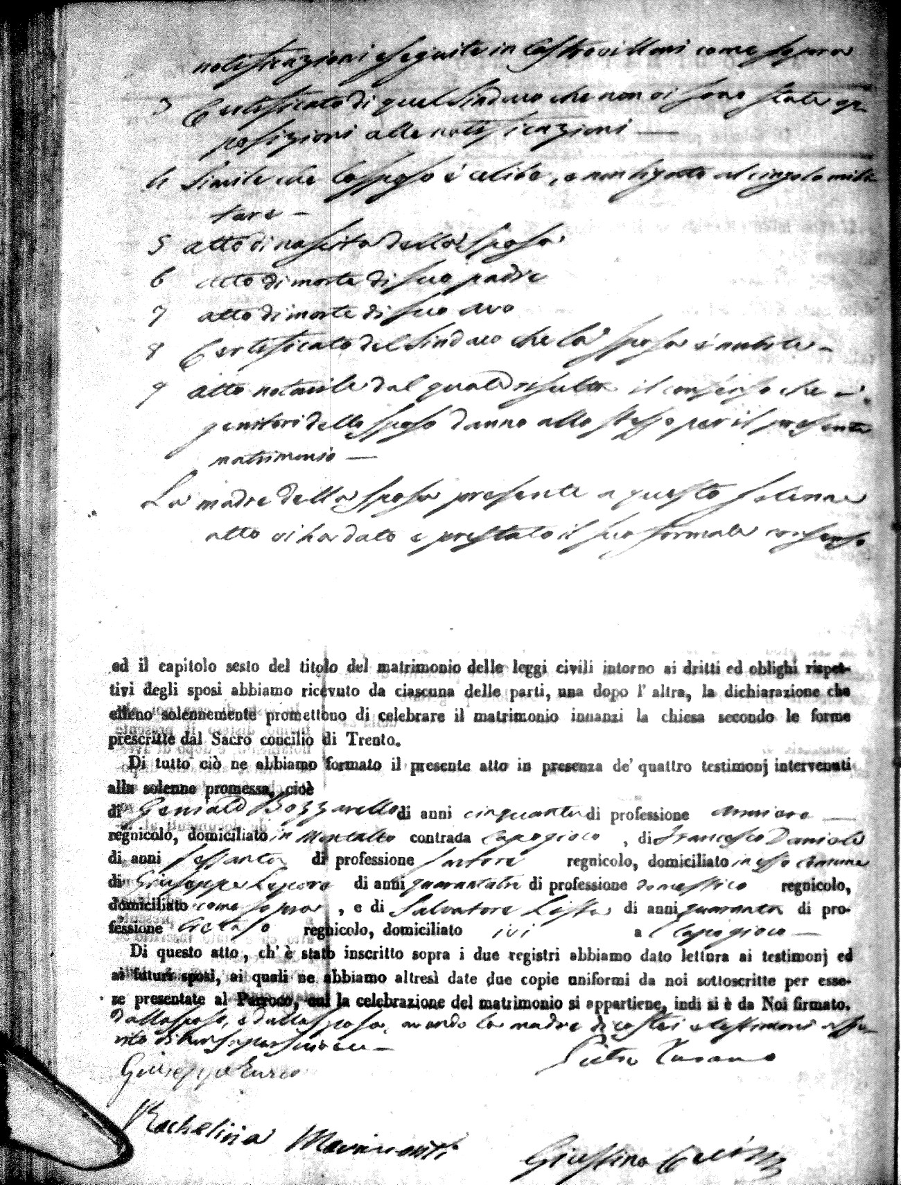 | Leone | Saverio | Gaetano (fu) | Napolitano | Teresa | Sciomarella | Carmela | Francesco | Marchese | Maria |