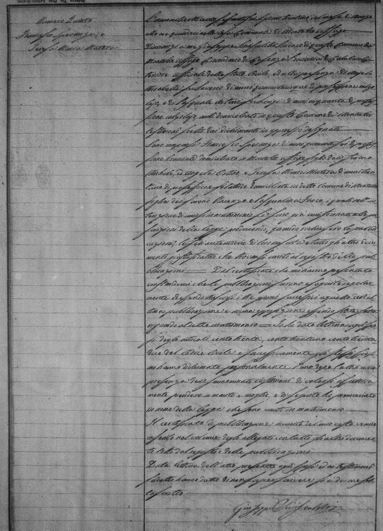 | Mallislio Esposito? | Innocenzo | Unknown | Unknown | Unknown | Ortino | Maria Teresa | Giovanni (fu) | Sannuto | Stella |