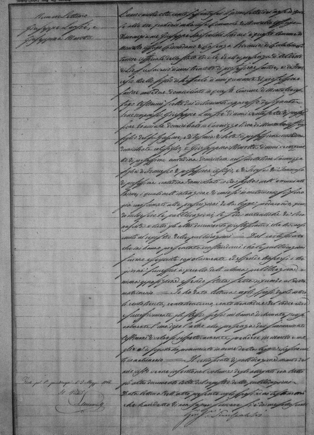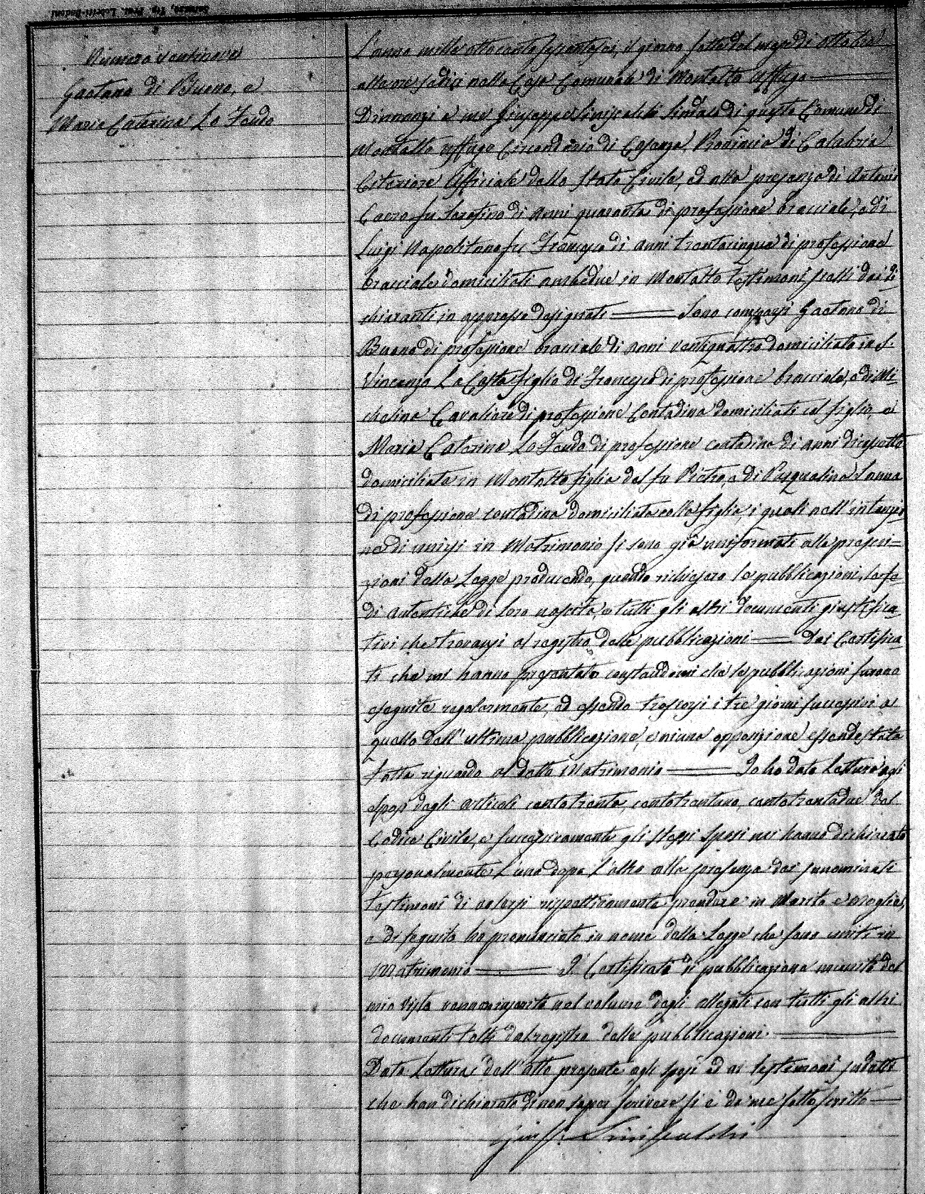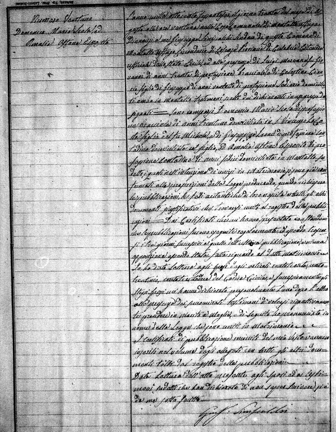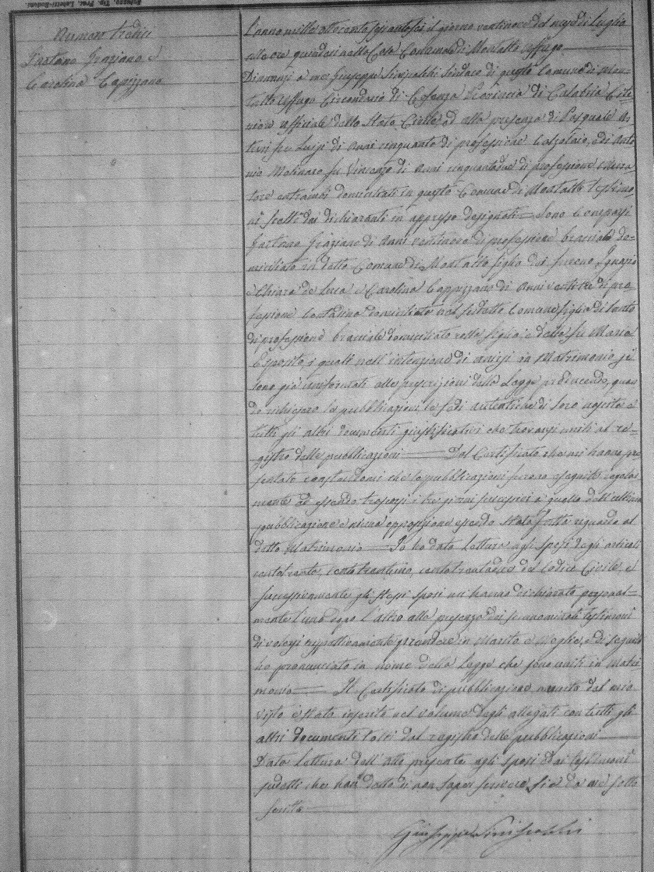 | DiLio | Annunziato | Vincenzo(fu) | Caero? | Rosa | Zingone | Carolina | Francesco (fu) | Bellusci | Caterina |