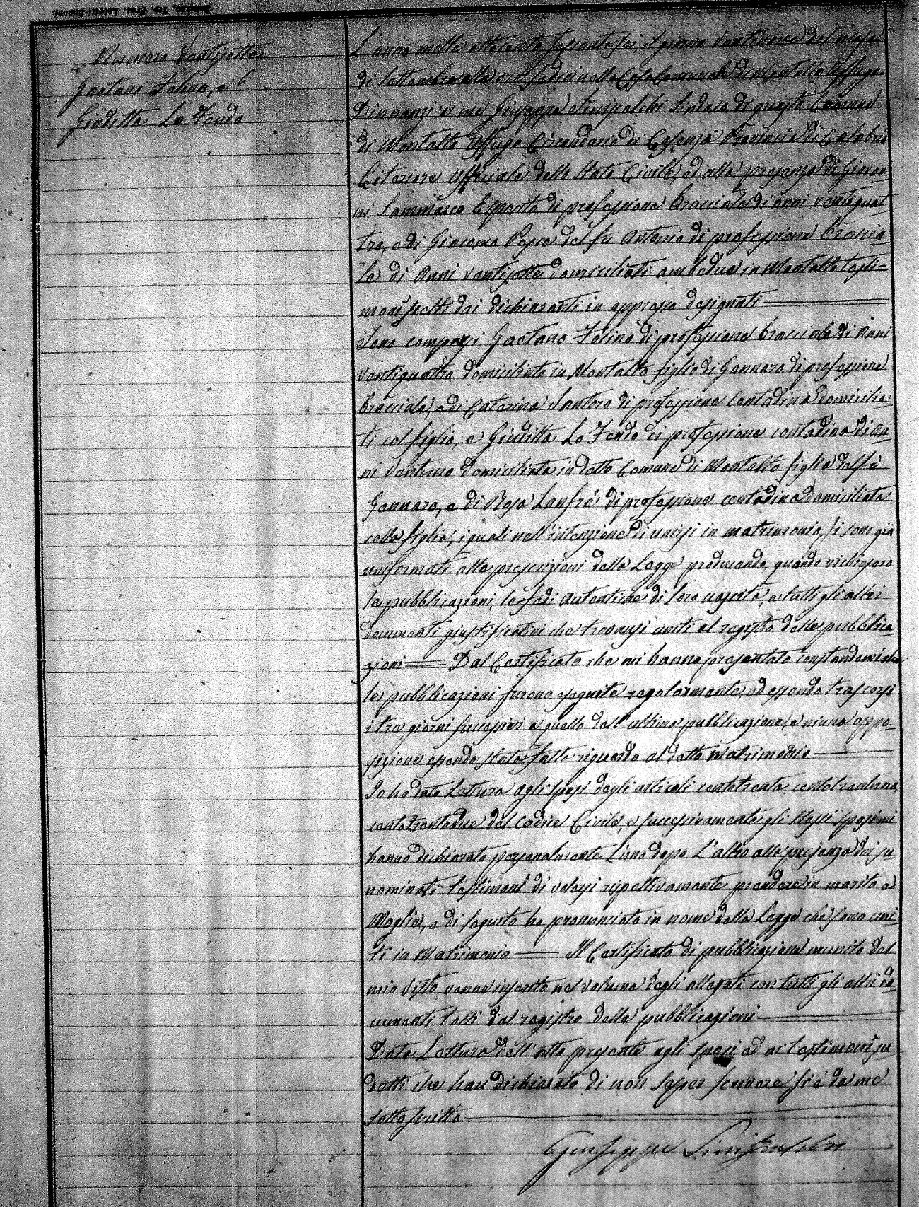 | Iantorno | Michele Arcangelo | Gennaro | Salerno | Palma | Crivaro | Angela | Pasquale (fu) | LiPreti | Maria |
