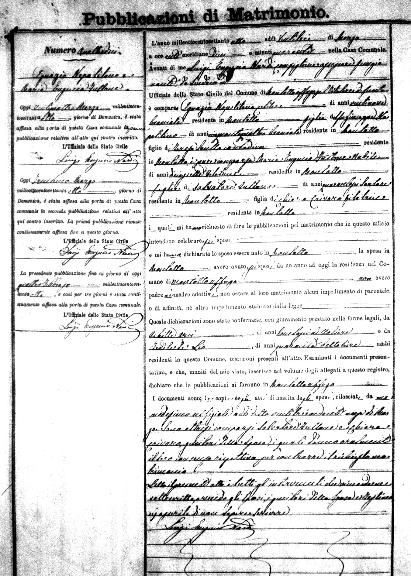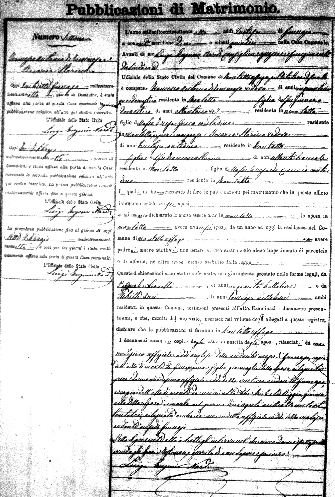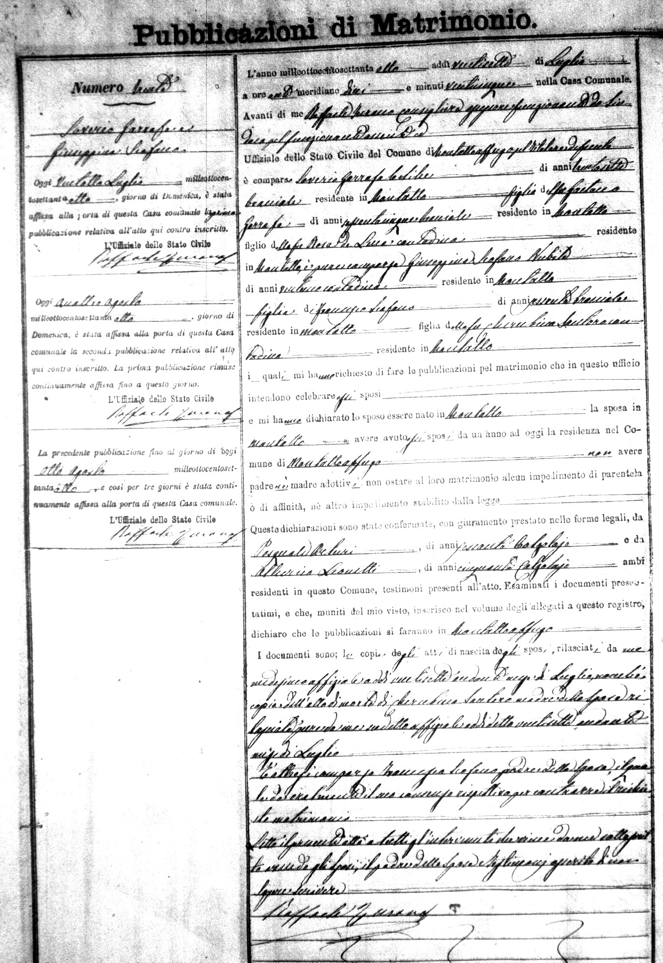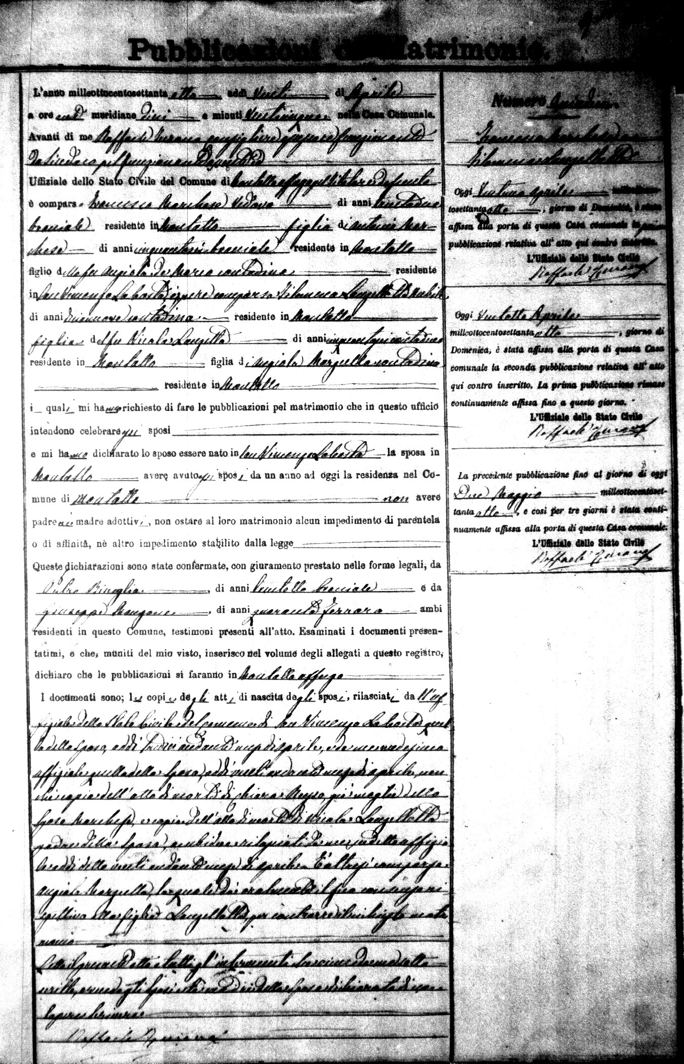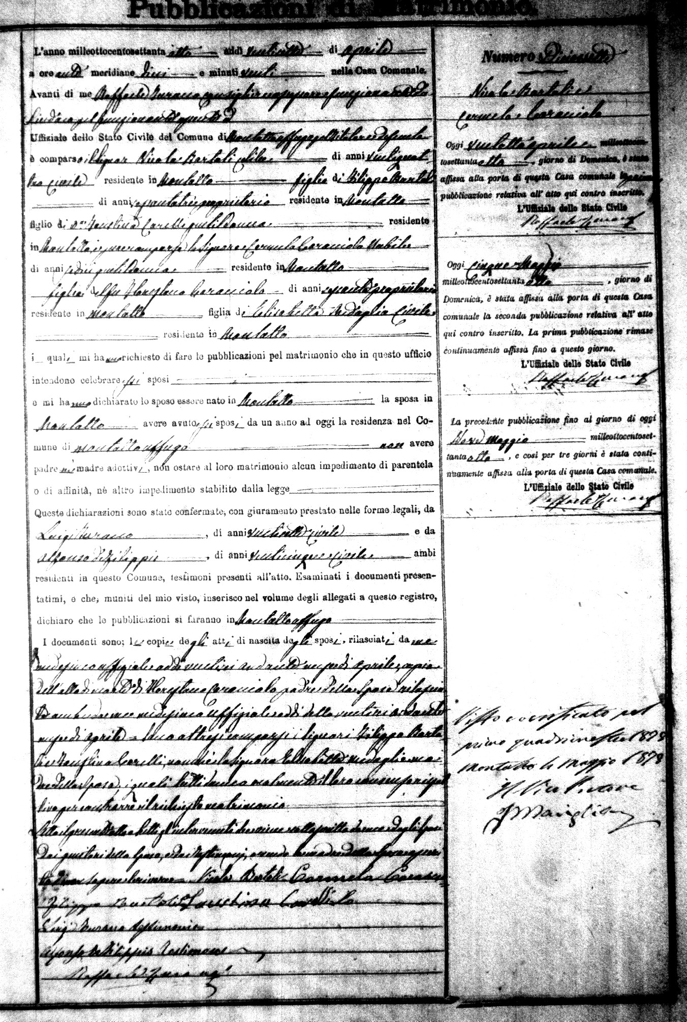 Here are the extractions for the marriage banns in 1878 for Montalto Uffugo. Each extraction has a link to a copy