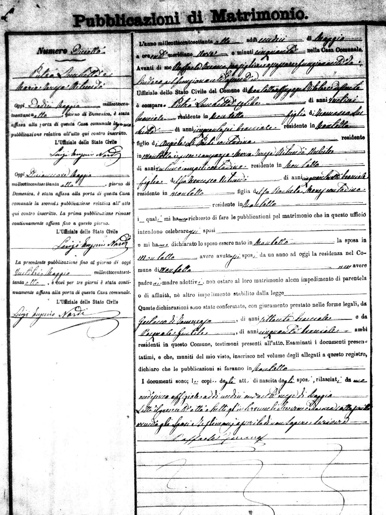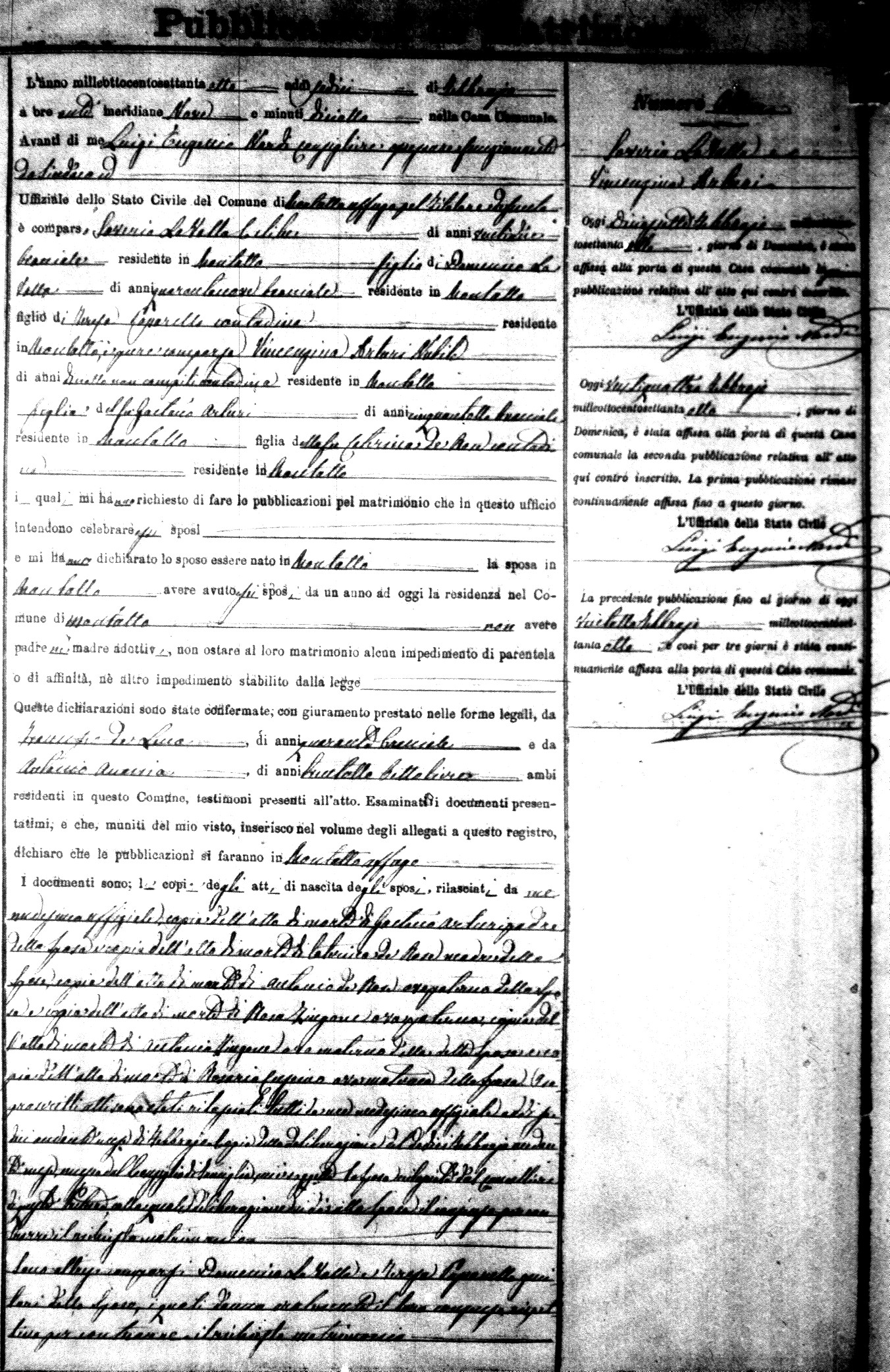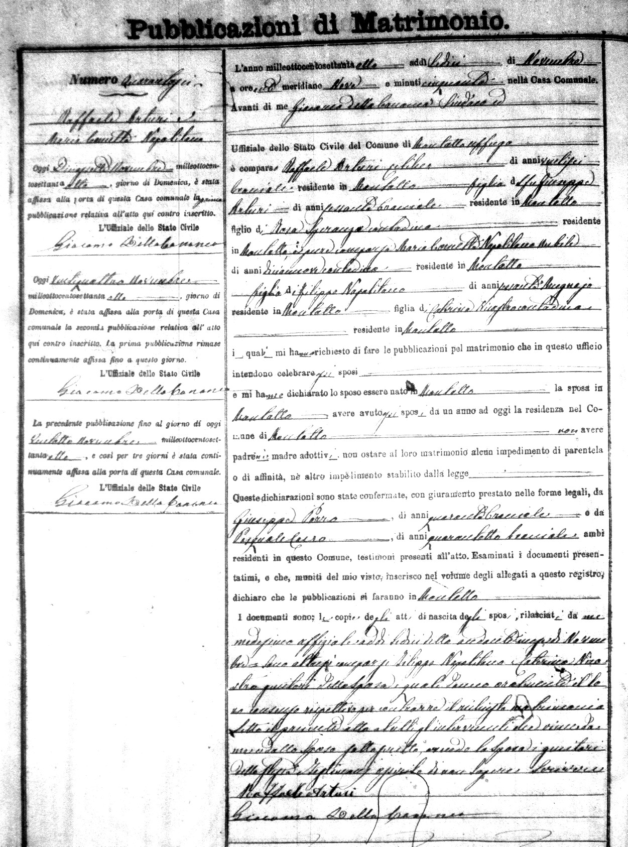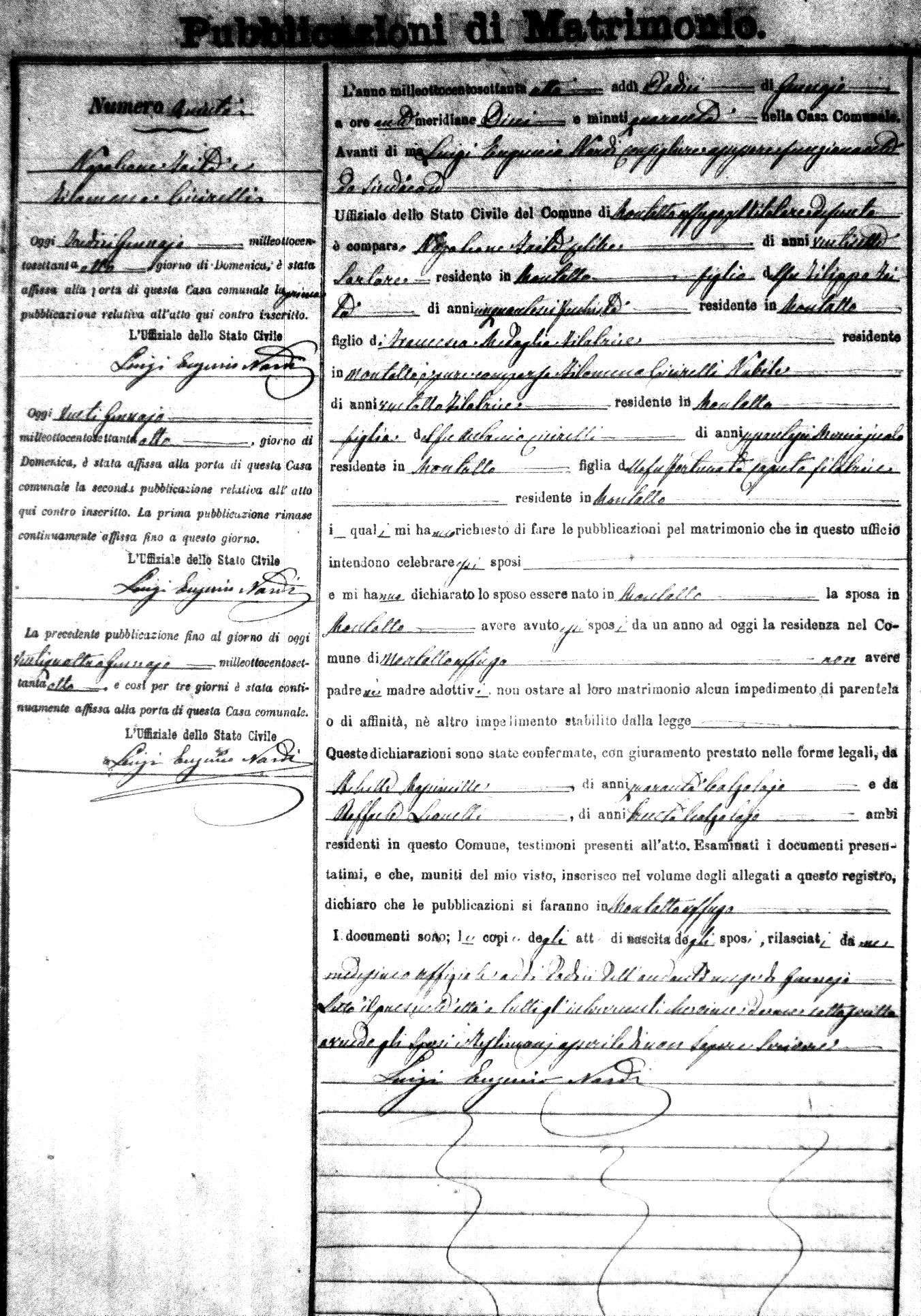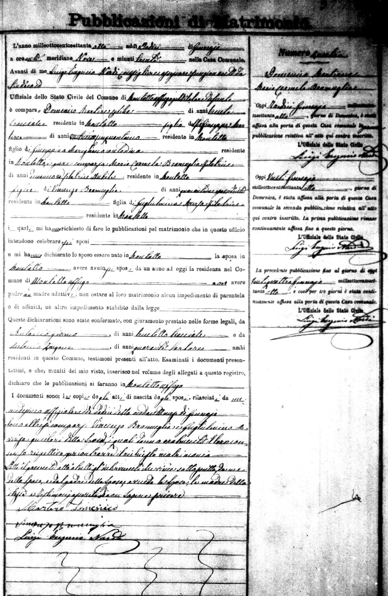 Here are the extractions for the marriage banns in 1878 for Montalto Uffugo. Each extraction has a link to a copy