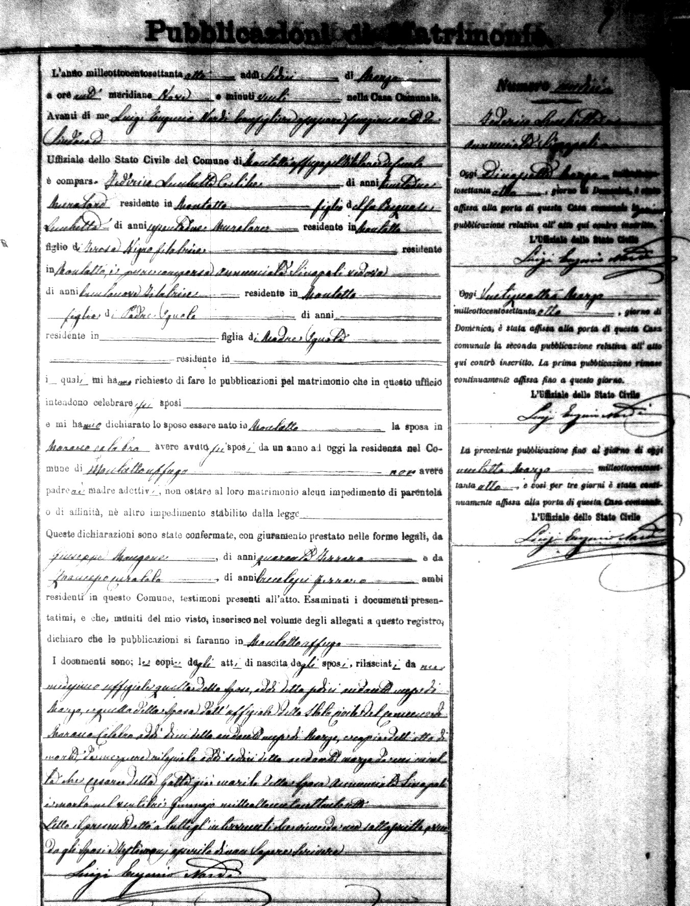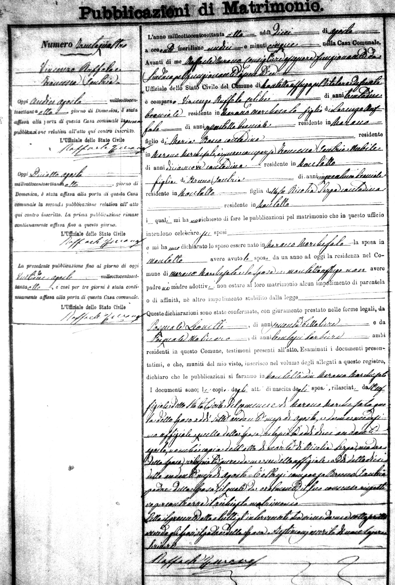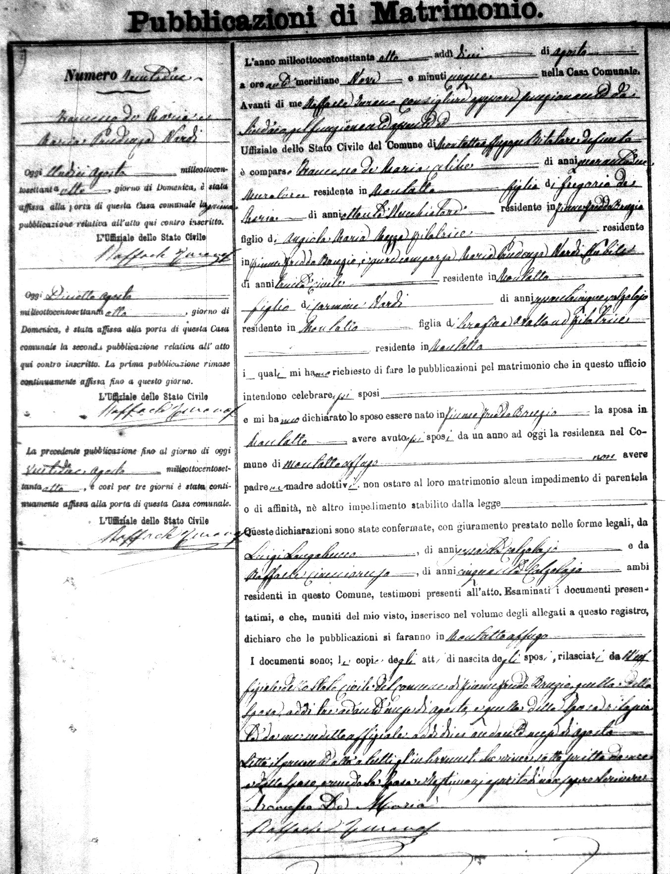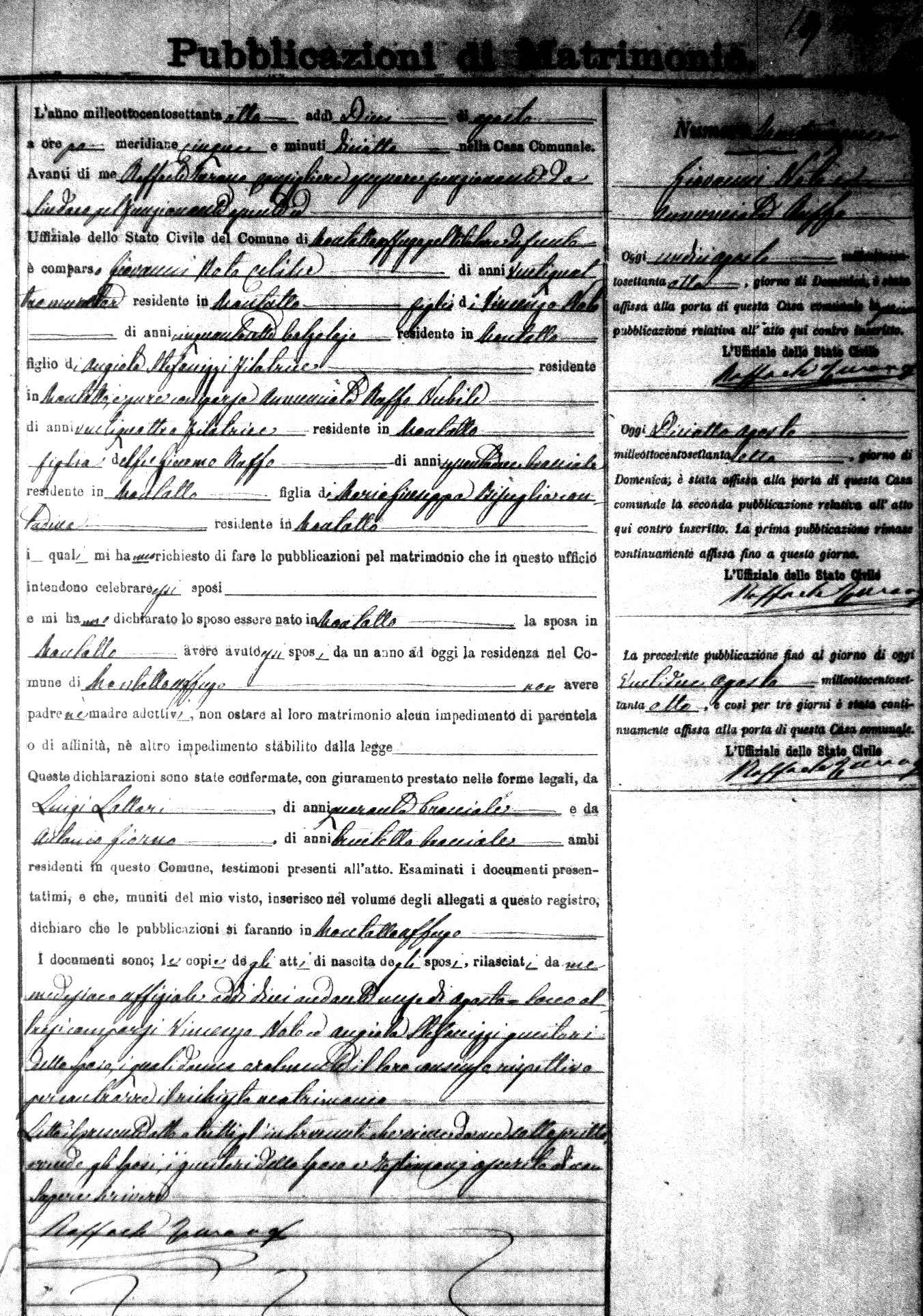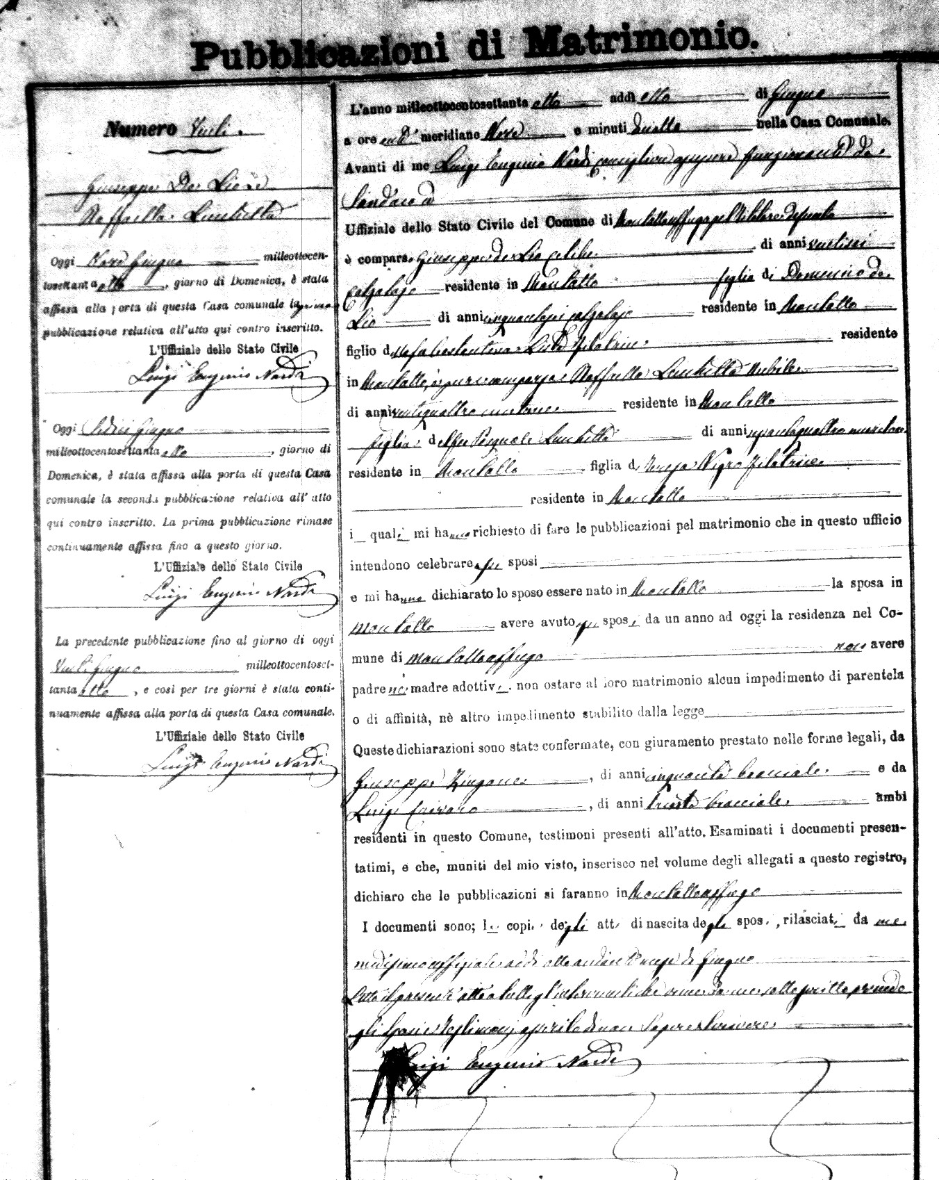 Here are the extractions for the marriage banns in 1878 for Montalto Uffugo. Each extraction has a link to a copy