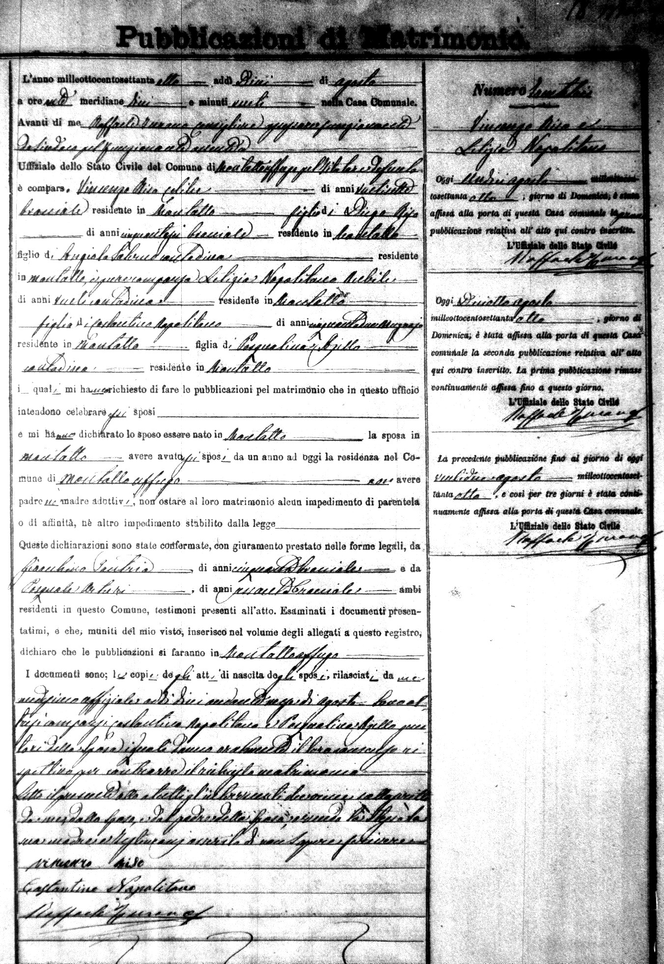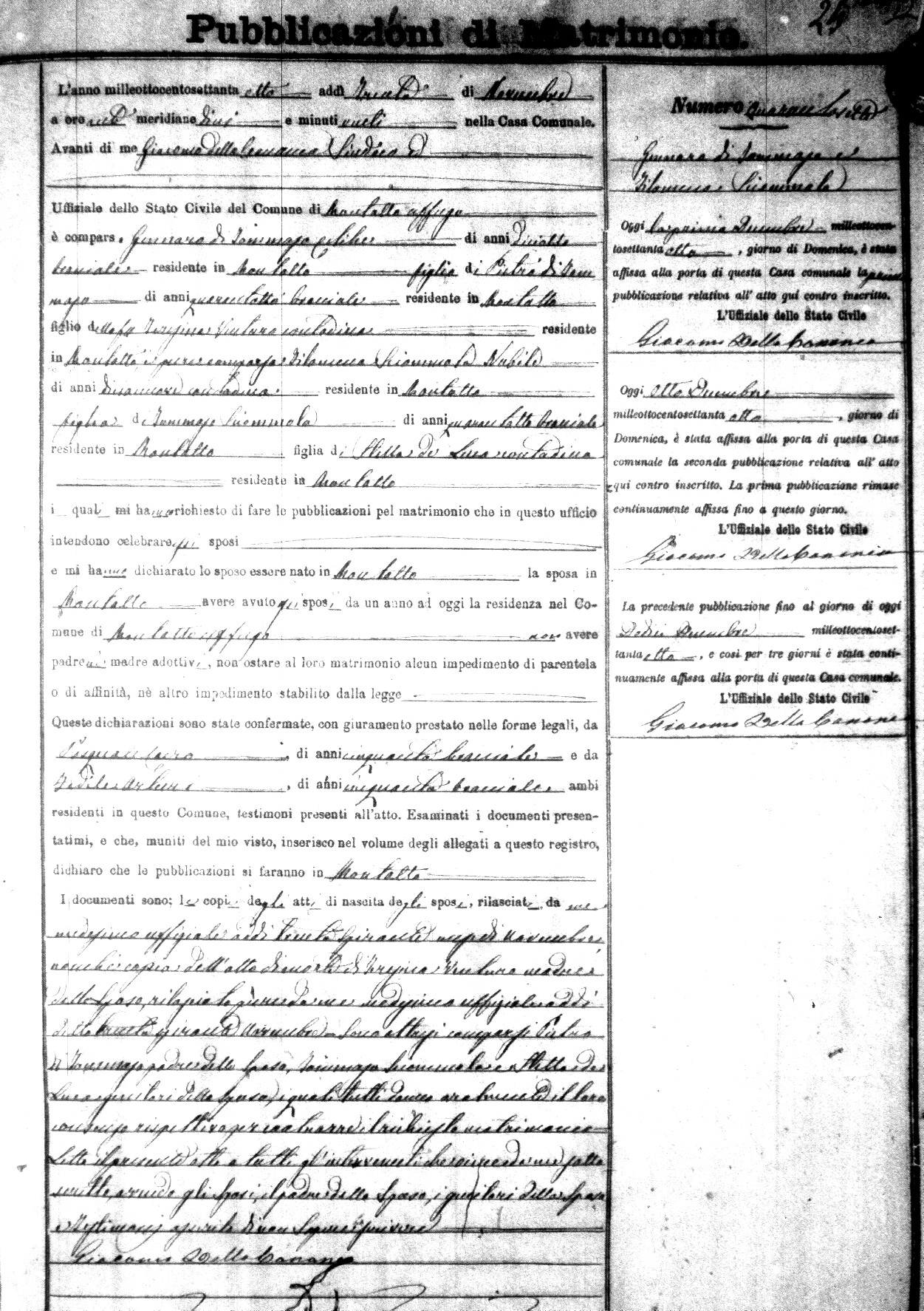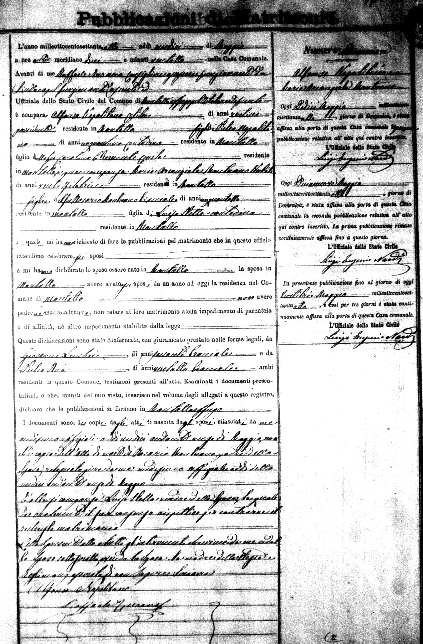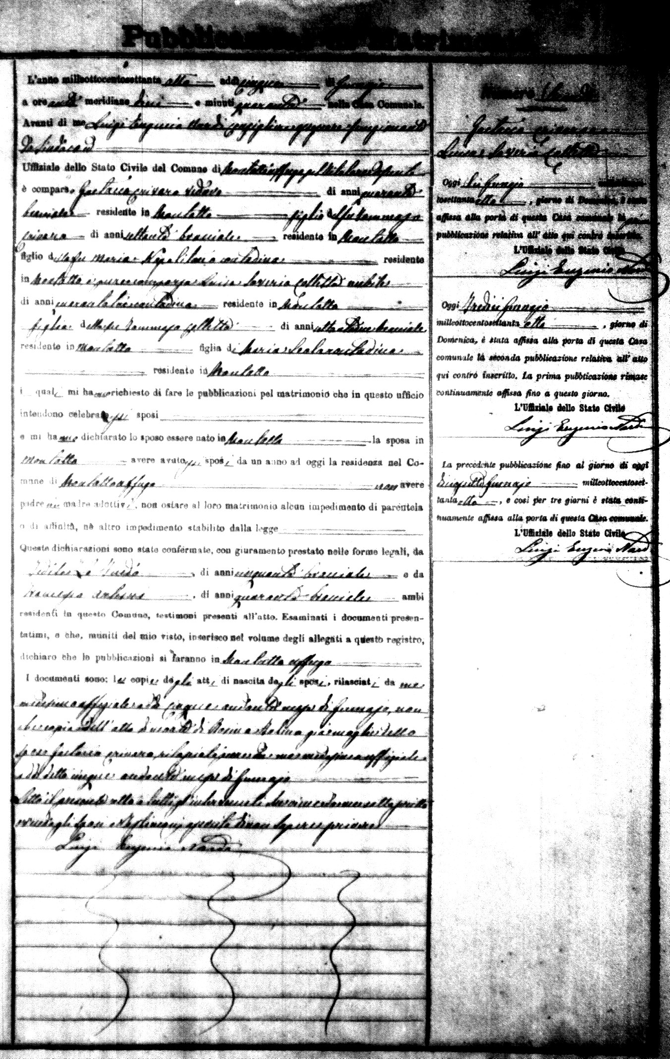 Here are the extractions for the marriage banns in 1878 for Montalto Uffugo. Each extraction has a link to a copy