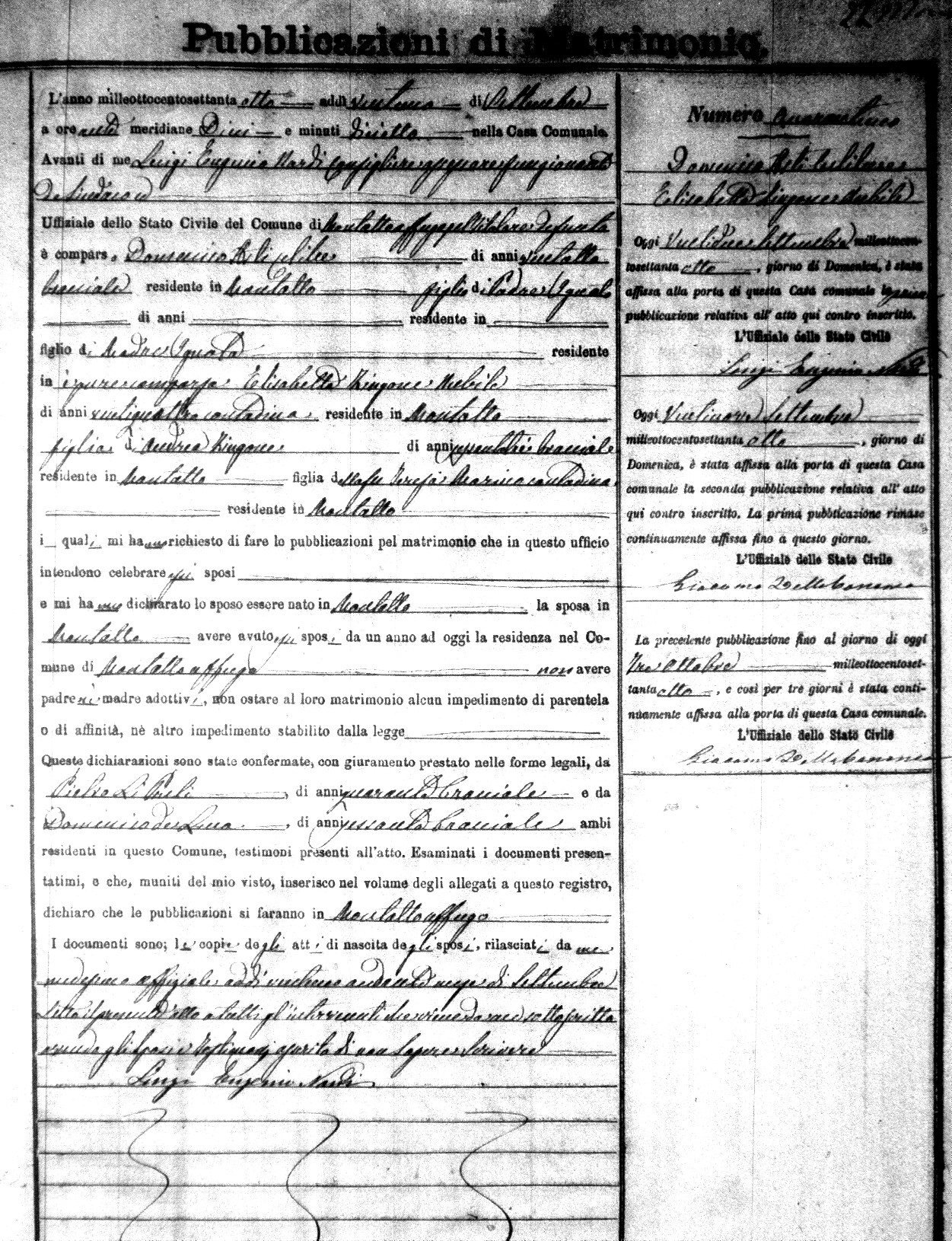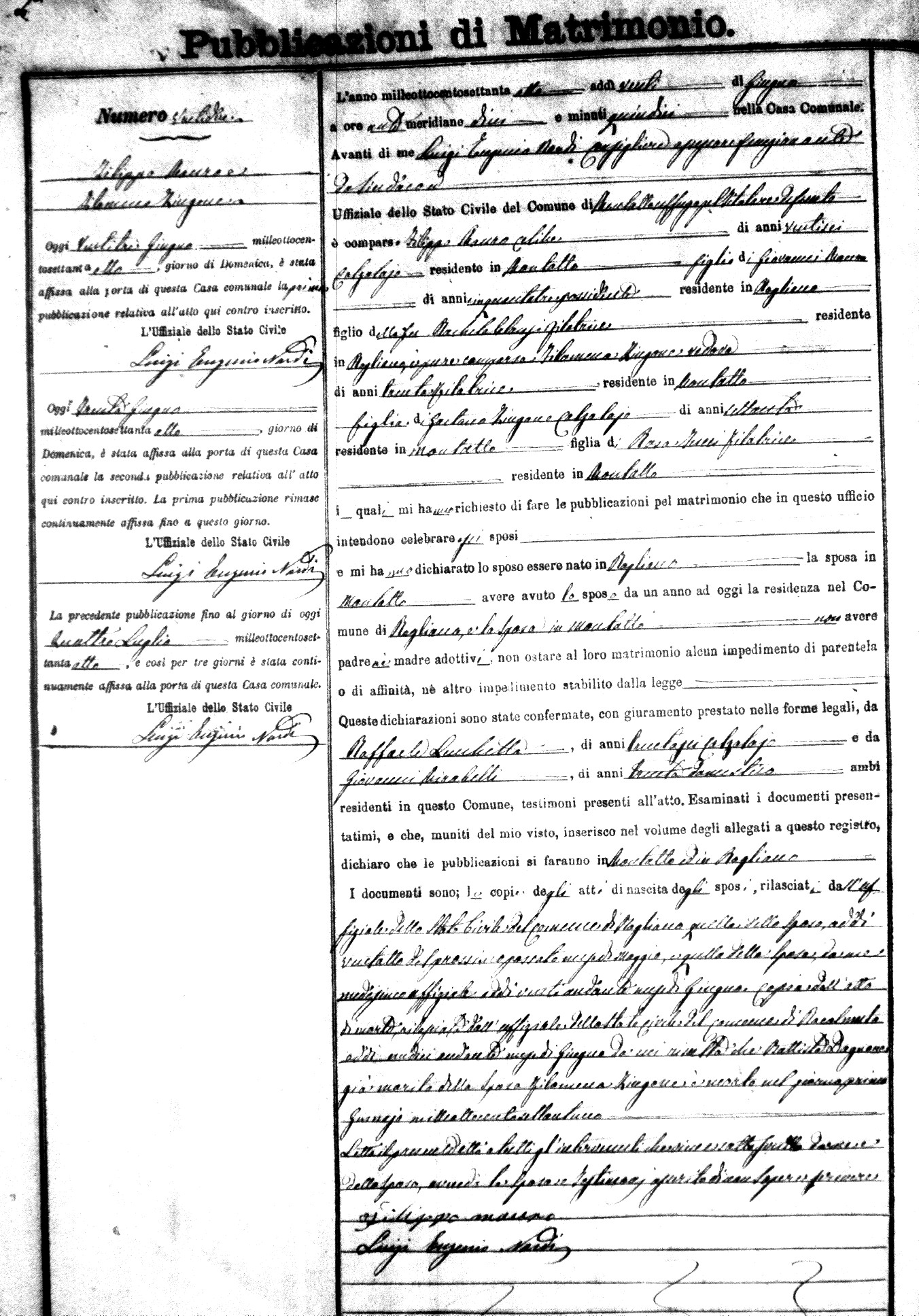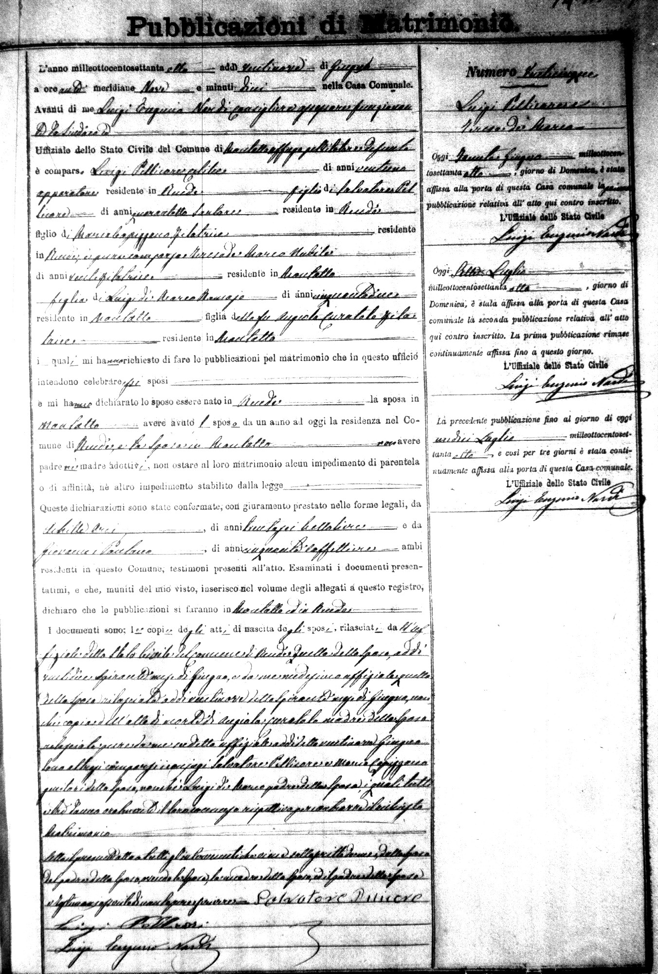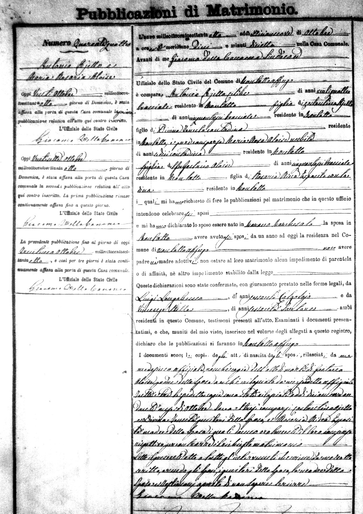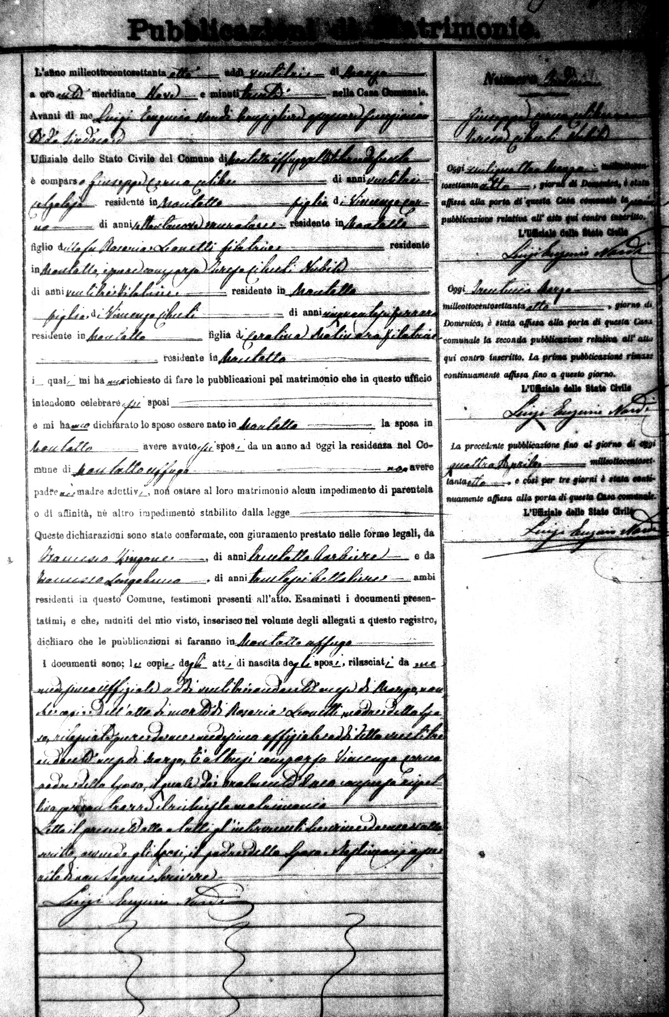 Here are the extractions for the marriage banns in 1878 for Montalto Uffugo. Each extraction has a link to a copy