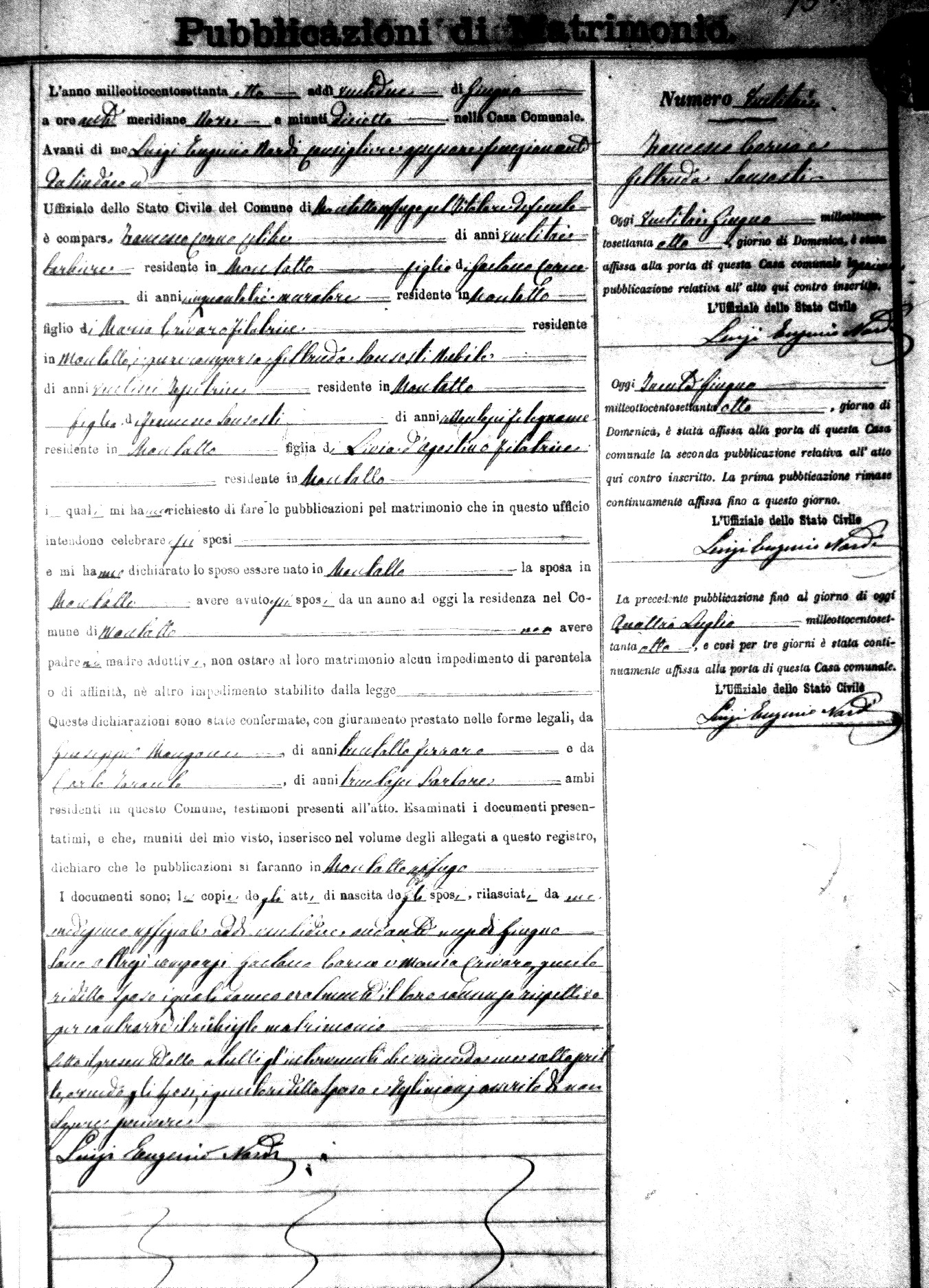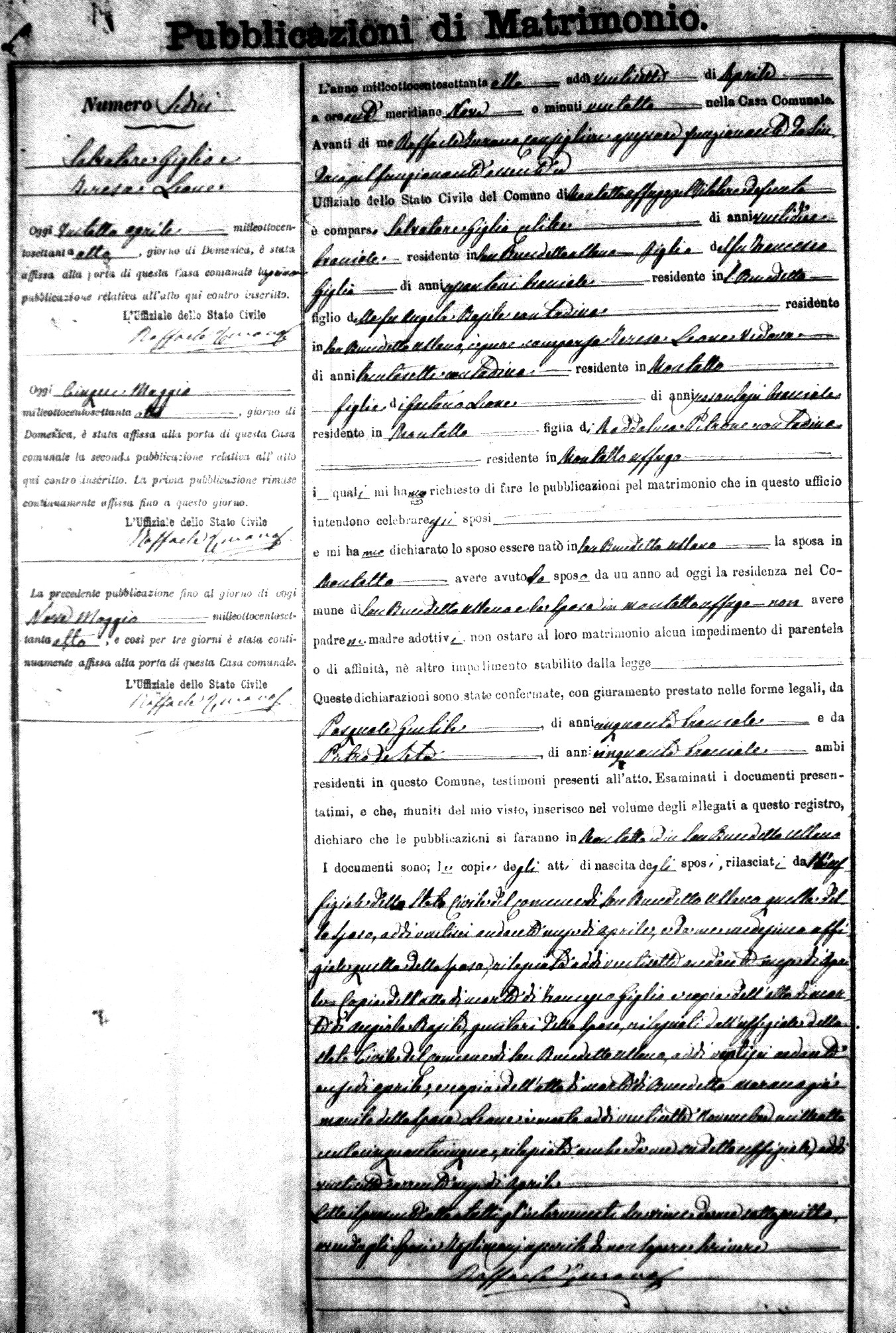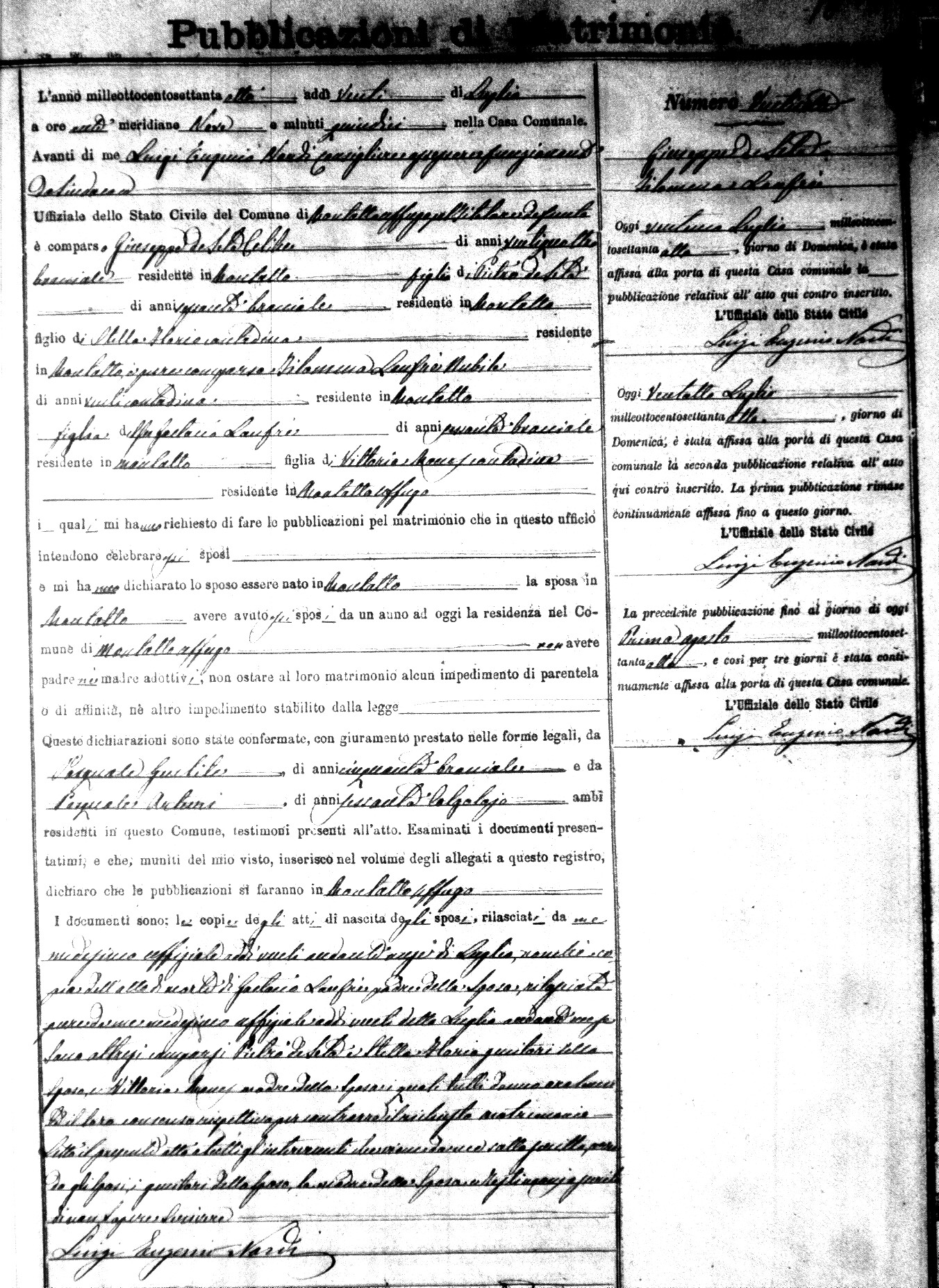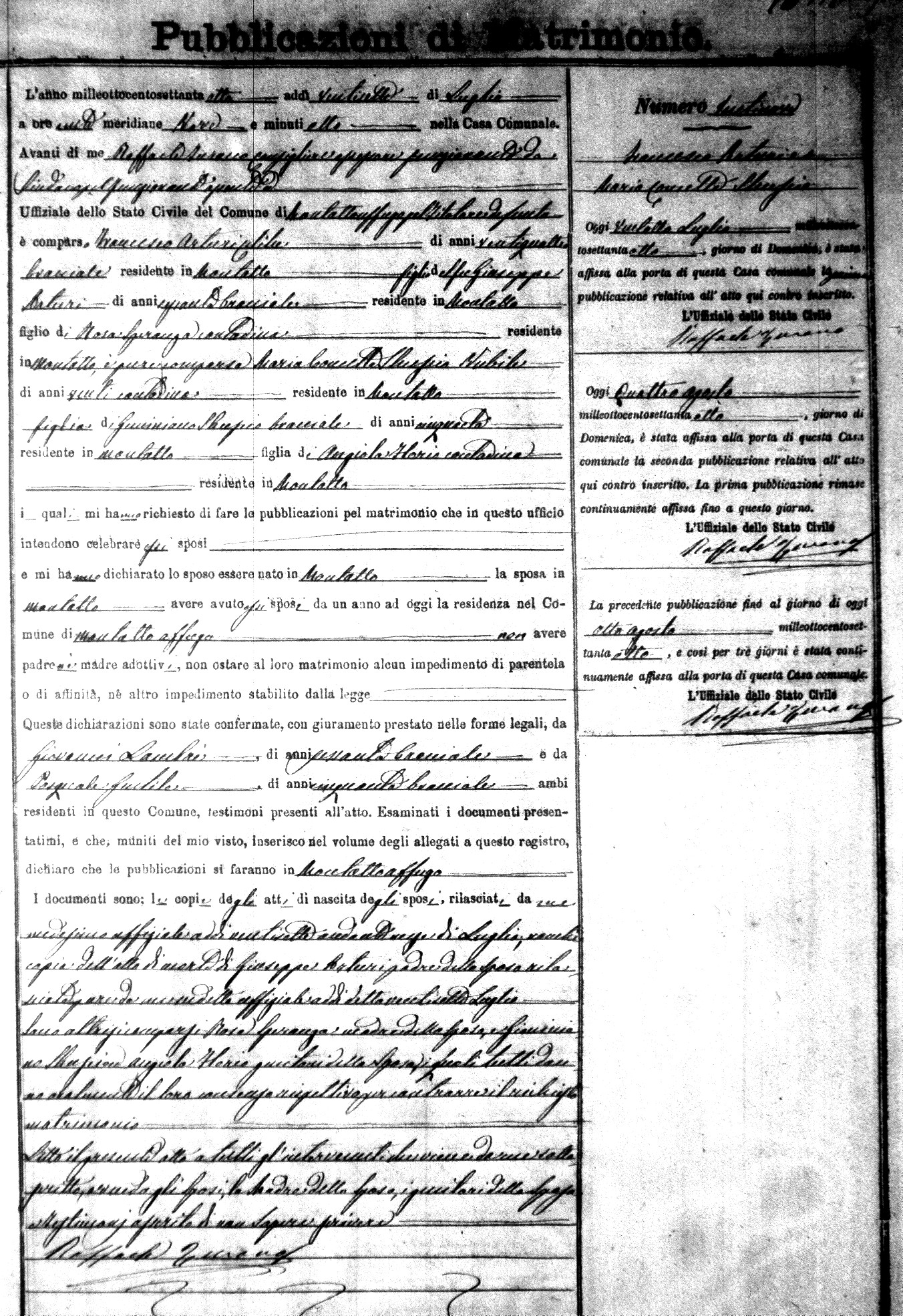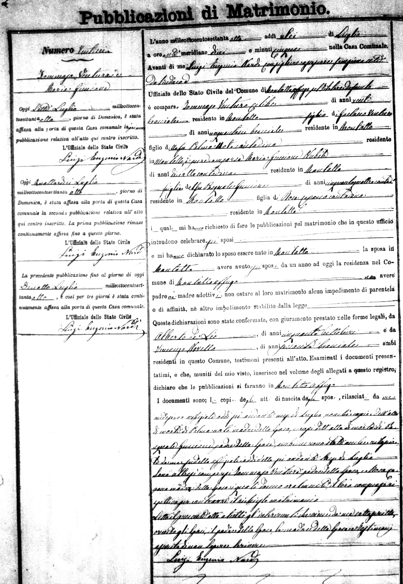 Here are the extractions for the marriage banns in 1878 for Montalto Uffugo. Each extraction has a link to a copy
