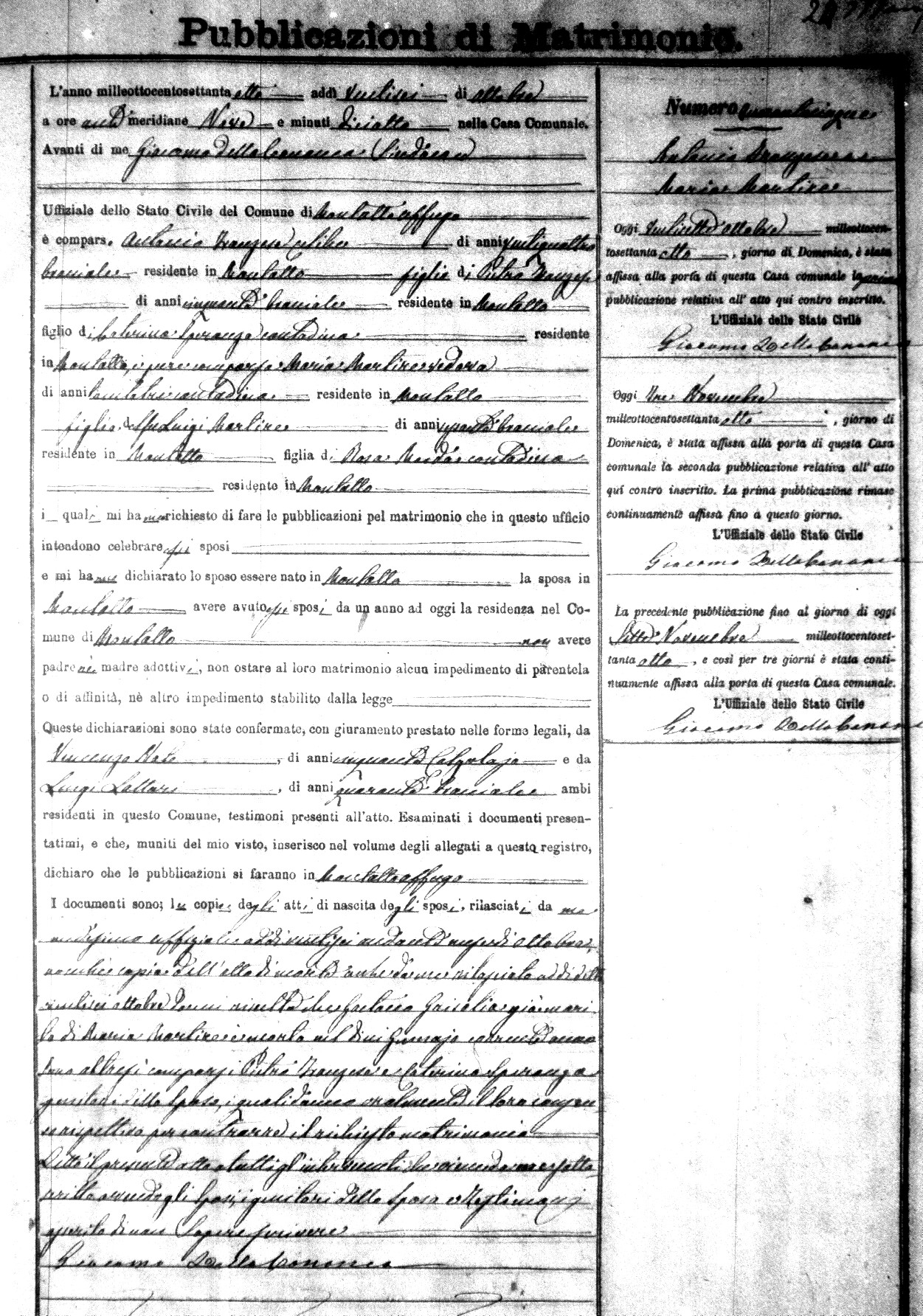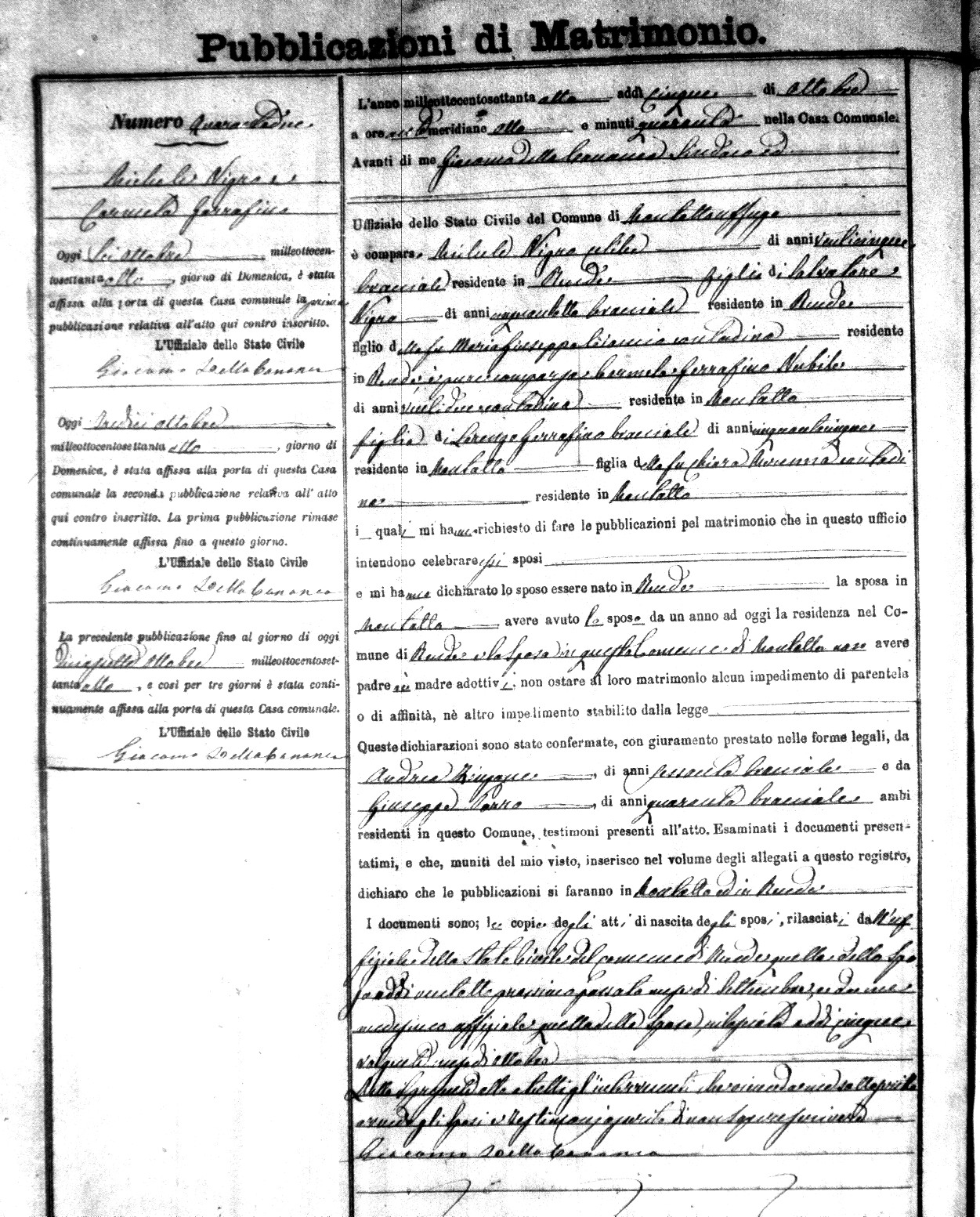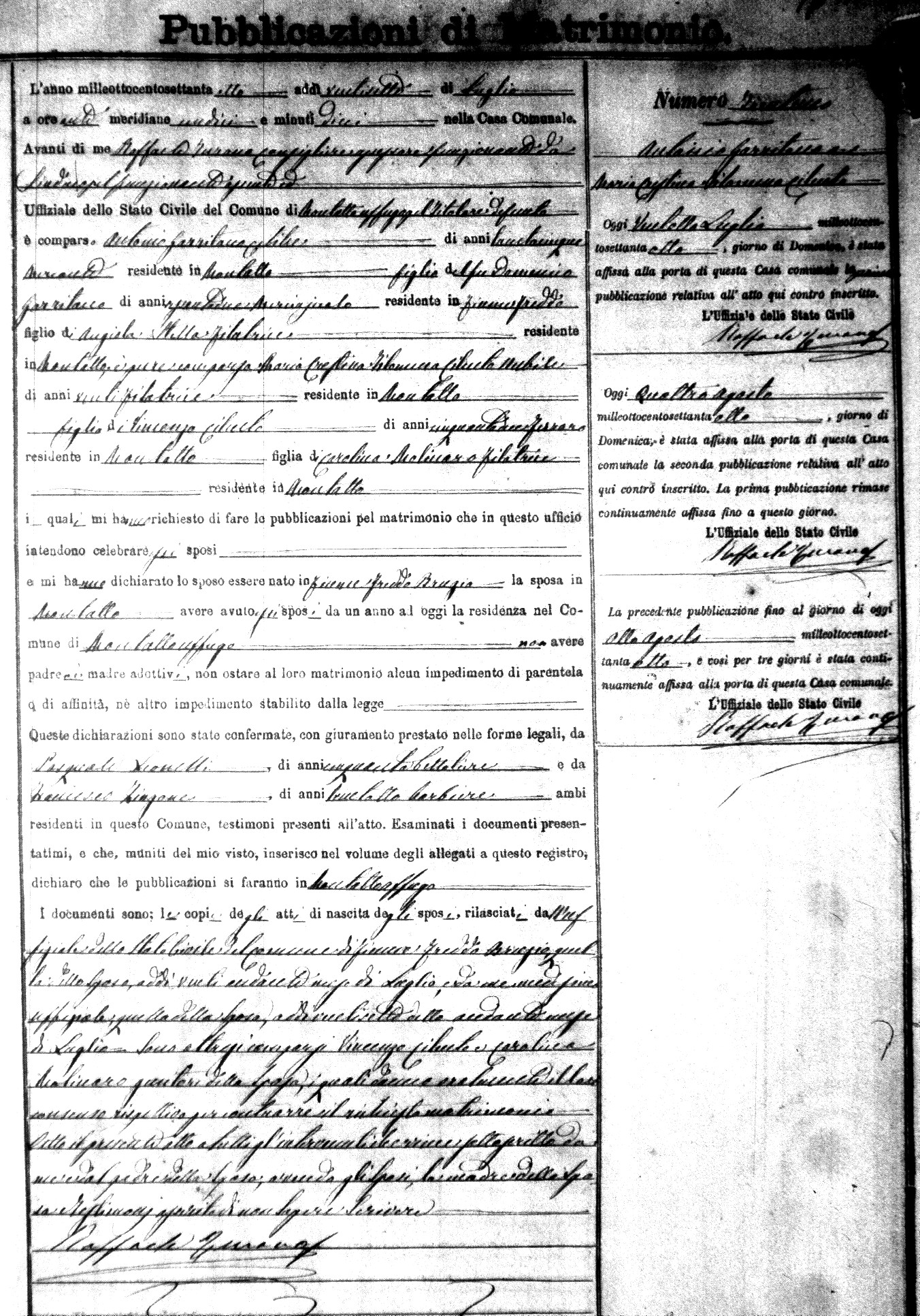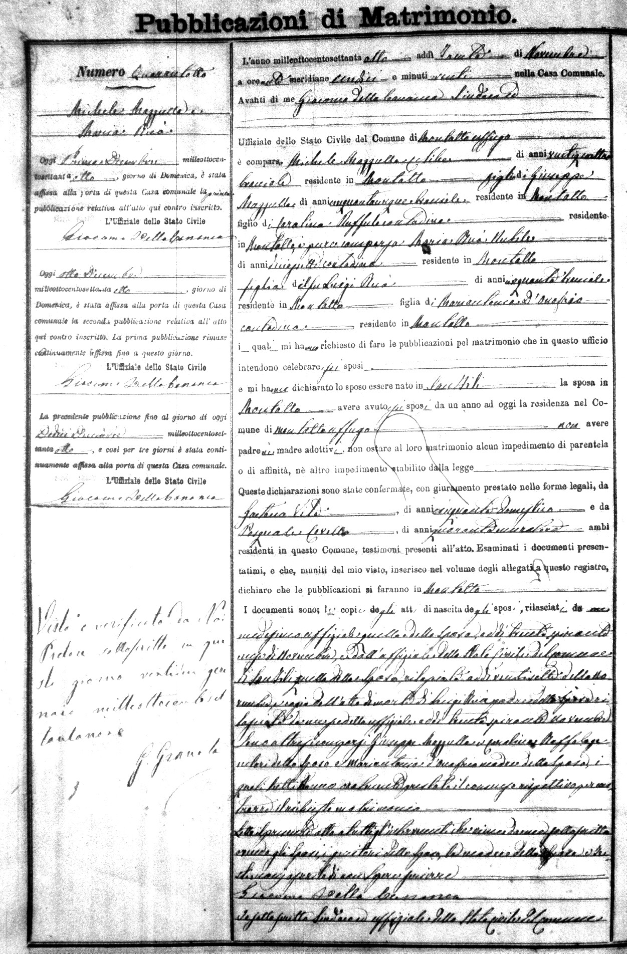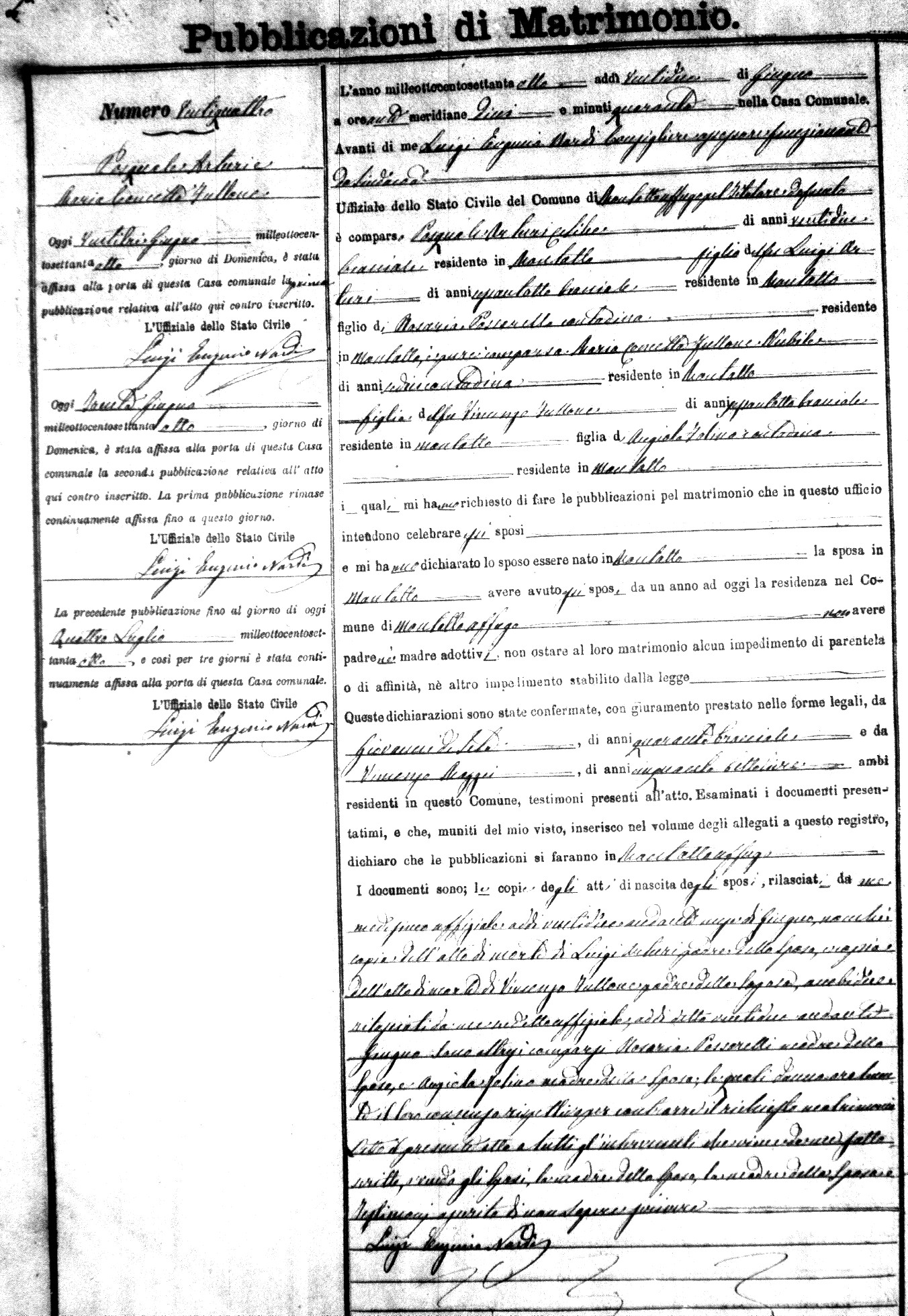 Here are the extractions for the marriage banns in 1878 for Montalto Uffugo. Each extraction has a link to a copy