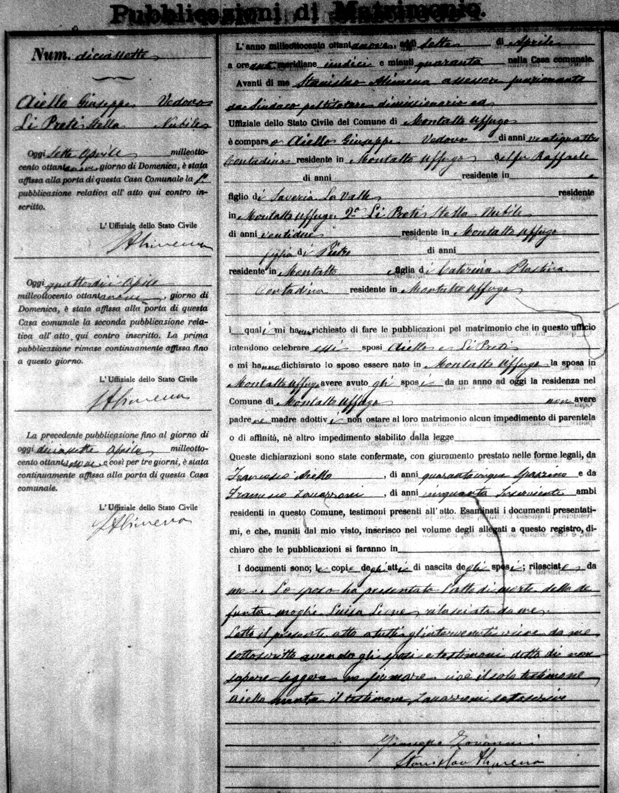 | 3 Nov | Muglia | Vigilante | Vincenzo (fu) | LoValle | Maria (fu) | Bruno | Rosina | Pietro | Fiorino | Angela |