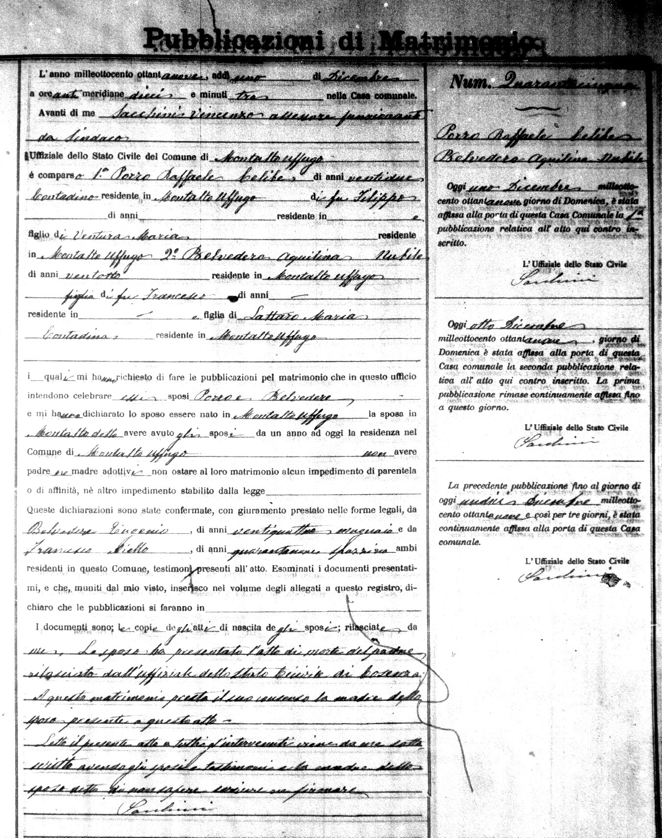 | 1 Dec | Porro | Raffaele | Filippo (fu) | Ventura | Maria | Belvedere | Aguilina | Francesco (fu) | Lattaro | Maria |
