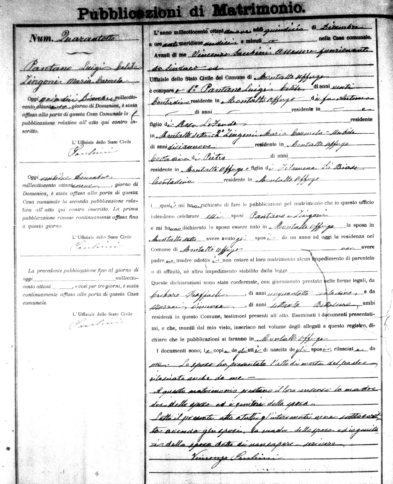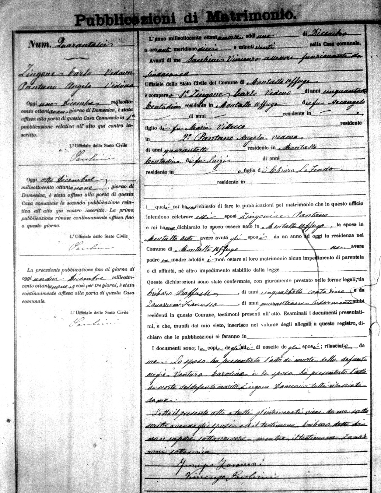 | 1 Dec | Zingone | Carlo | Arcangelo (fu) | Villecco | Maria (fu) | Pantano | Angela | Luigi (fu) | LoFeudo | Chiara |