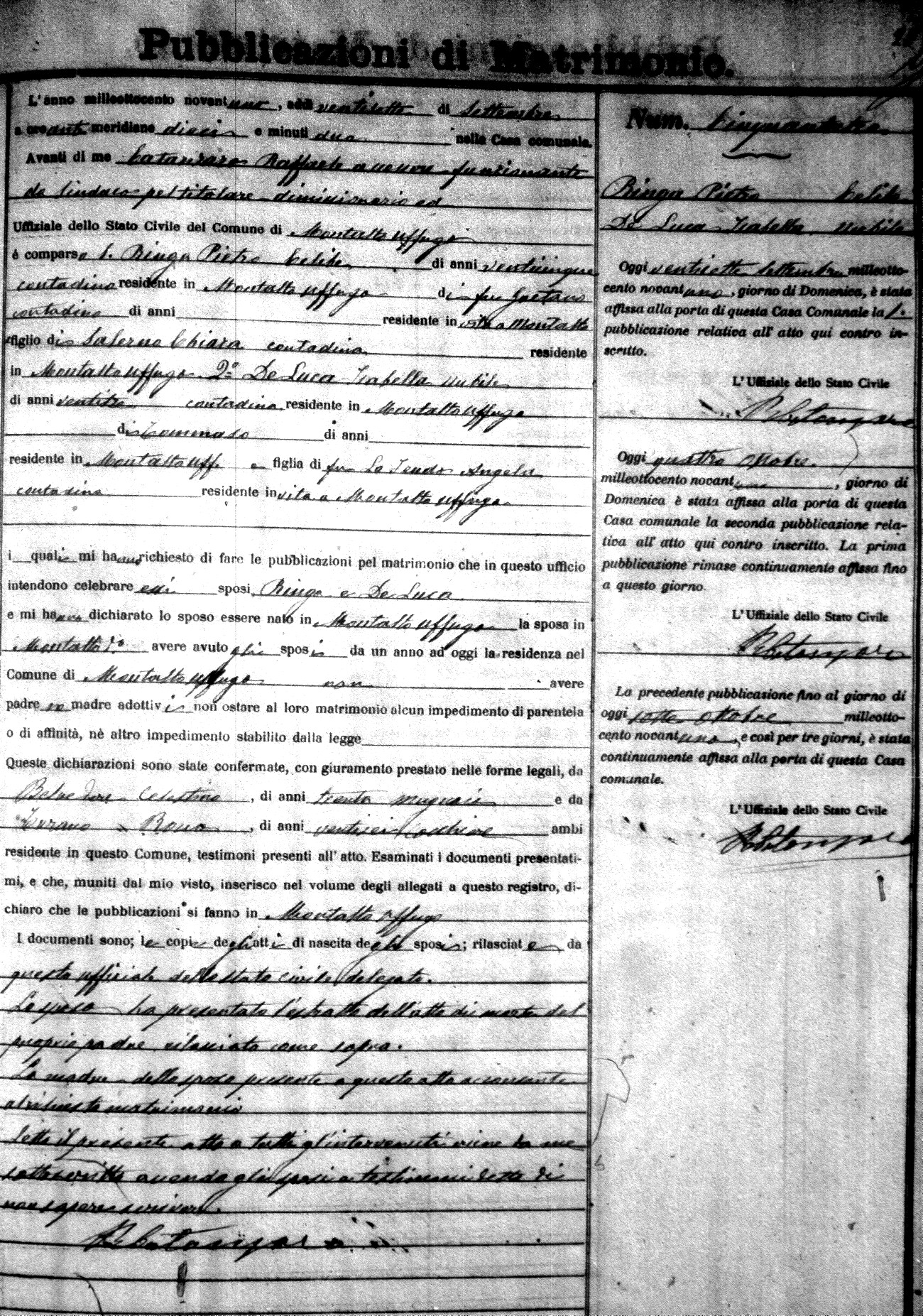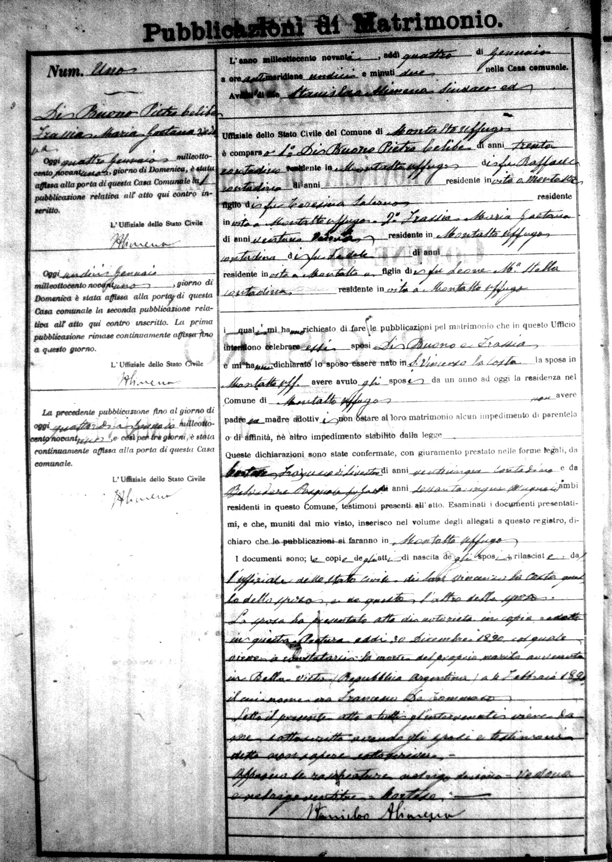 | 4 Jan | DiBuono | Pietro | Raffaele (fu) | Salerno | Teresina (fu) | Frassia | Maria Gaetana | Fedele (fu) | Leone | Maria Stella (fu) |