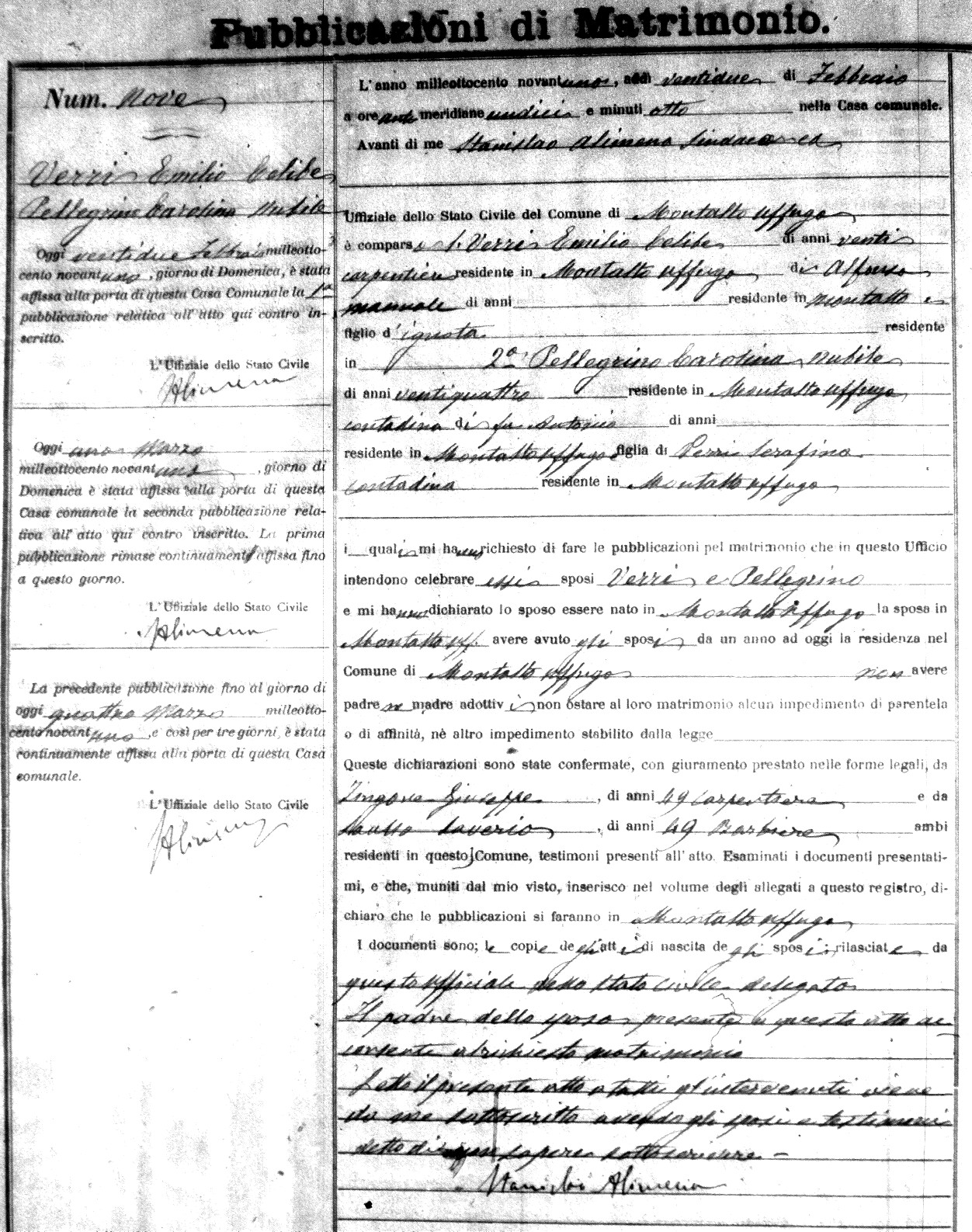 | 22 Feb | Verri | Emilio | Alfonso | Unknown | Unknown | Pellegrino | Carolina | Antonio (fu) | Perri | Serafina |