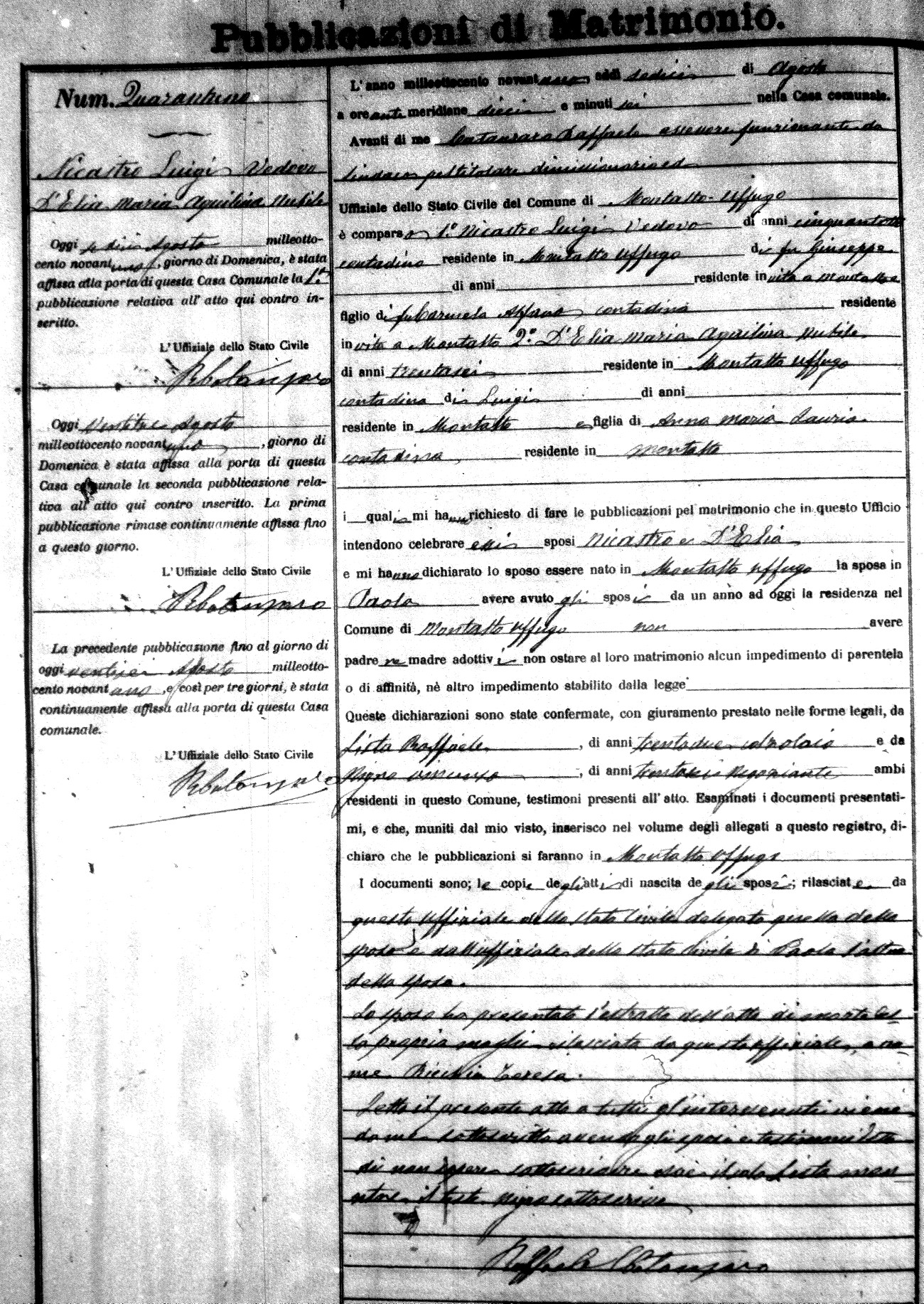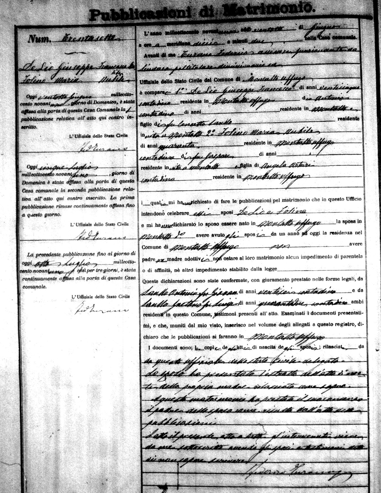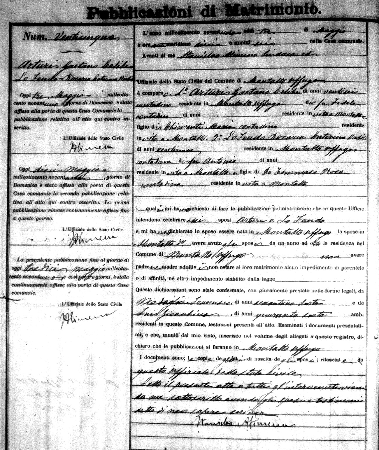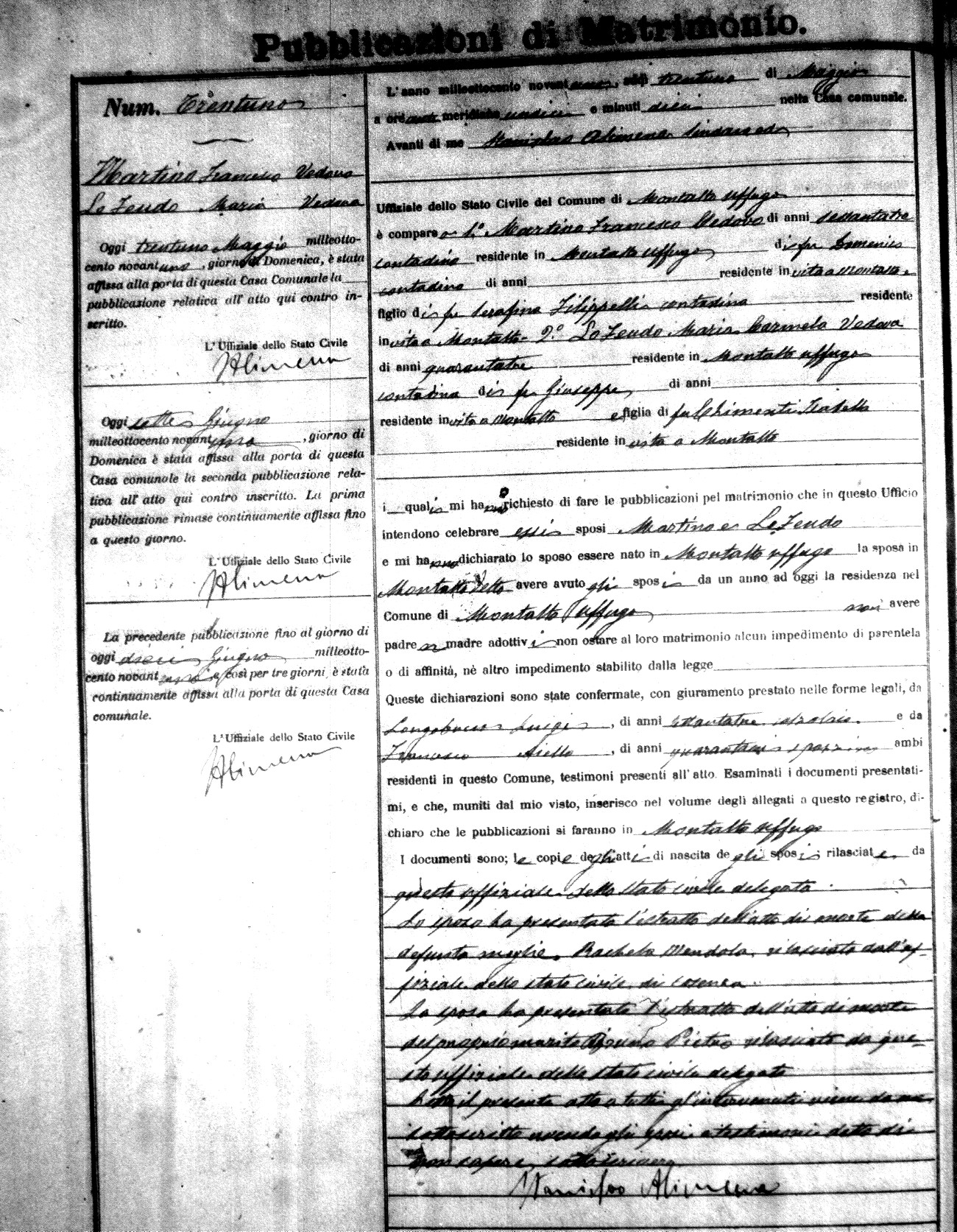 | 31 May | Martino | Francesco | Domenico (fu) | Filippelli | Serafina | LoFeudo | Maria Carmela | Giuseppe (fu) | Chimenti | Isabella (fu) |