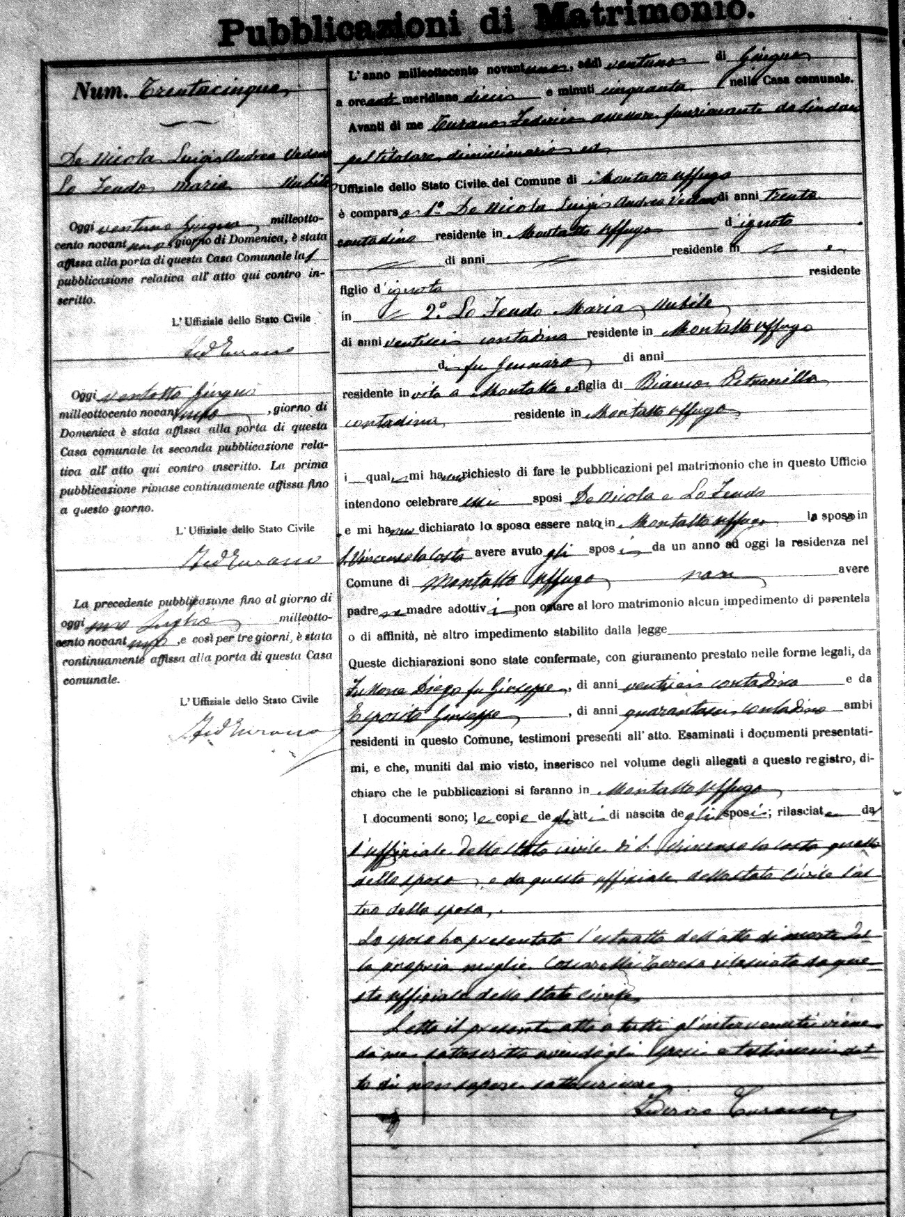 | 21 Jun | DeNicola | Luigi Andrea | Unknown | Unknown | Unknown | LoFeudo | Maria | Gennaro (fu) | Bianco | Petronilla |