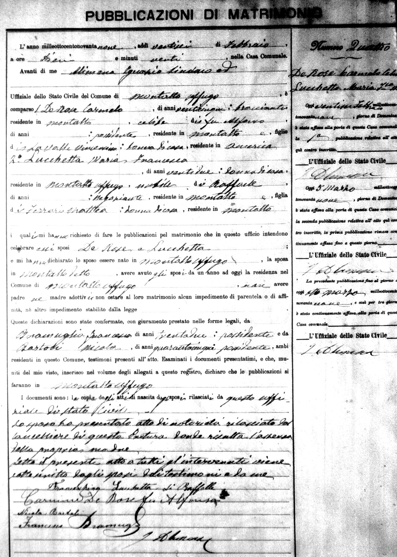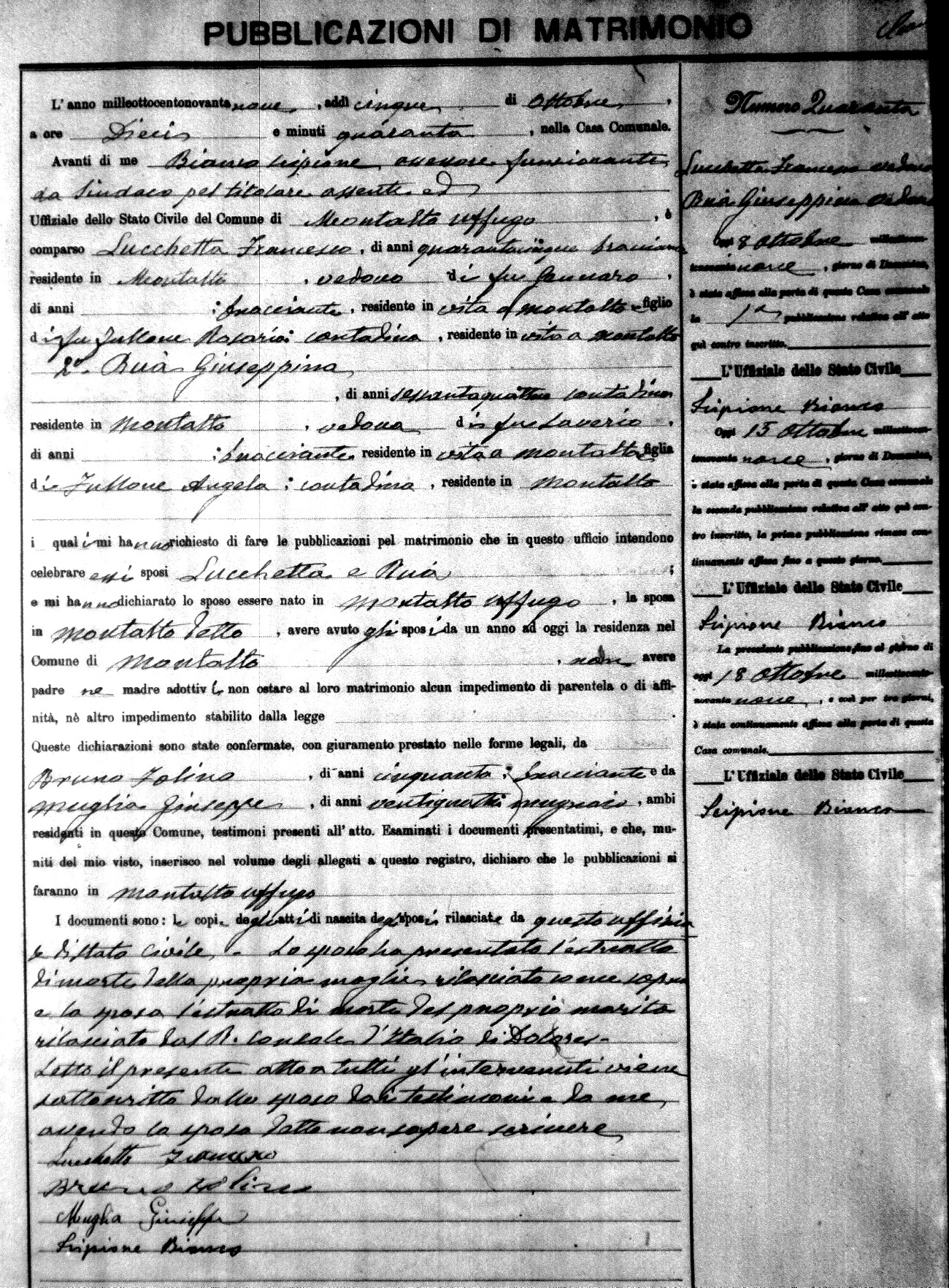 | 5 Oct | Lucchetta | Francesco | Gennaro (fu) | Fullone | Rosaria (fu) | Rua | Giuseppina | Saverio (fu) | Fullone | Angela (fu) |