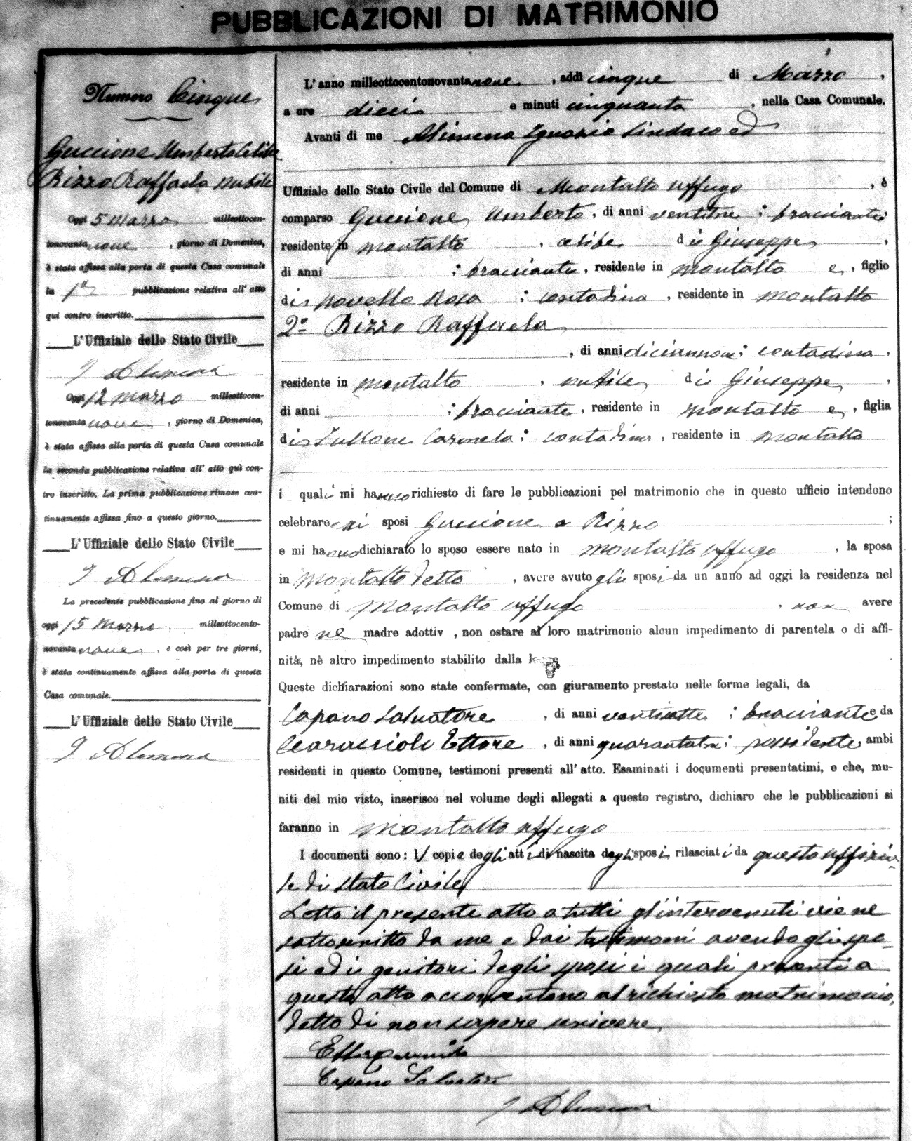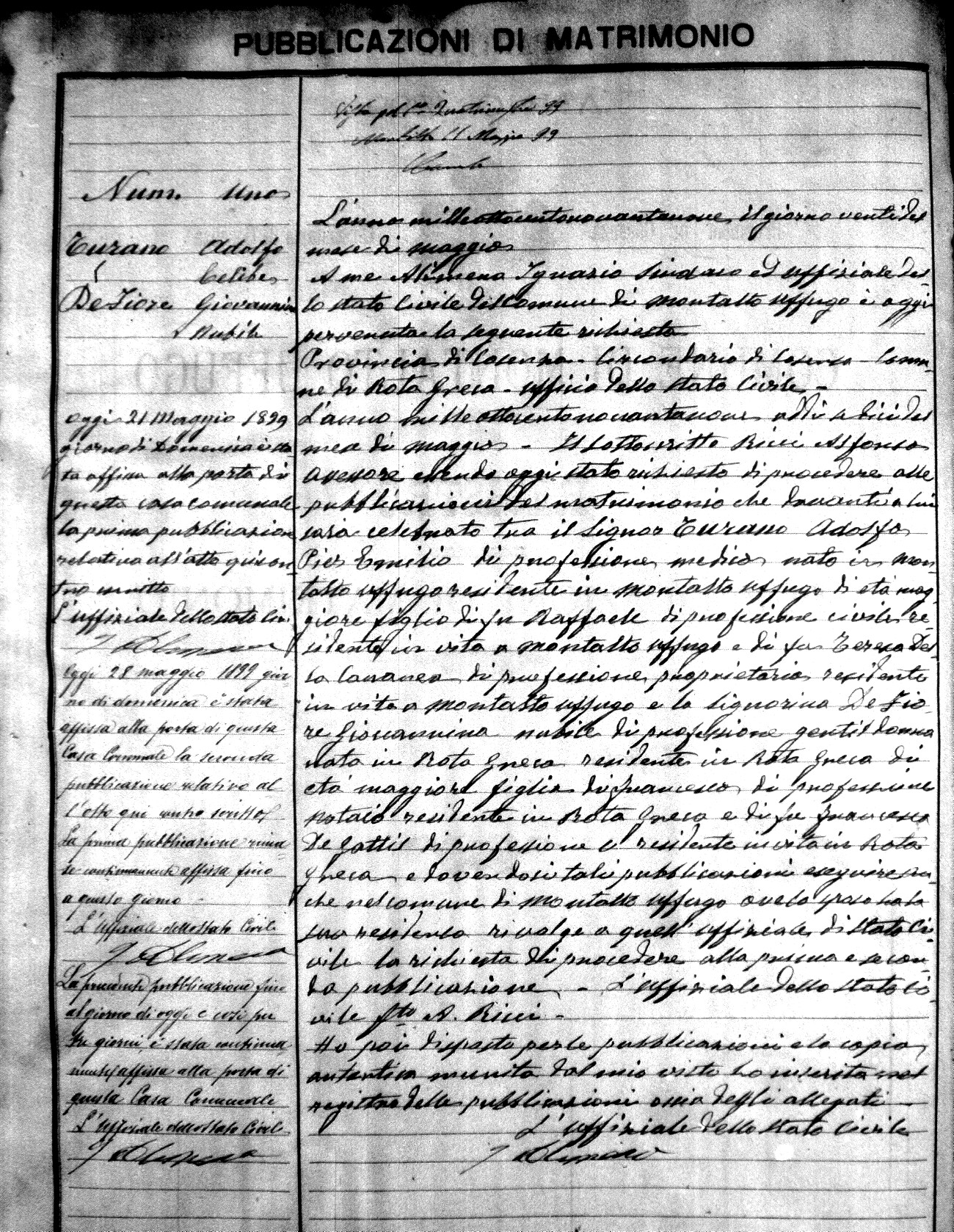 | 20 May | Turano | Adolfo | Raffaele (fu) | DellaCananeo | Teresa (fu) | DeFiore | Giovannina | Francesco | DeGattis | Francesca (fu) |
