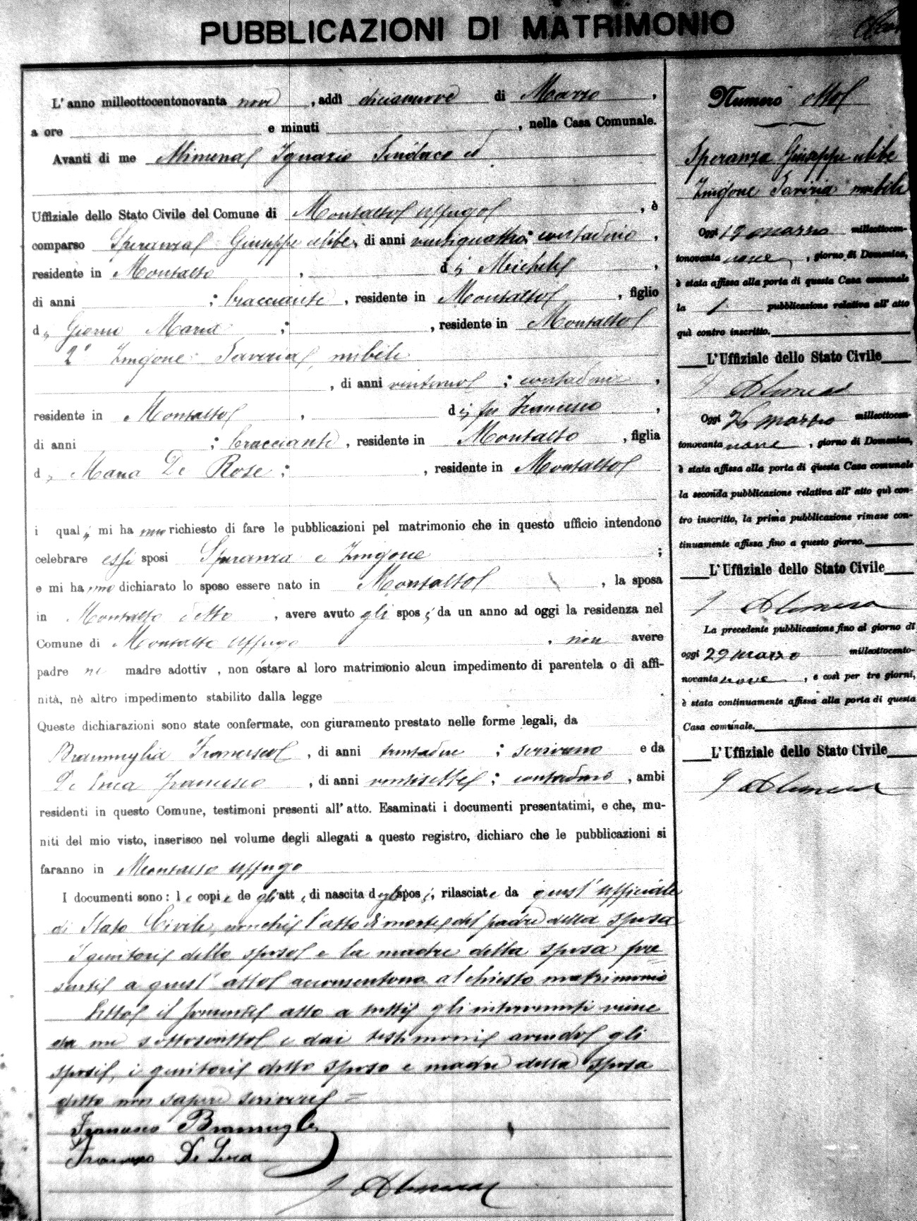 | 19 Mar | Speranza | Giuseppe | Michele | Giorno | Maria | Zingone | Saveria | Francesco (fu) | DeRose | Maria |
