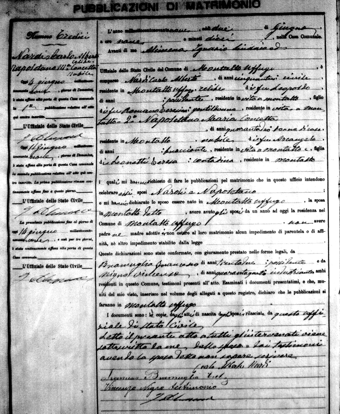 | 2 Jun | Nardi | Carlo Alberto | Leopoldo (fu) | Romano | Teresina | Napolitano | Maria Concetta | Arangelo (fu) | Leonetti | Teresa |