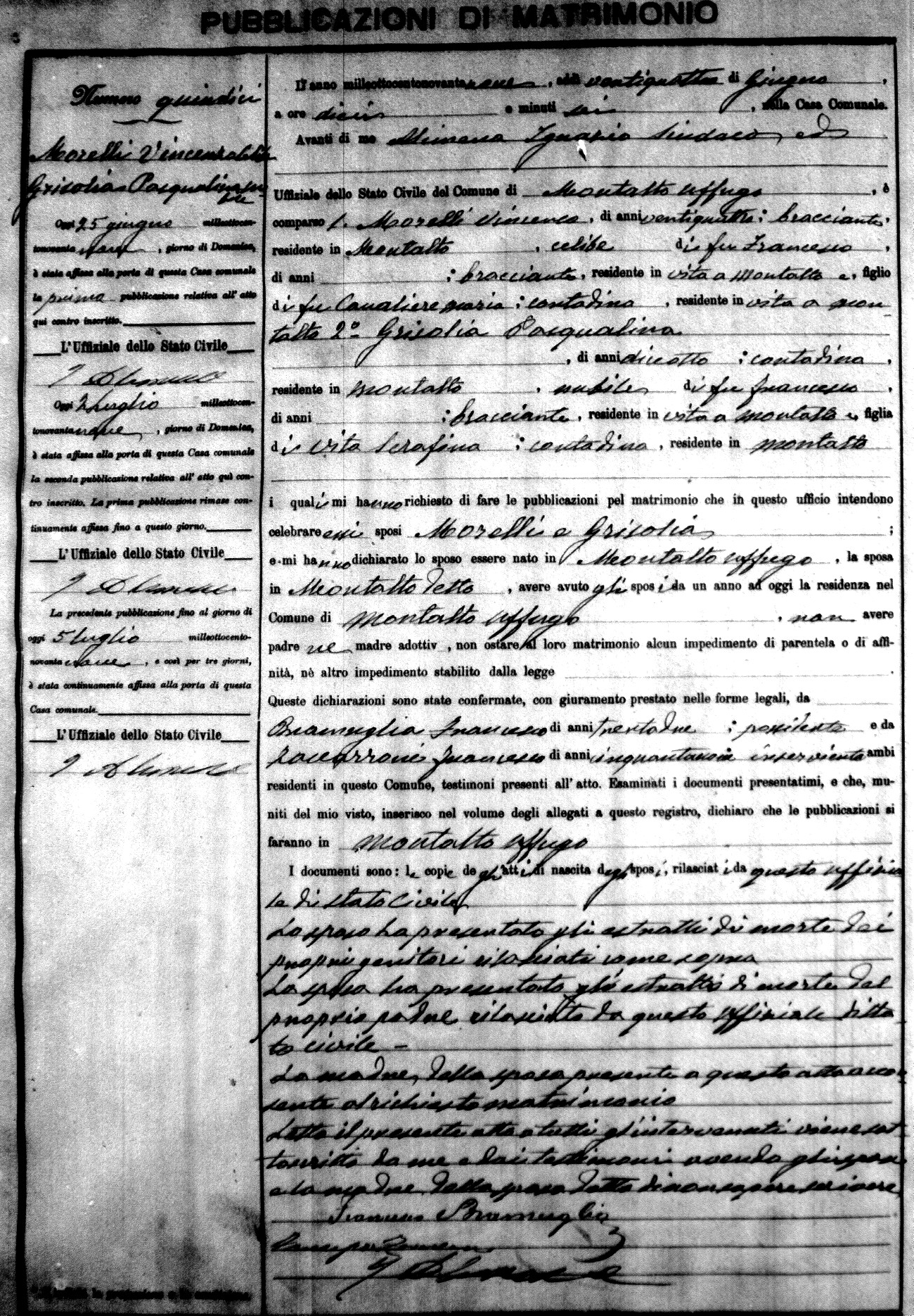 | 24 Jun | Morelli | Vincenzo | Francesco (fu) | Cavaliere | Maria | Grisolia | Pasqualina | Francesco (fu) | Vita | Serafina |