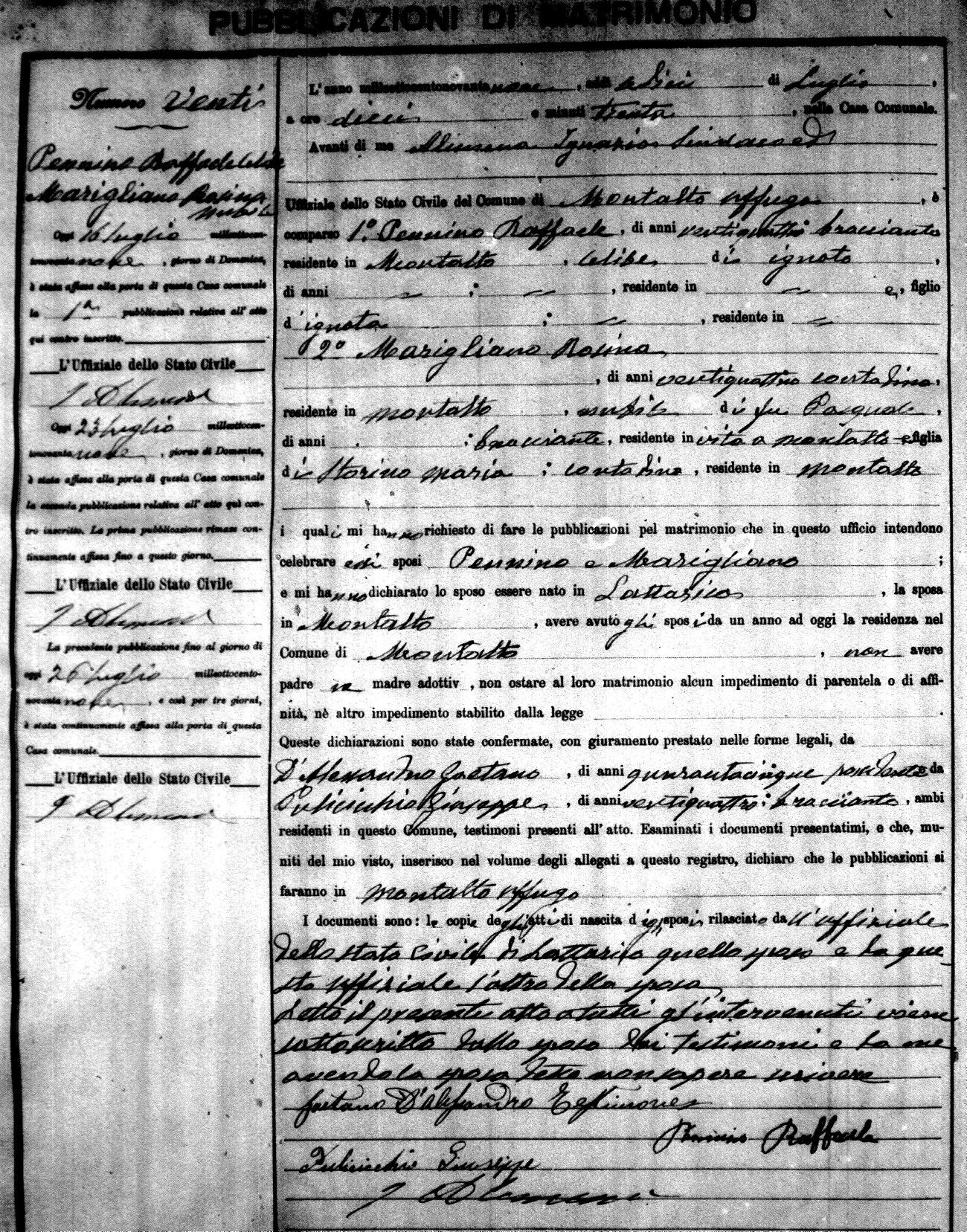 | 16 Jul | Pennino | Raffaele | Unknown | Unknown | Unknown | Marigliano | Rosina | Pasquale (fu) | Storino | Maria |