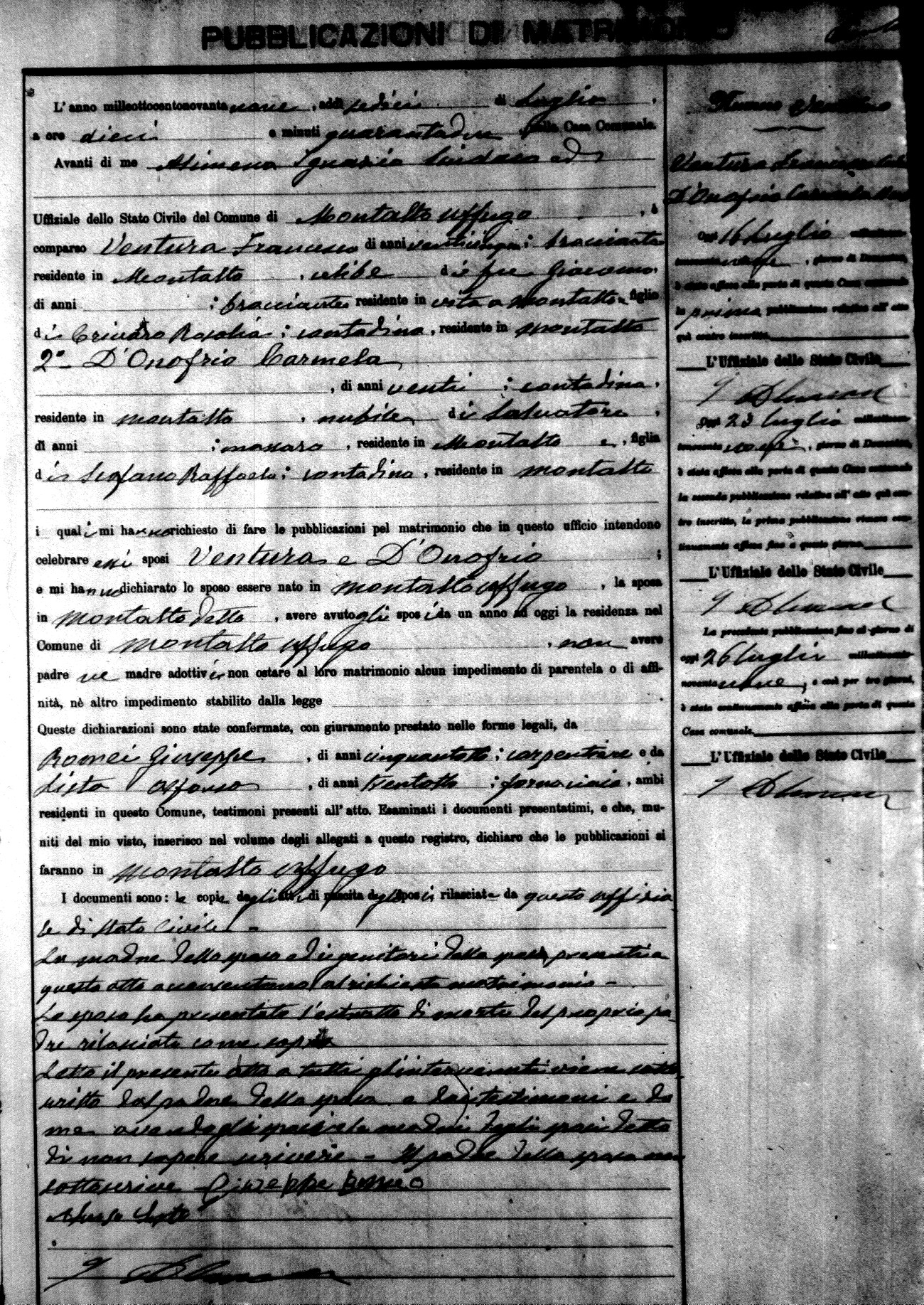 | 16 Jul | Ventura | Francesco | Giovanni (fu) | Crivaro | Rosalina | D'Onofrio | Carmela | Salvatore | Seofano | Raffaela |