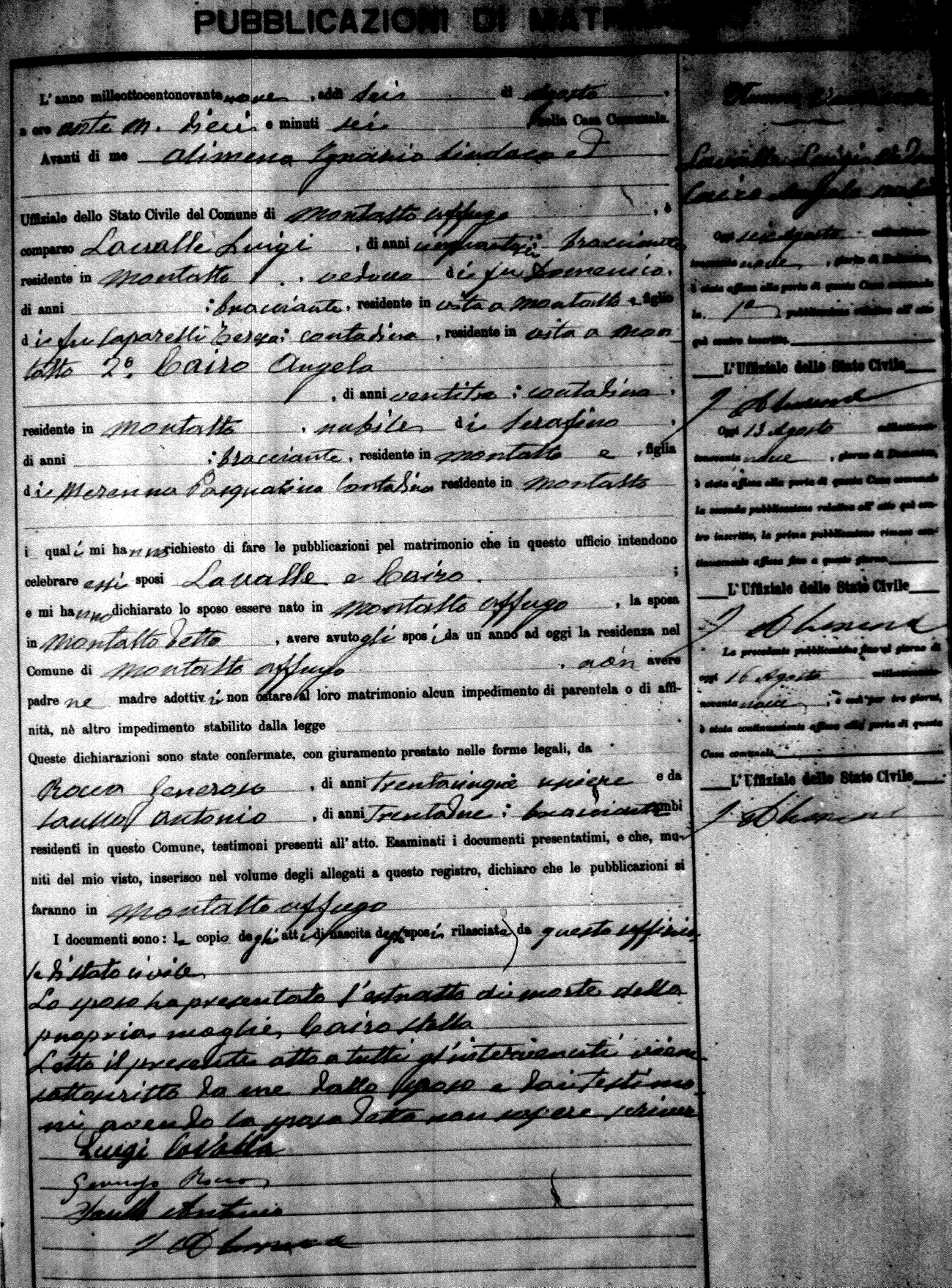 | 6 Aug | LoValle | Luigi | Domenico (fu) | Caparelli | Teresa (fu) | Cairo | Angela | Serafino | Merenna | Pasqualina |