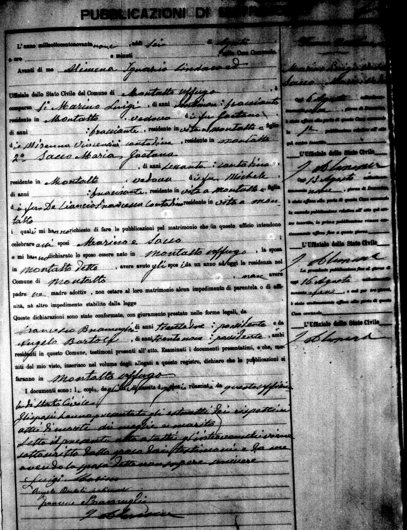 | 6 Aug | Marino | Luigi | Gaetano (fu) | Mirenna | Vincenza | Sano | Maria Gastana | Michele (fu) | DeCiancio | Francesca |