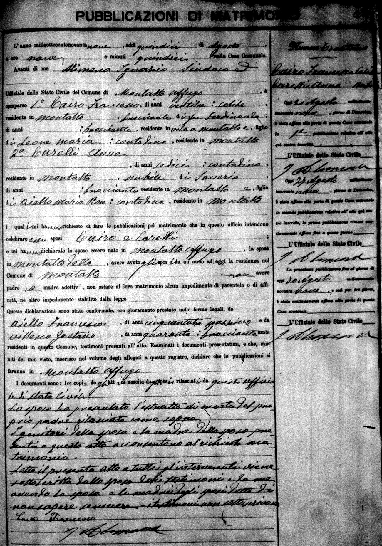 | 14 Aug | Cairo | Francesco | Ferdinando (fu) | Leone | Maria | Carelli | Anna | Saverio | Aiello | Maria Rosa |