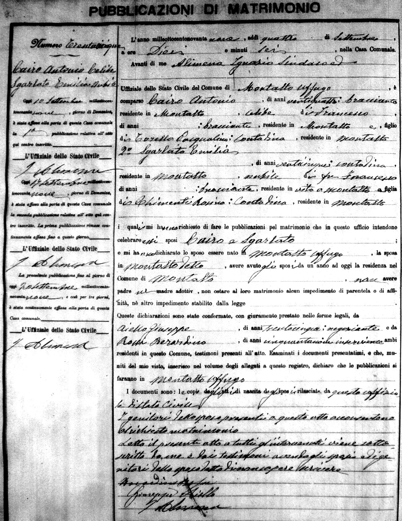 | 4 Sep | Cairo | Antonio | Francesco | Corello | Pasqualina | Sgarlato | Emilia | Francesco (fu) | Chimenti | Rosina |
