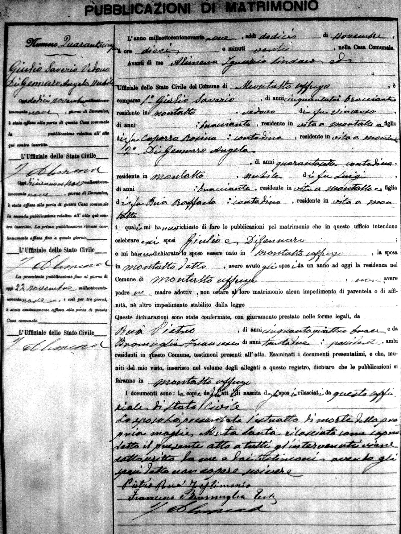 | 12 Nov | Giulio | Saverio | Vincenzo (fu) | Capano | Rosina (fu) | DiGennaro | Angela | Luigi (fu) | Rua | Raffaela |
