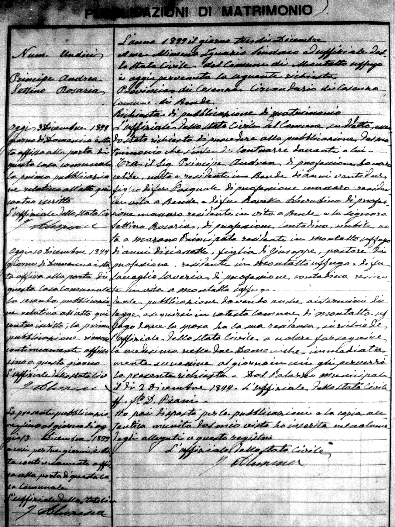 | 13 Dec | Principe | Andrea | Pasquale (fu) | Rovella | Cherubina (fu) | Settino | Rosaria | Giuseppe | Savaglio | Saveria (fu) |