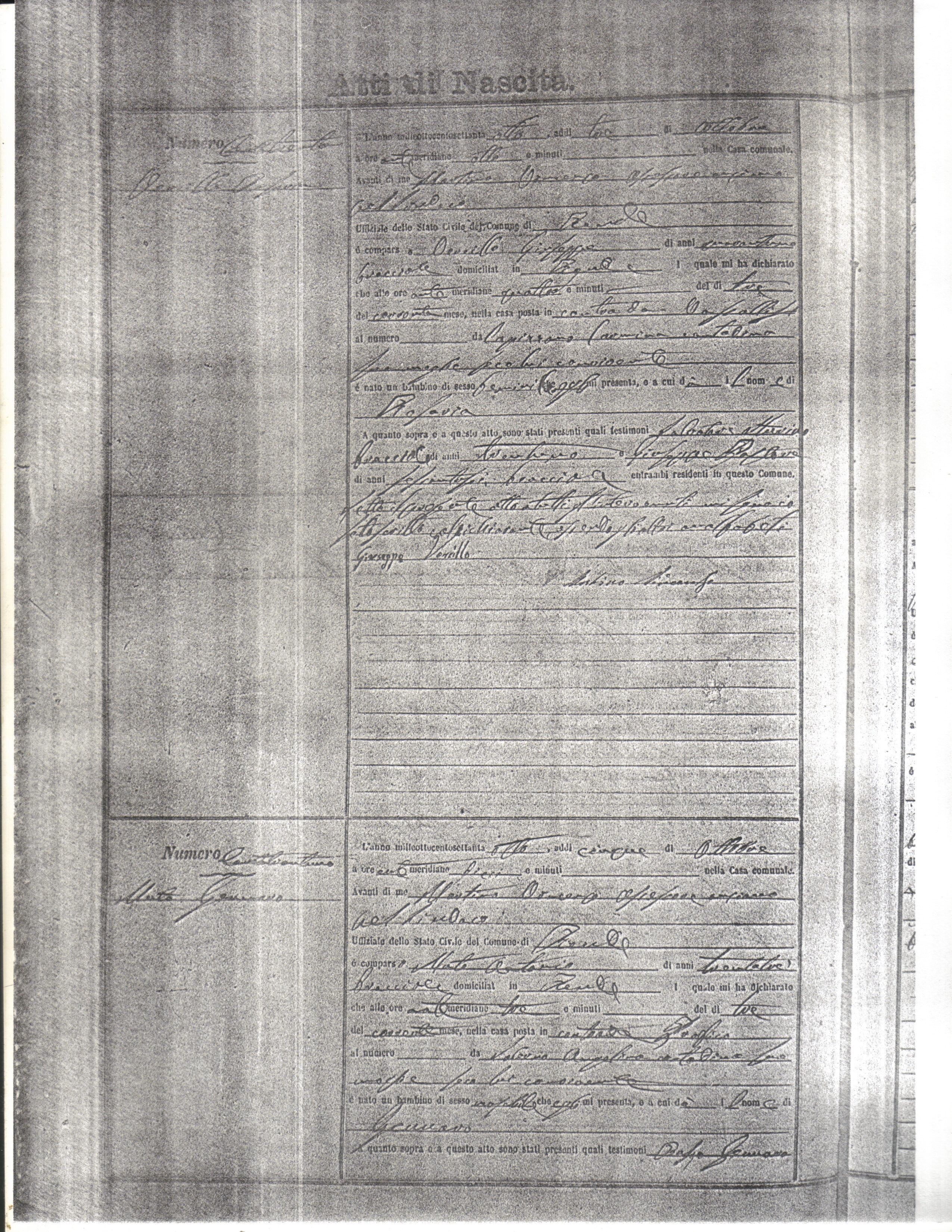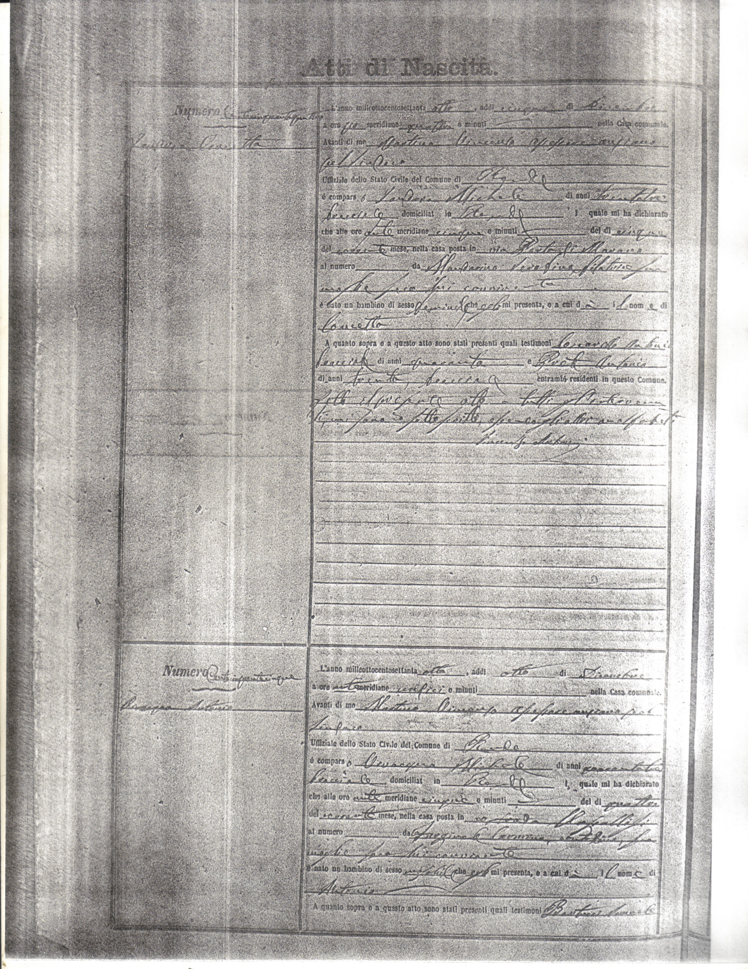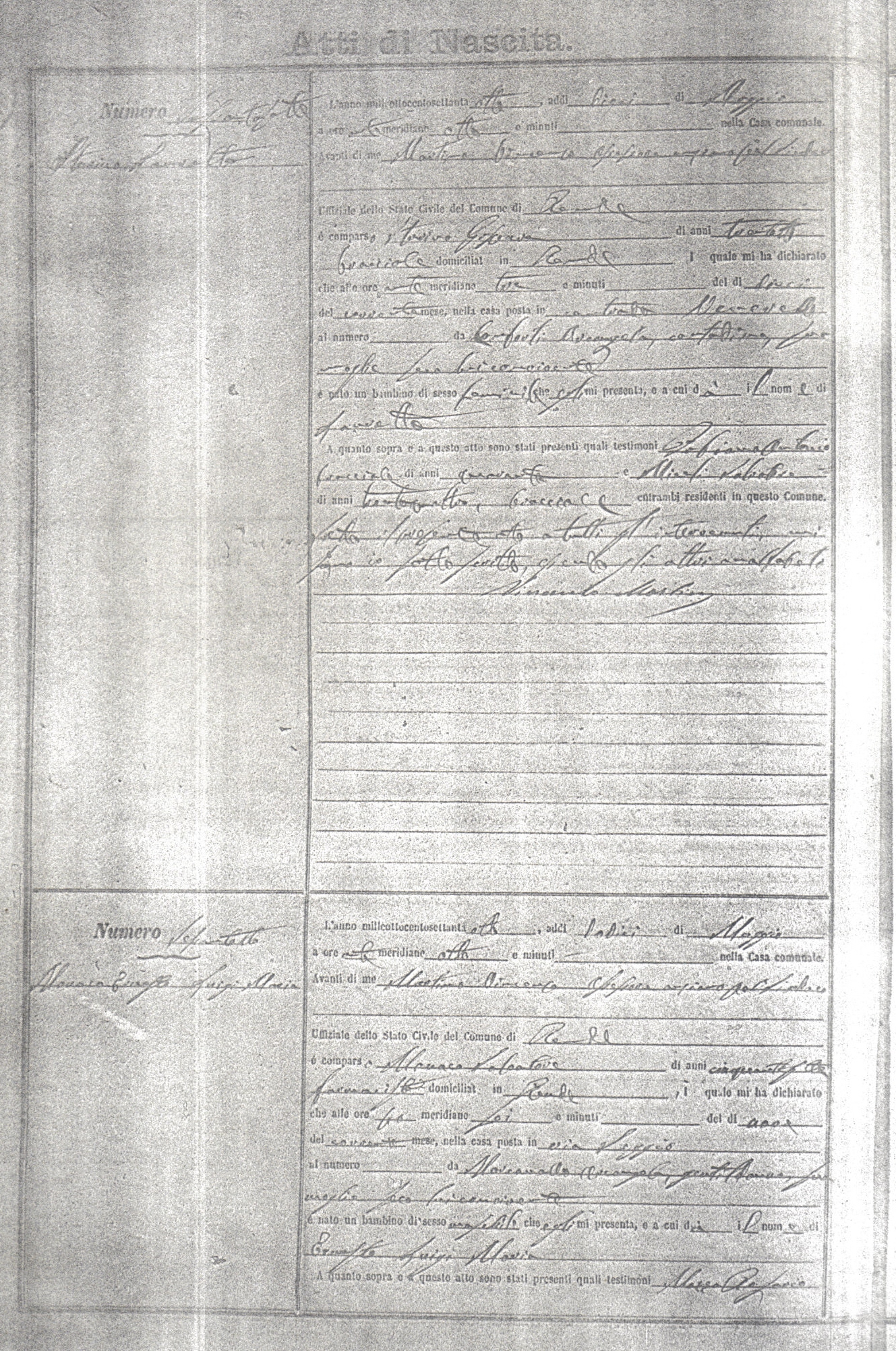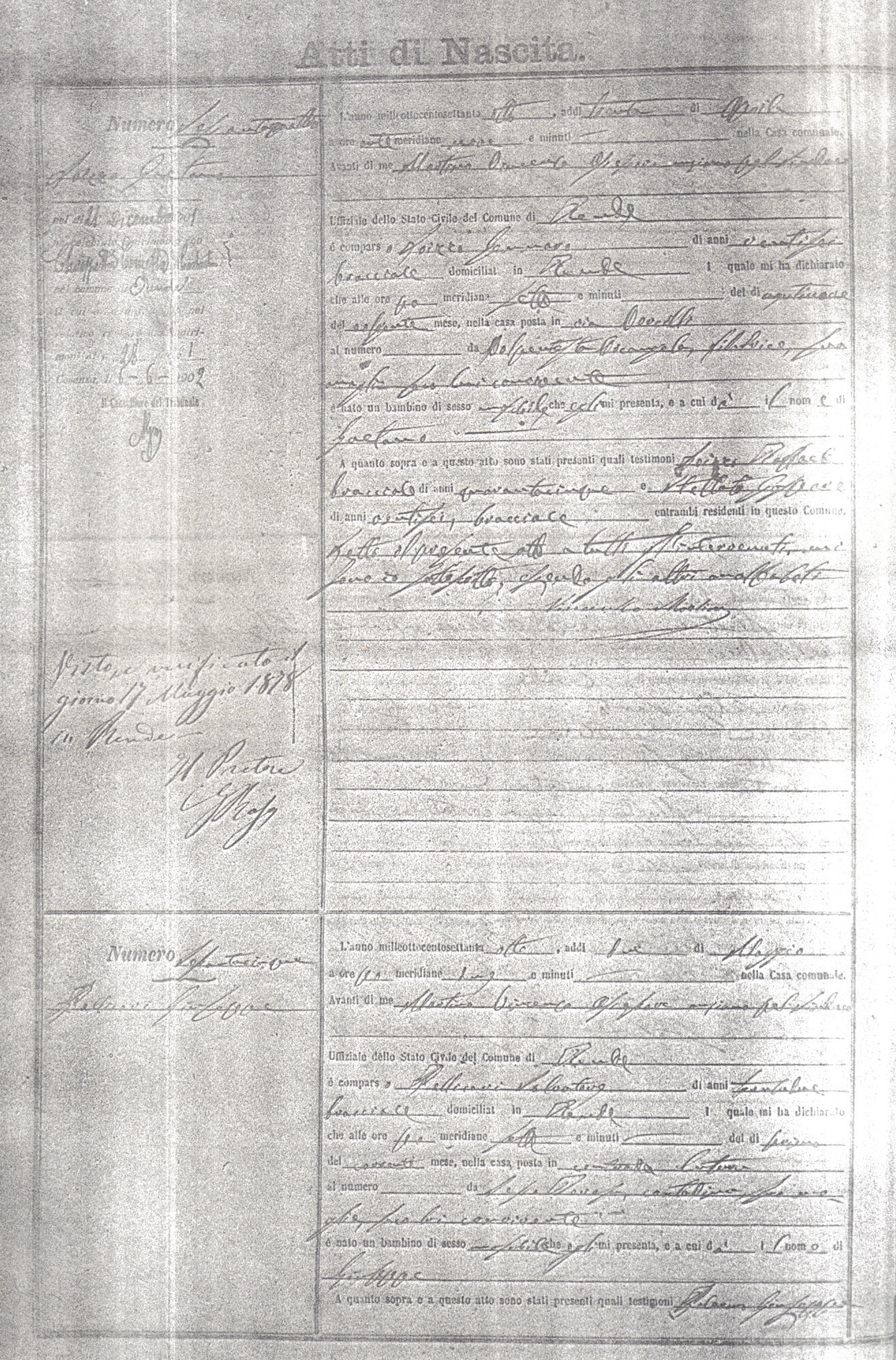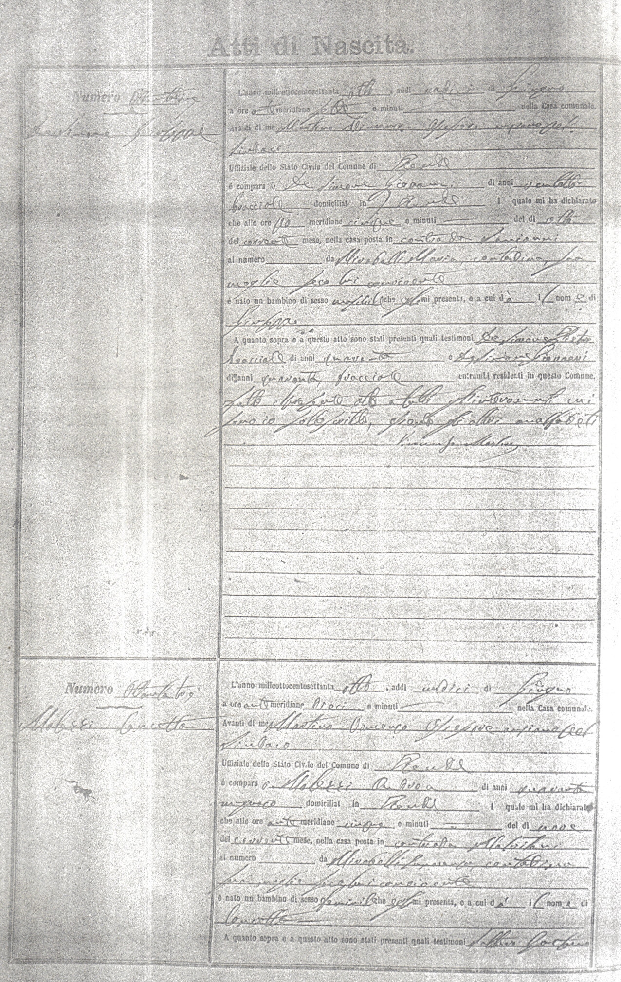 This page has the index to all the birth acts available for Rende That occured in 1878. The index give the atto (act) number which will be linked to a copy of the actual record on the table below. Please be patient while we get these records up. For a translation of the birth act form, visit our sister site, Montalto Uffugo.Net.