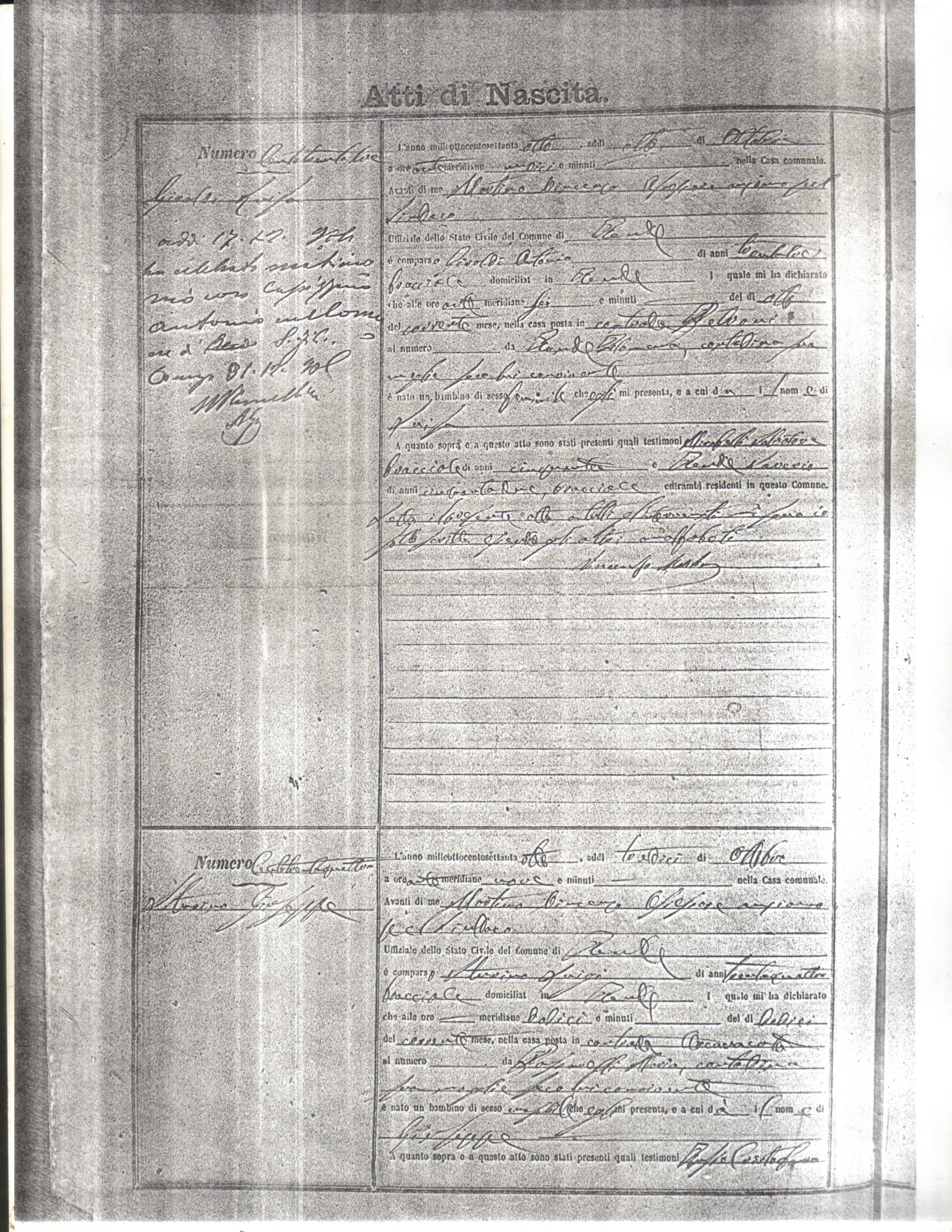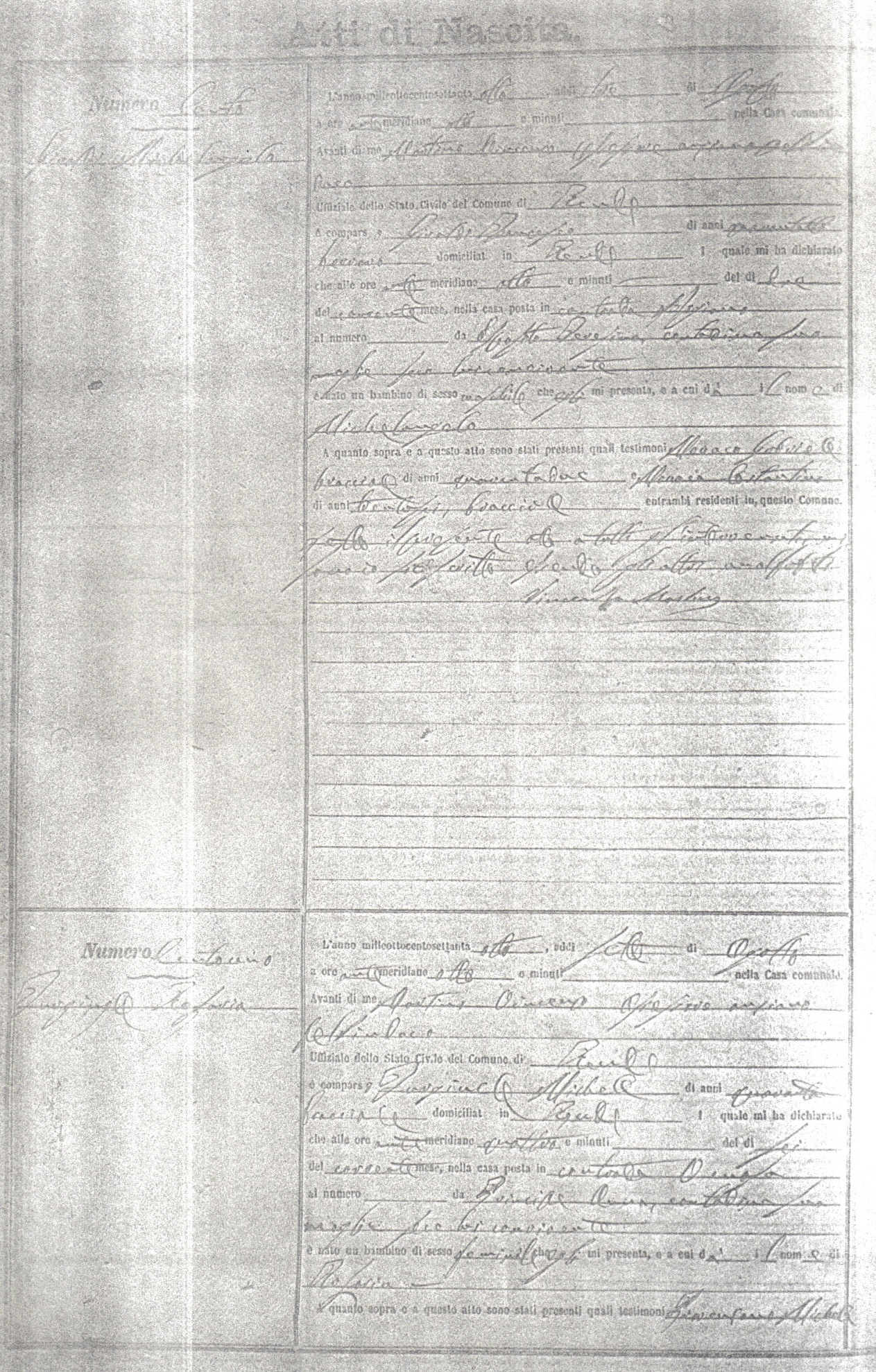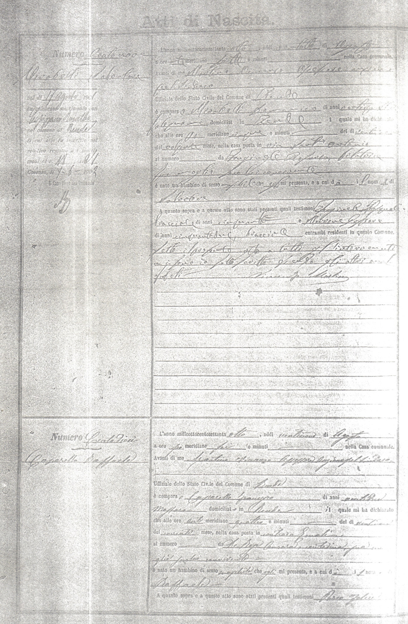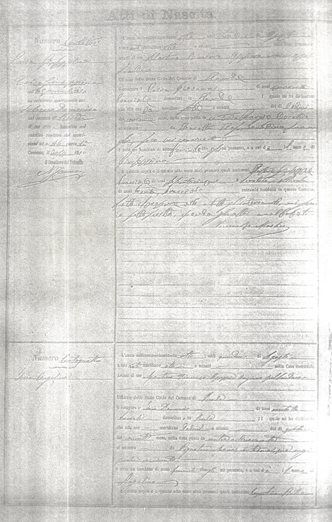 This page has the index to all the birth acts available for Rende That occured in 1878. The index give the atto (act) number which will be linked to a copy of the actual record on the table below. Please be patient while we get these records up. For a translation of the birth act form, visit our sister site, Montalto Uffugo.Net.