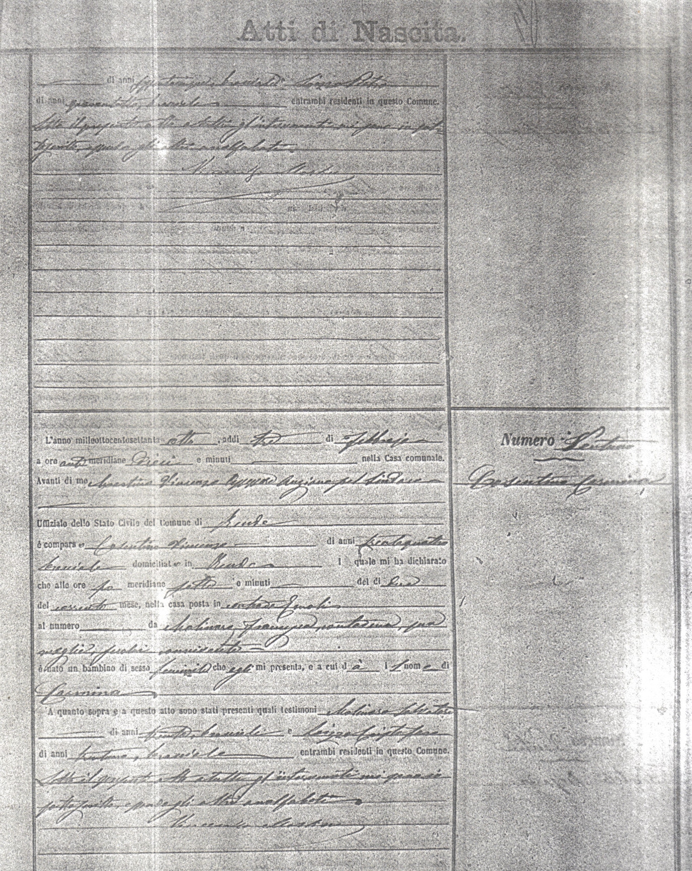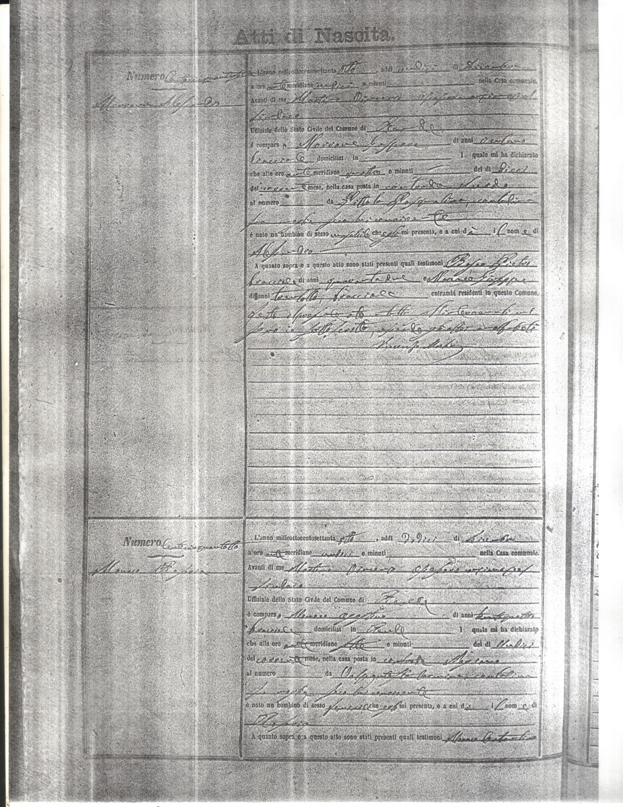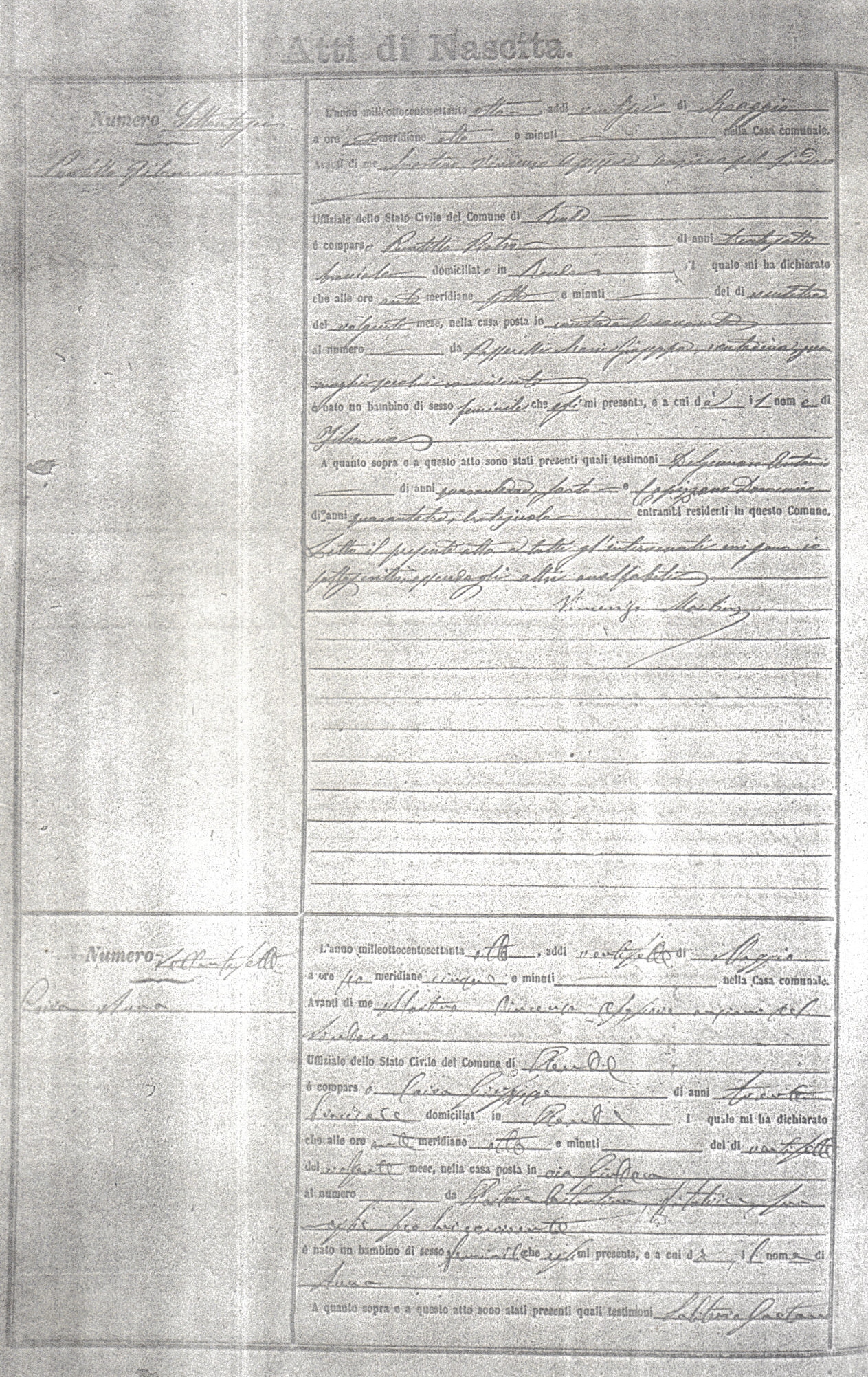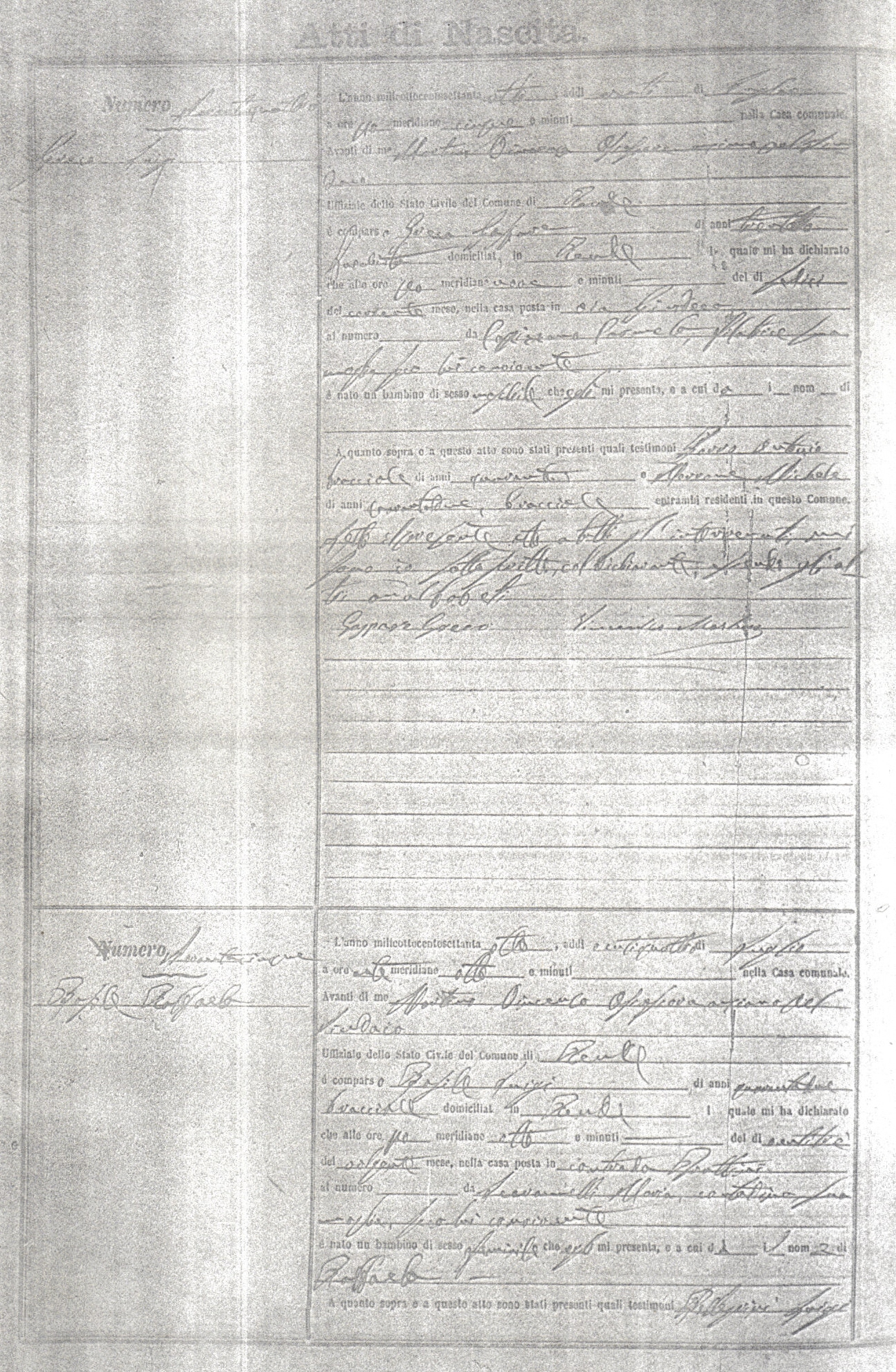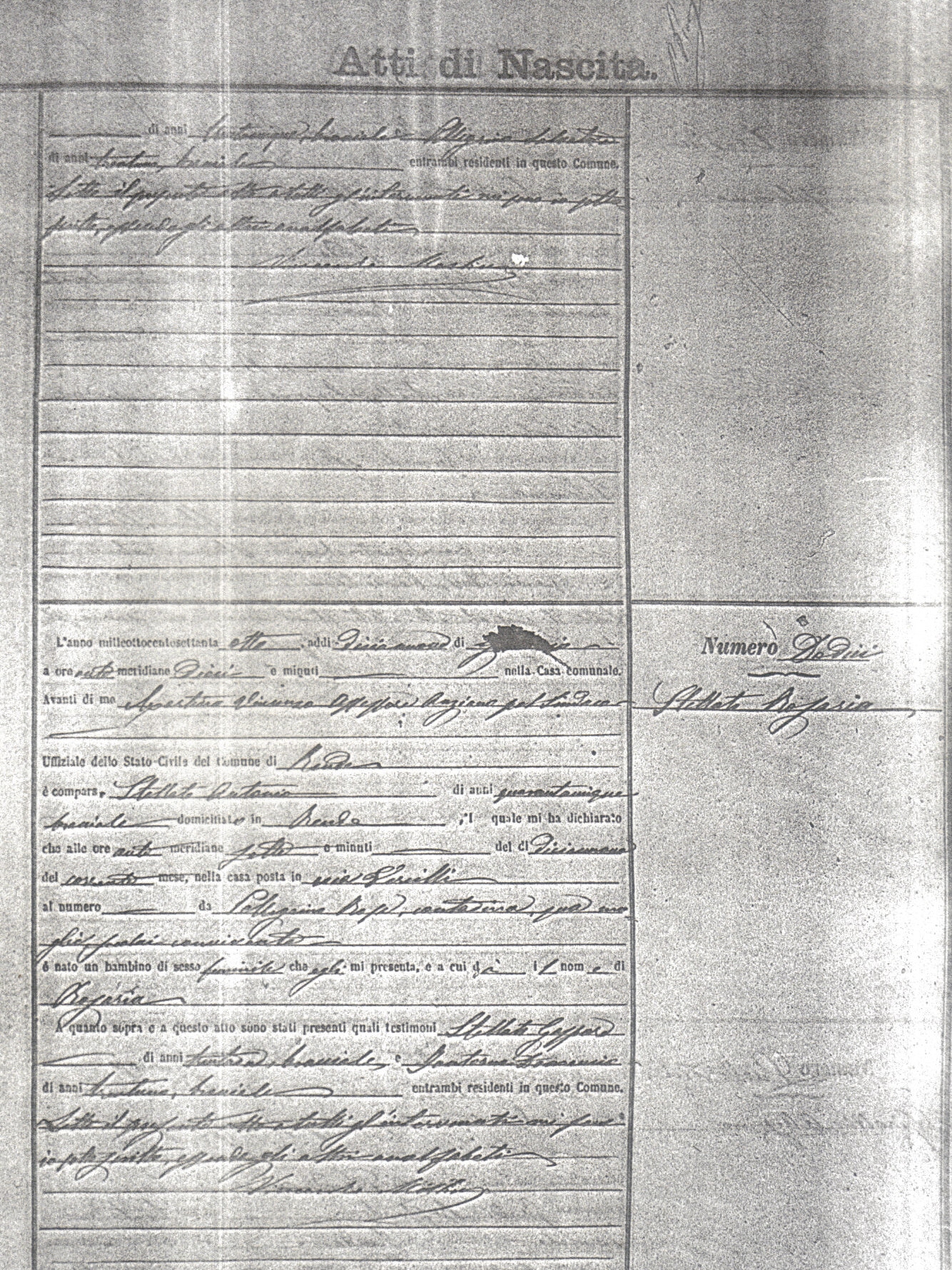 This page has the index to all the birth acts available for Rende That occured in 1878. The index give the atto (act) number which will be linked to a copy of the actual record on the table below. Please be patient while we get these records up. For a translation of the birth act form, visit our sister site, Montalto Uffugo.Net.