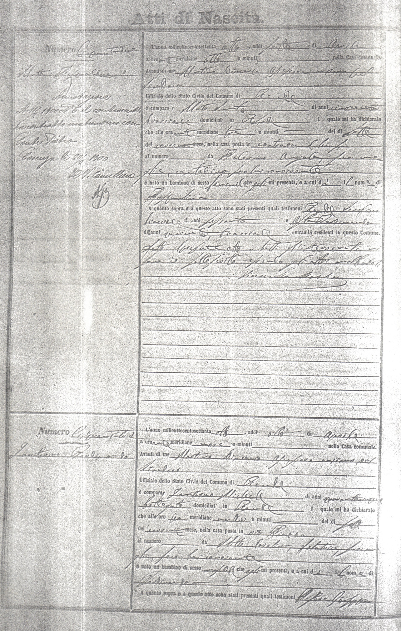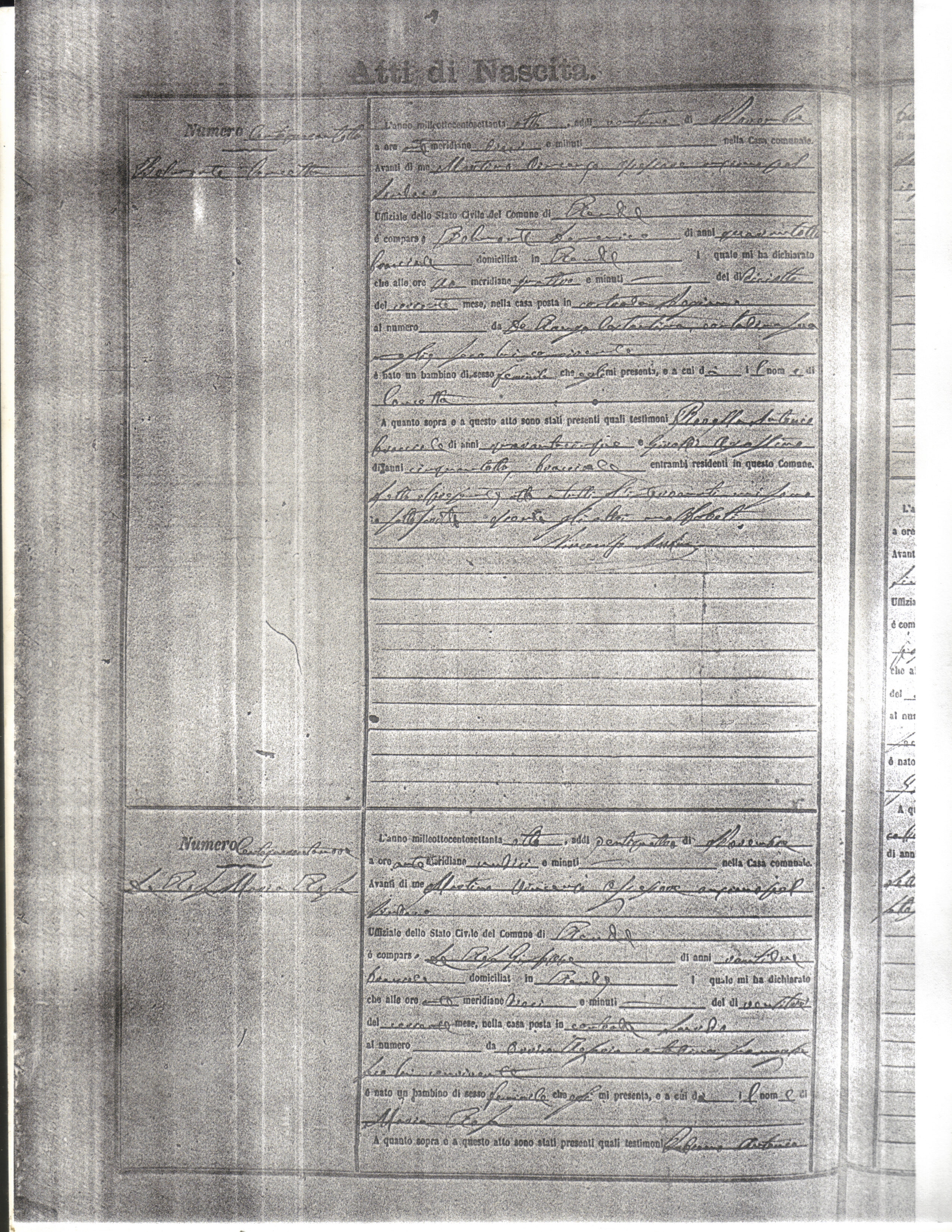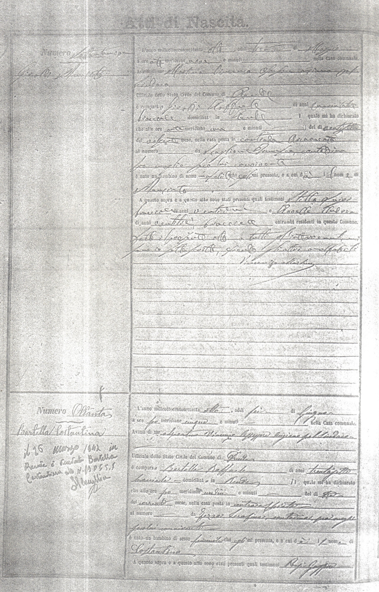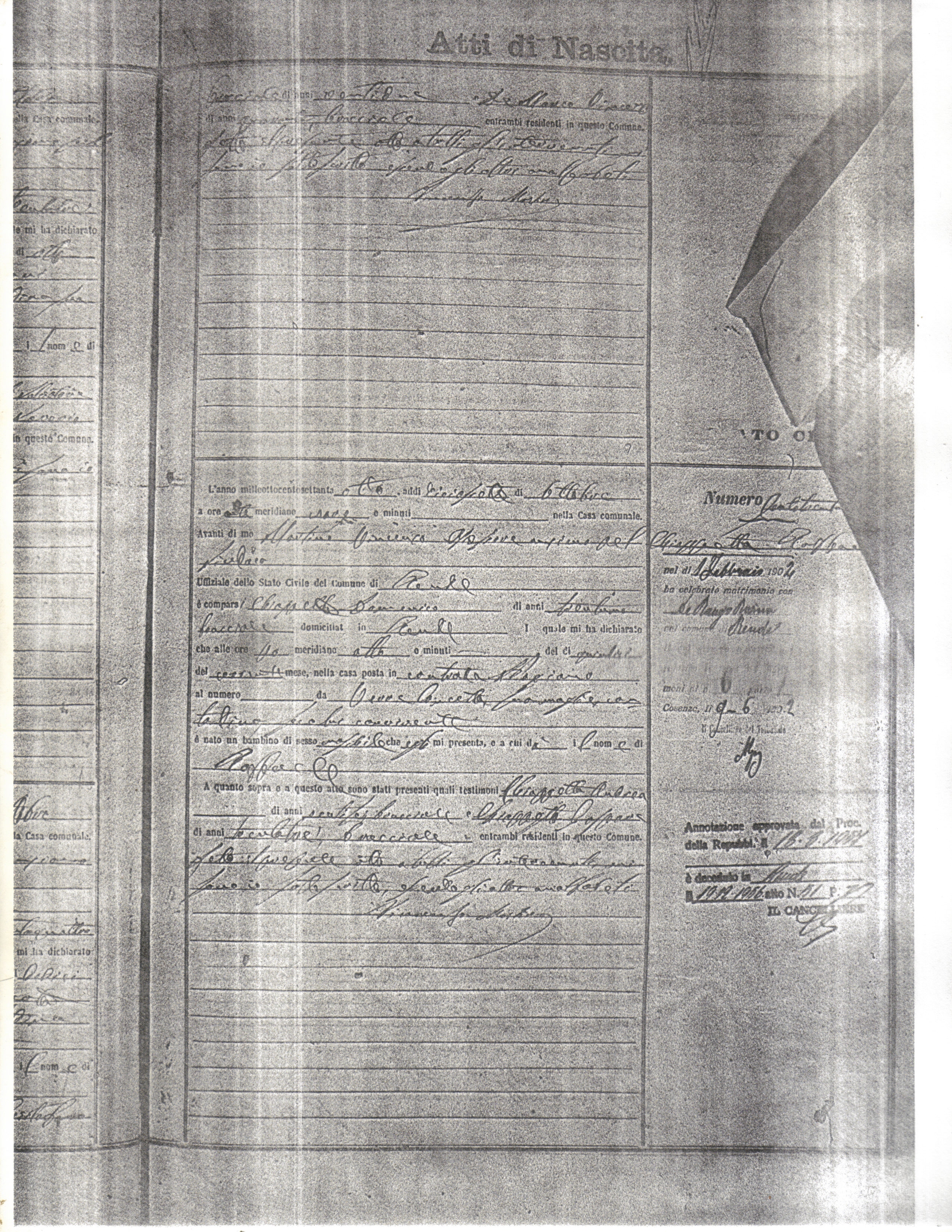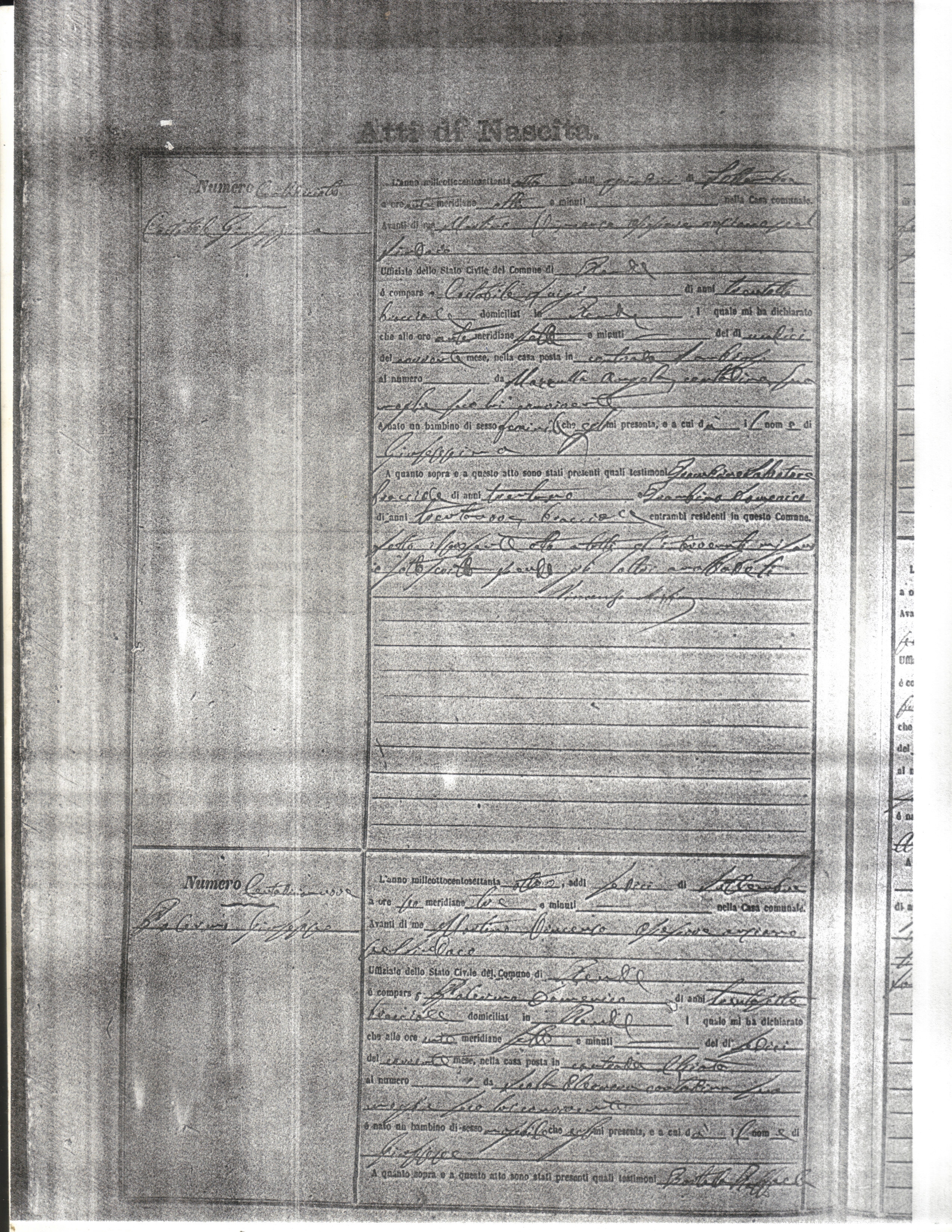 This page has the index to all the birth acts available for Rende That occured in 1878. The index give the atto (act) number which will be linked to a copy of the actual record on the table below. Please be patient while we get these records up. For a translation of the birth act form, visit our sister site, Montalto Uffugo.Net.