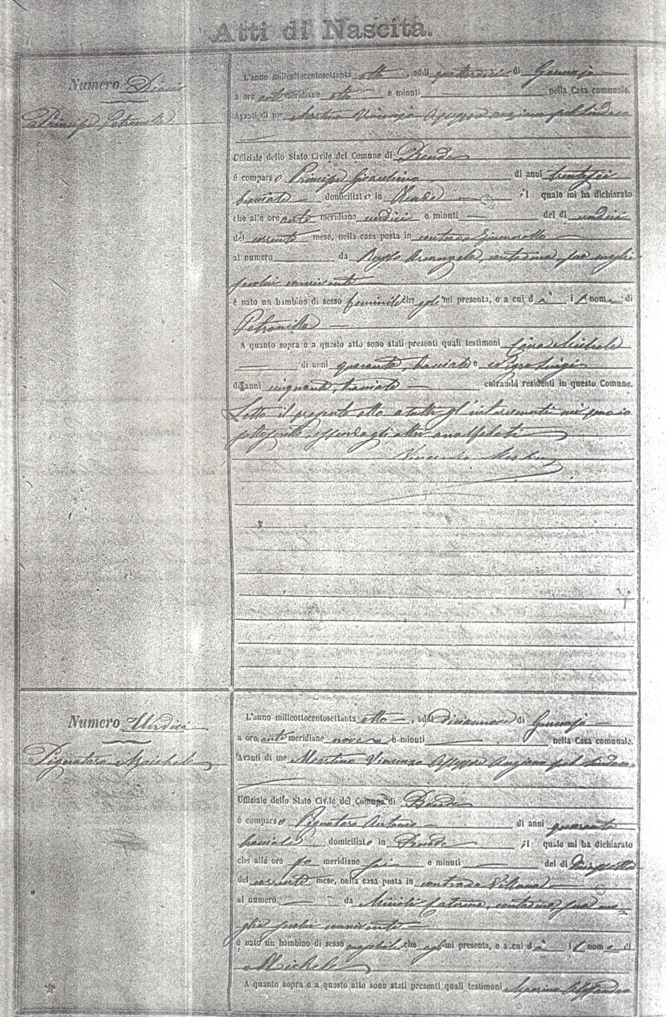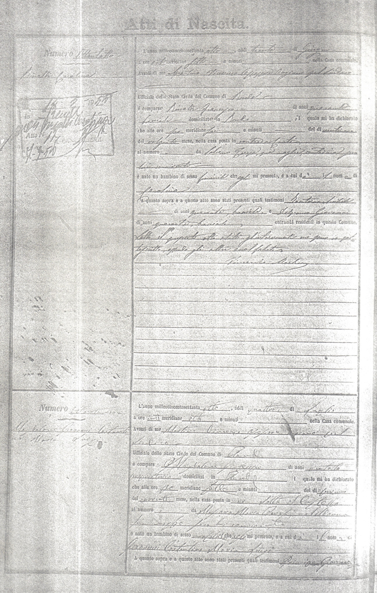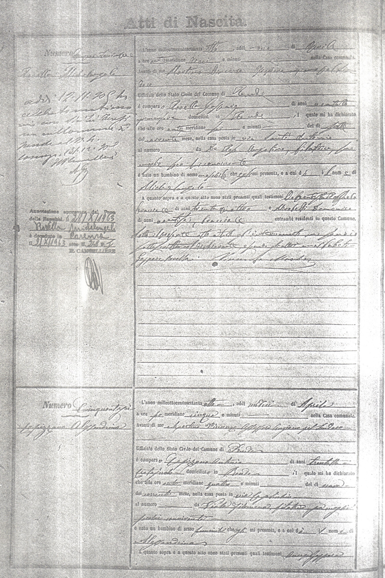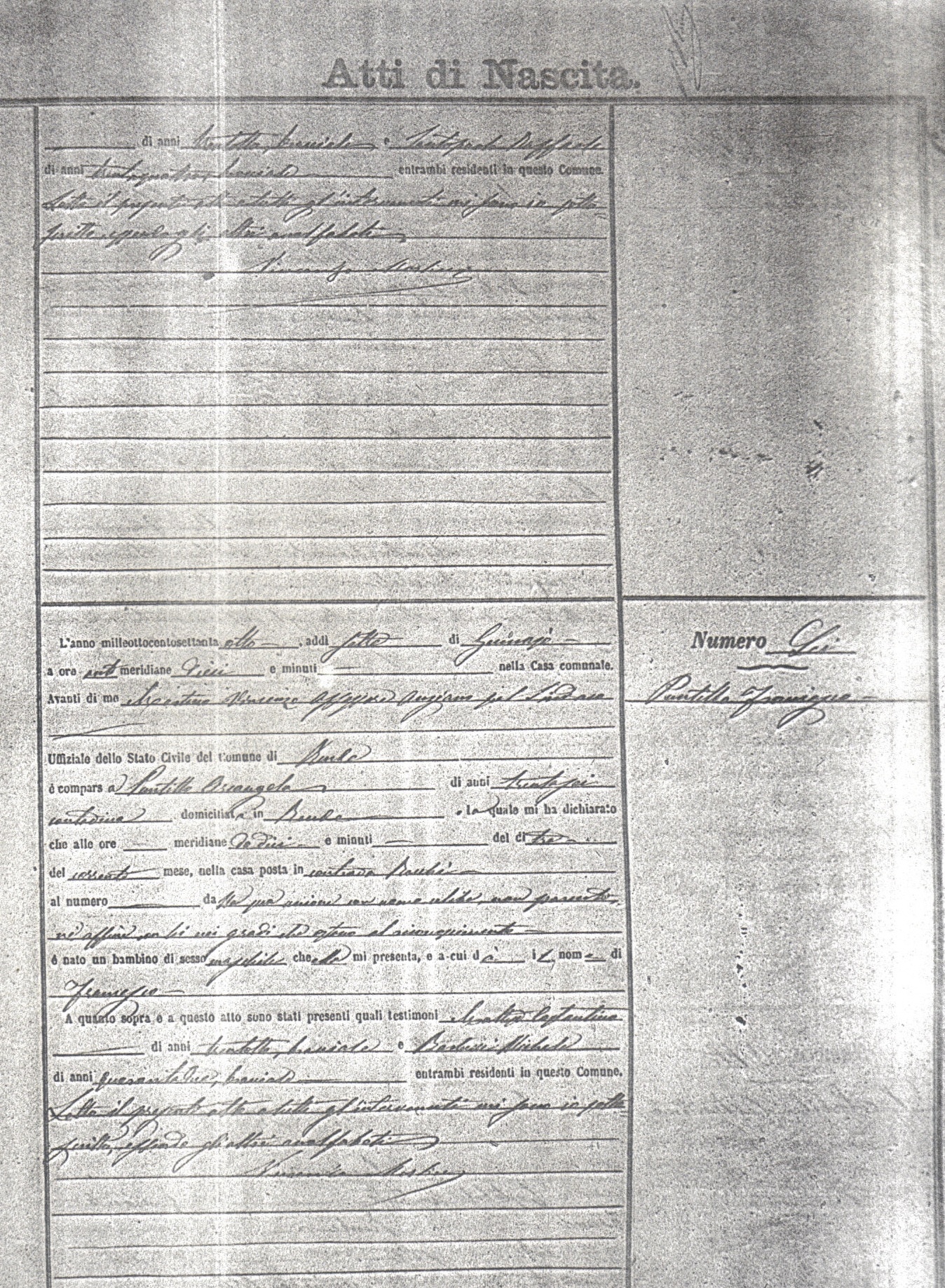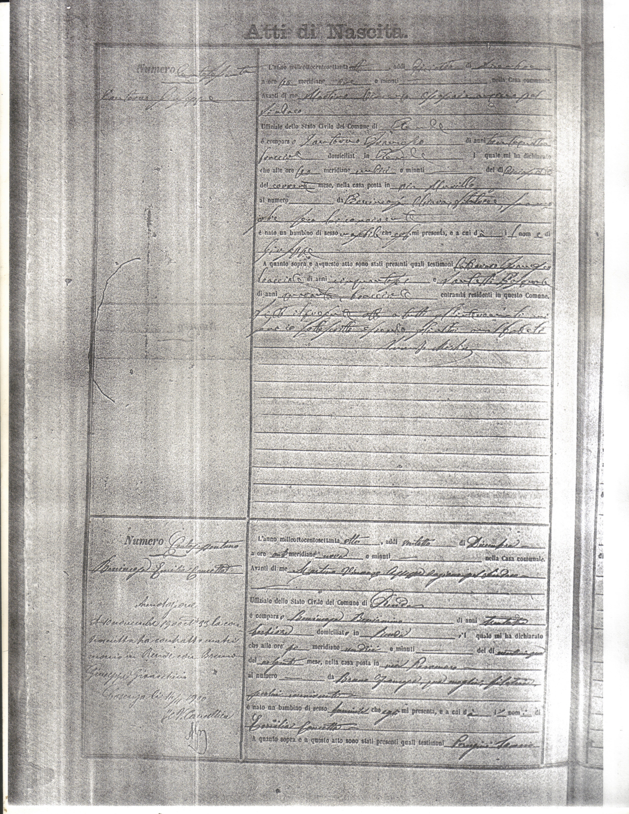 This page has the index to all the birth acts available for Rende That occured in 1878. The index give the atto (act) number which will be linked to a copy of the actual record on the table below. Please be patient while we get these records up. For a translation of the birth act form, visit our sister site, Montalto Uffugo.Net.