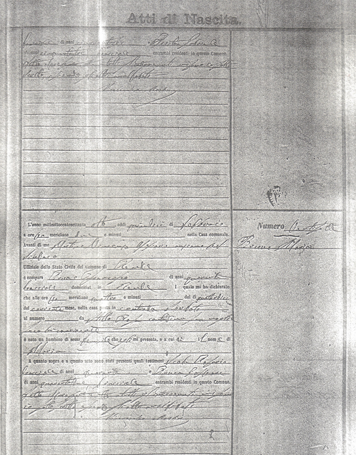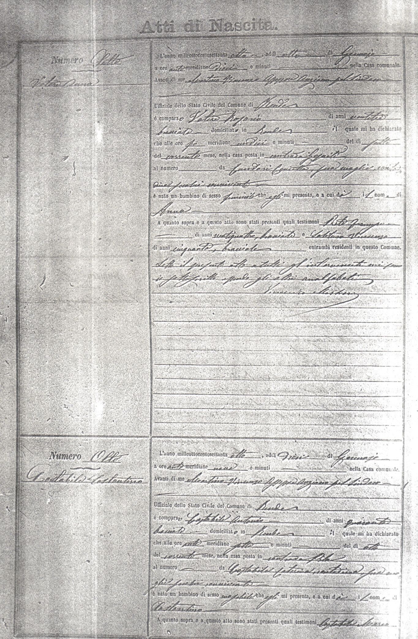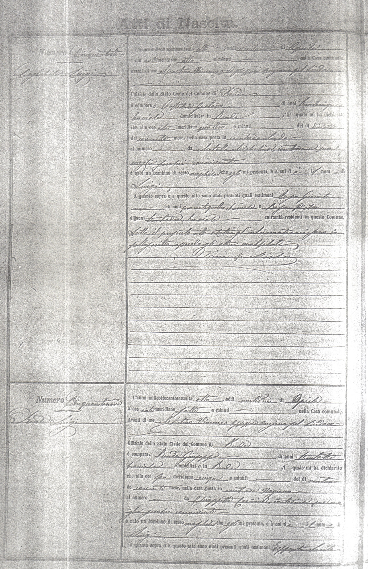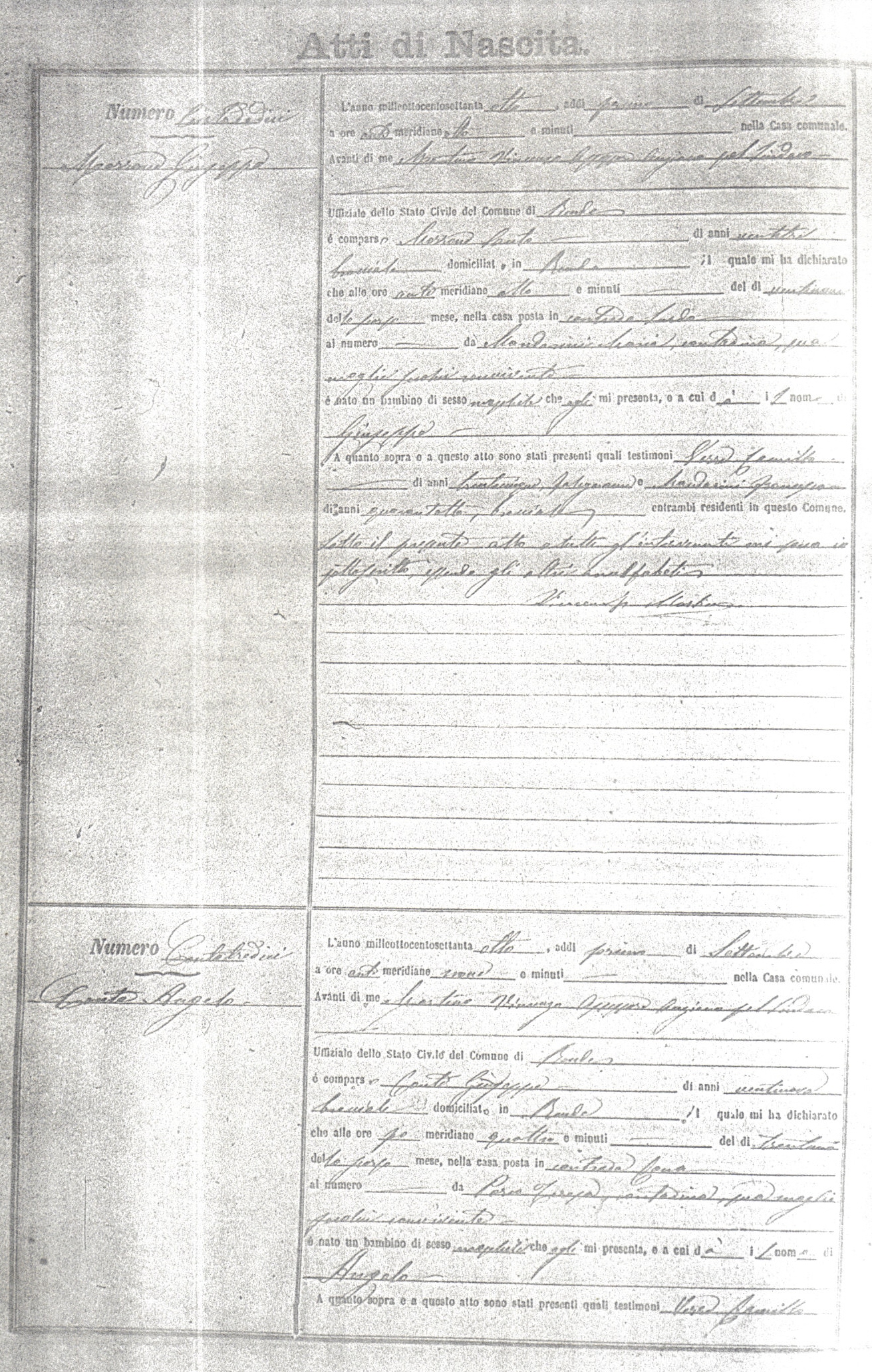 This page has the index to all the birth acts available for Rende That occured in 1878. The index give the atto (act) number which will be linked to a copy of the actual record on the table below. Please be patient while we get these records up. For a translation of the birth act form, visit our sister site, Montalto Uffugo.Net.