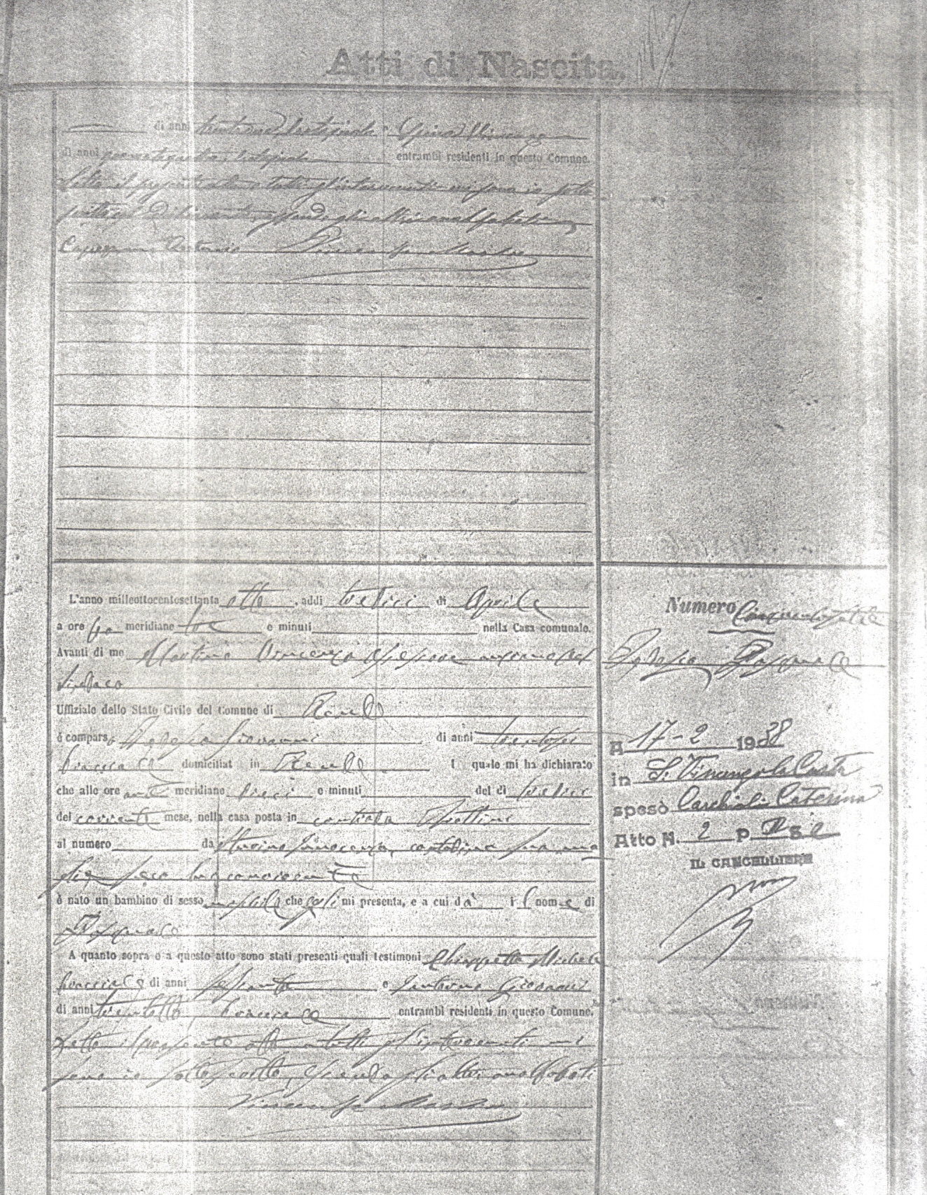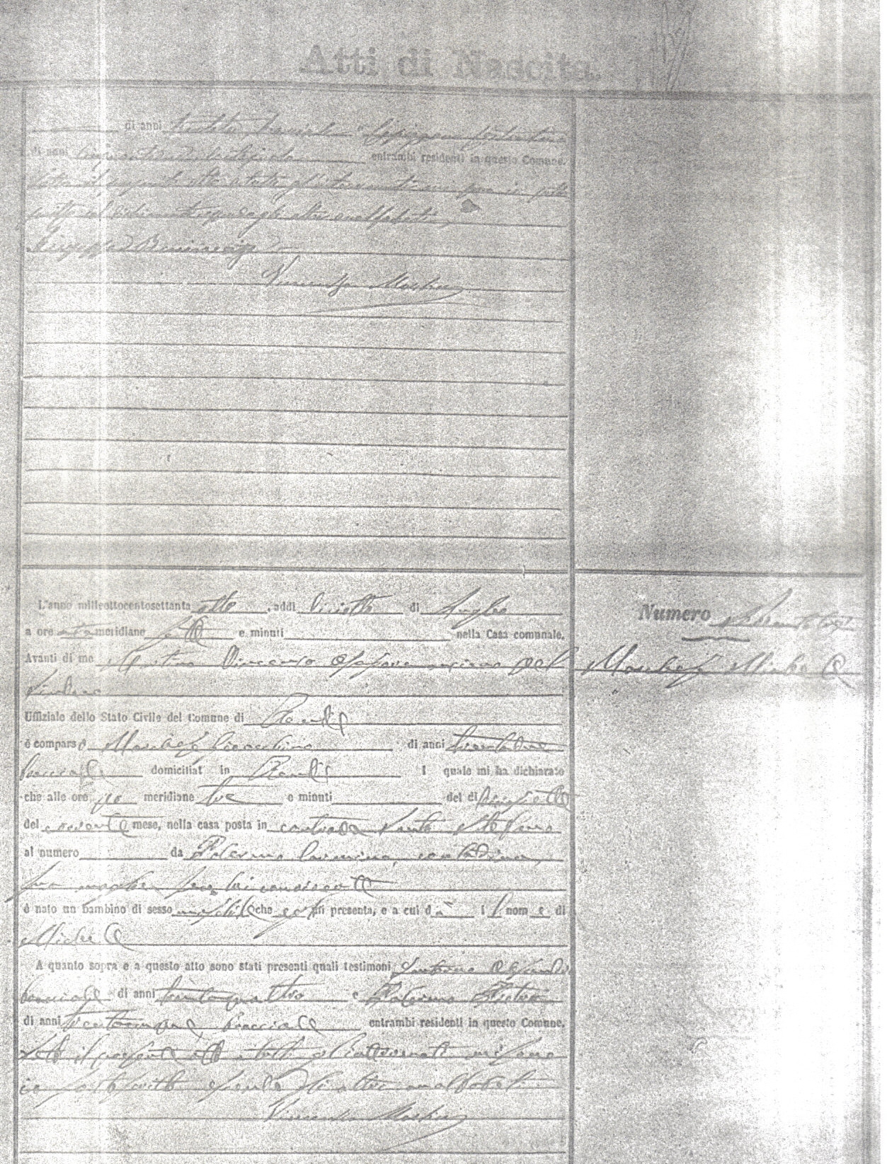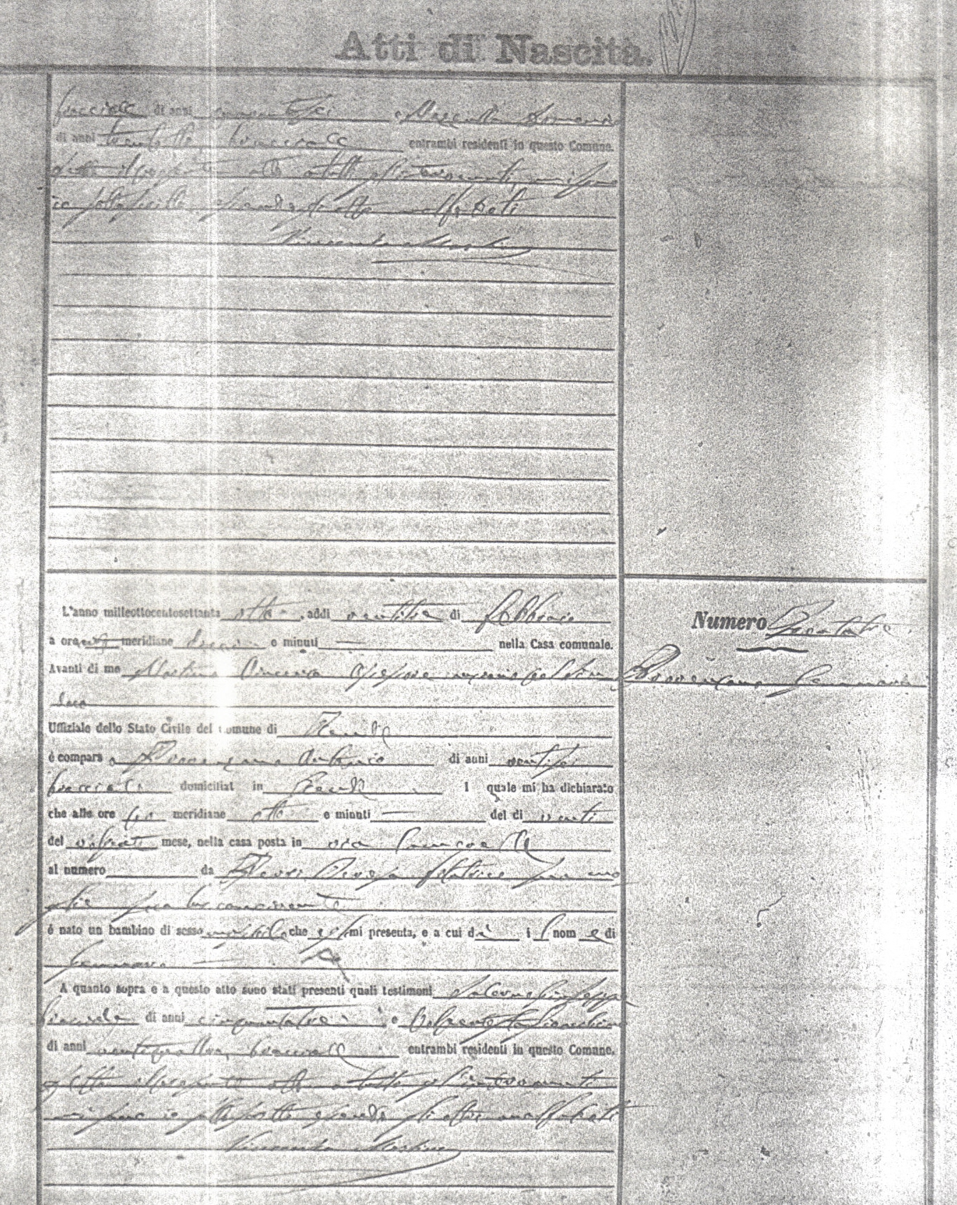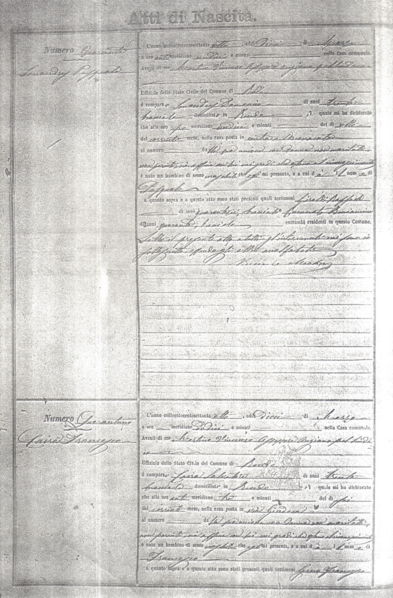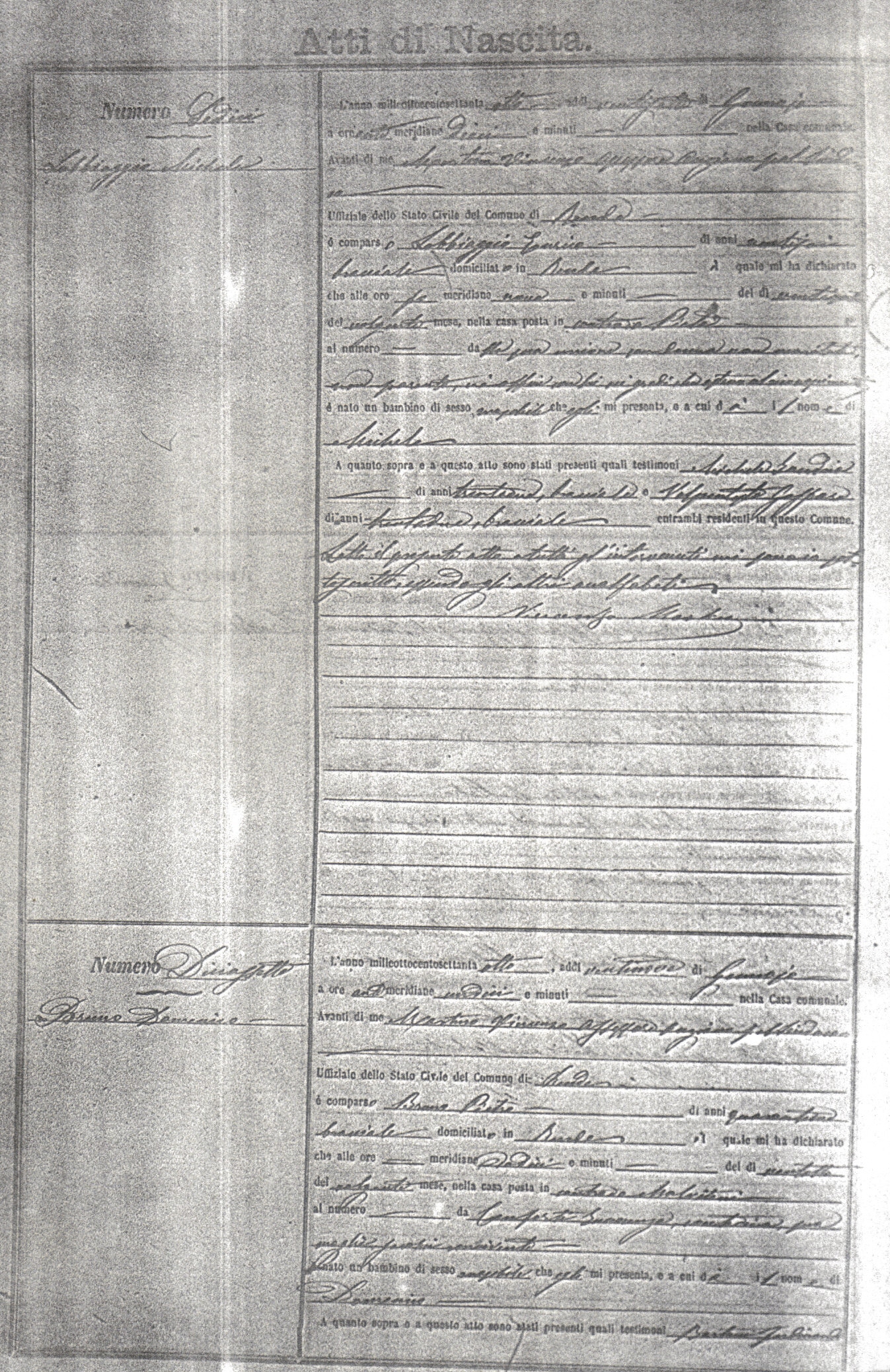 This page has the index to all the birth acts available for Rende That occured in 1878. The index give the atto (act) number which will be linked to a copy of the actual record on the table below. Please be patient while we get these records up. For a translation of the birth act form, visit our sister site, Montalto Uffugo.Net.