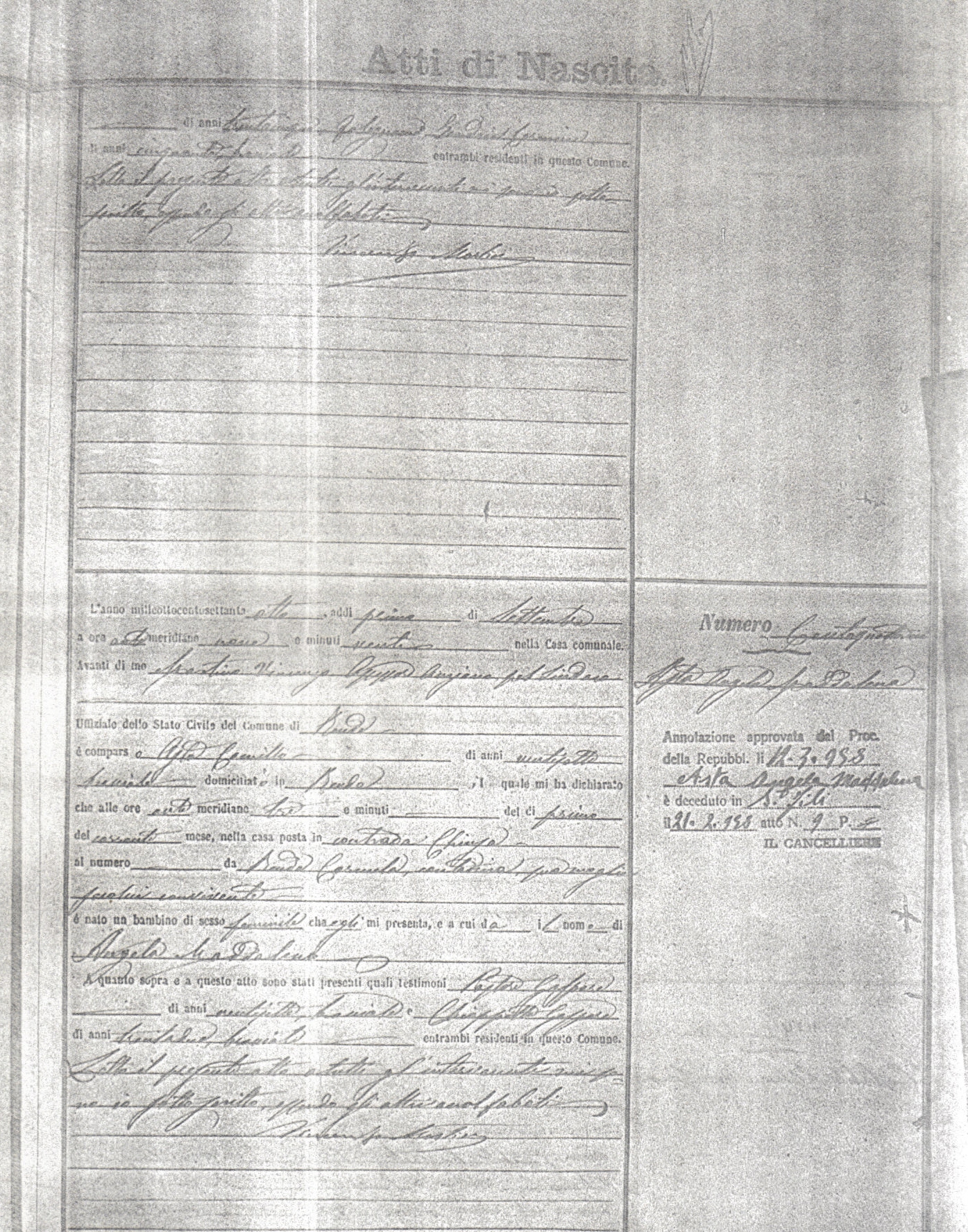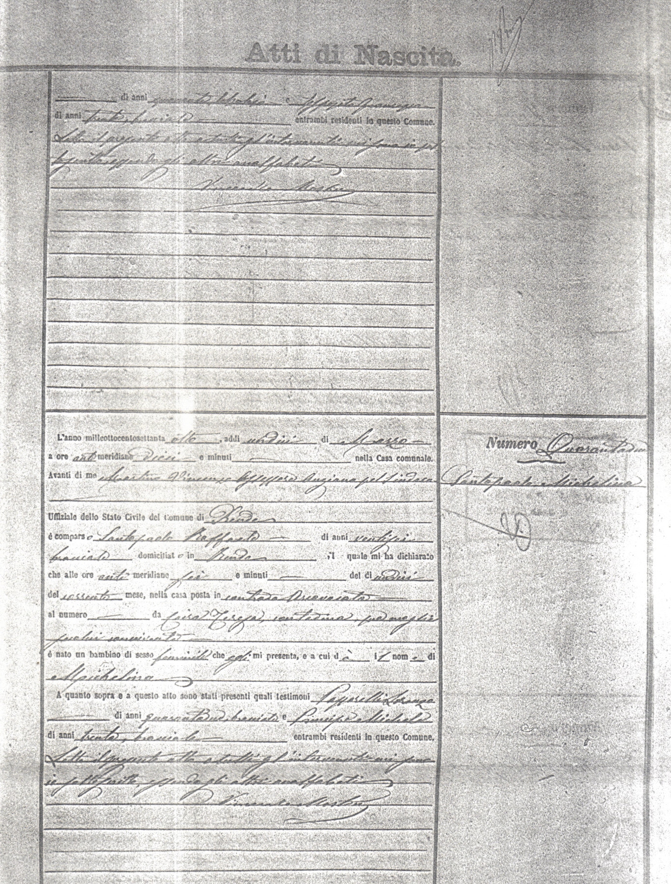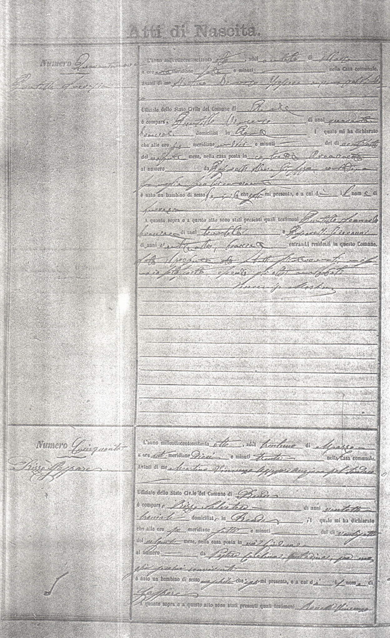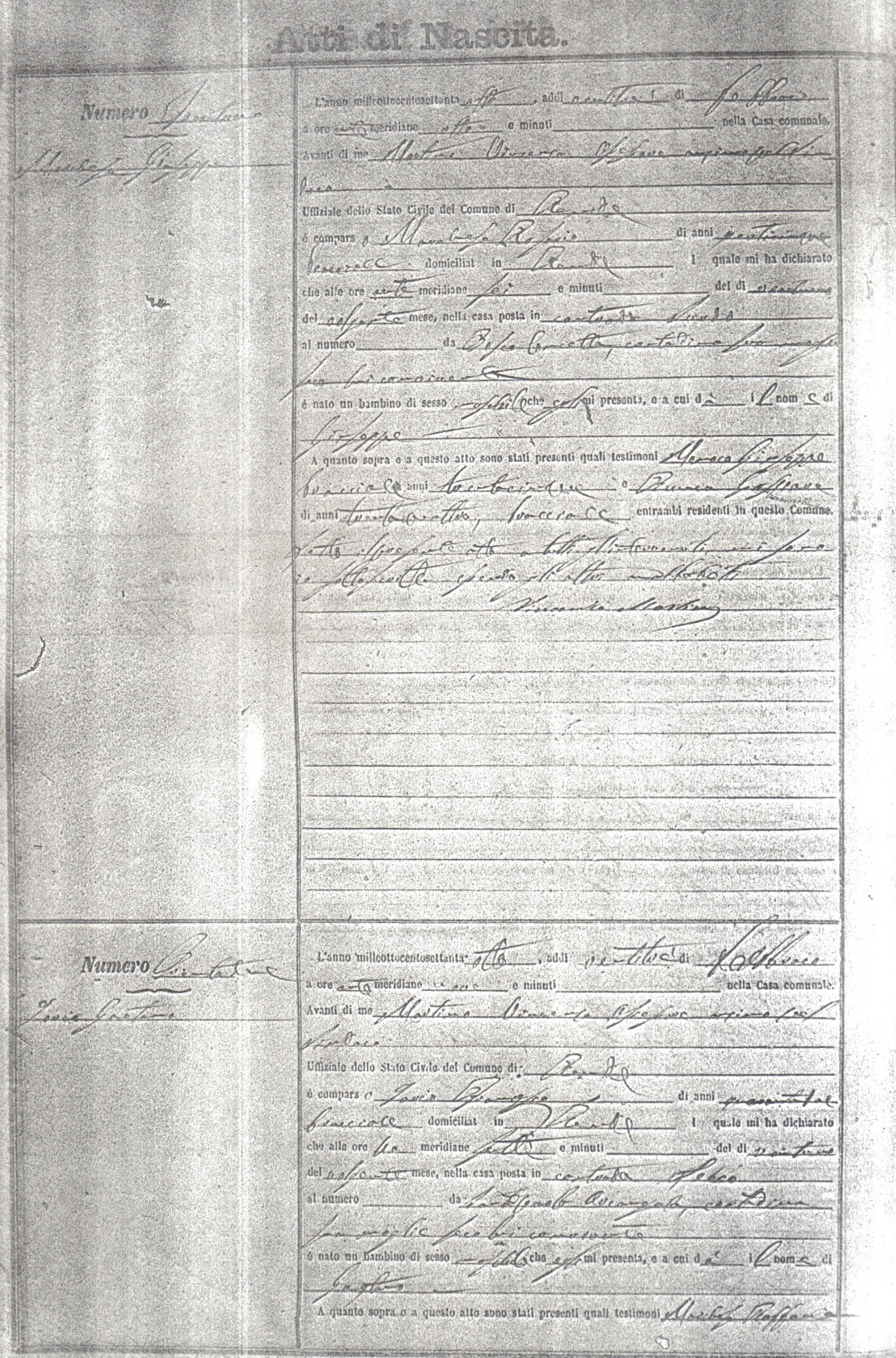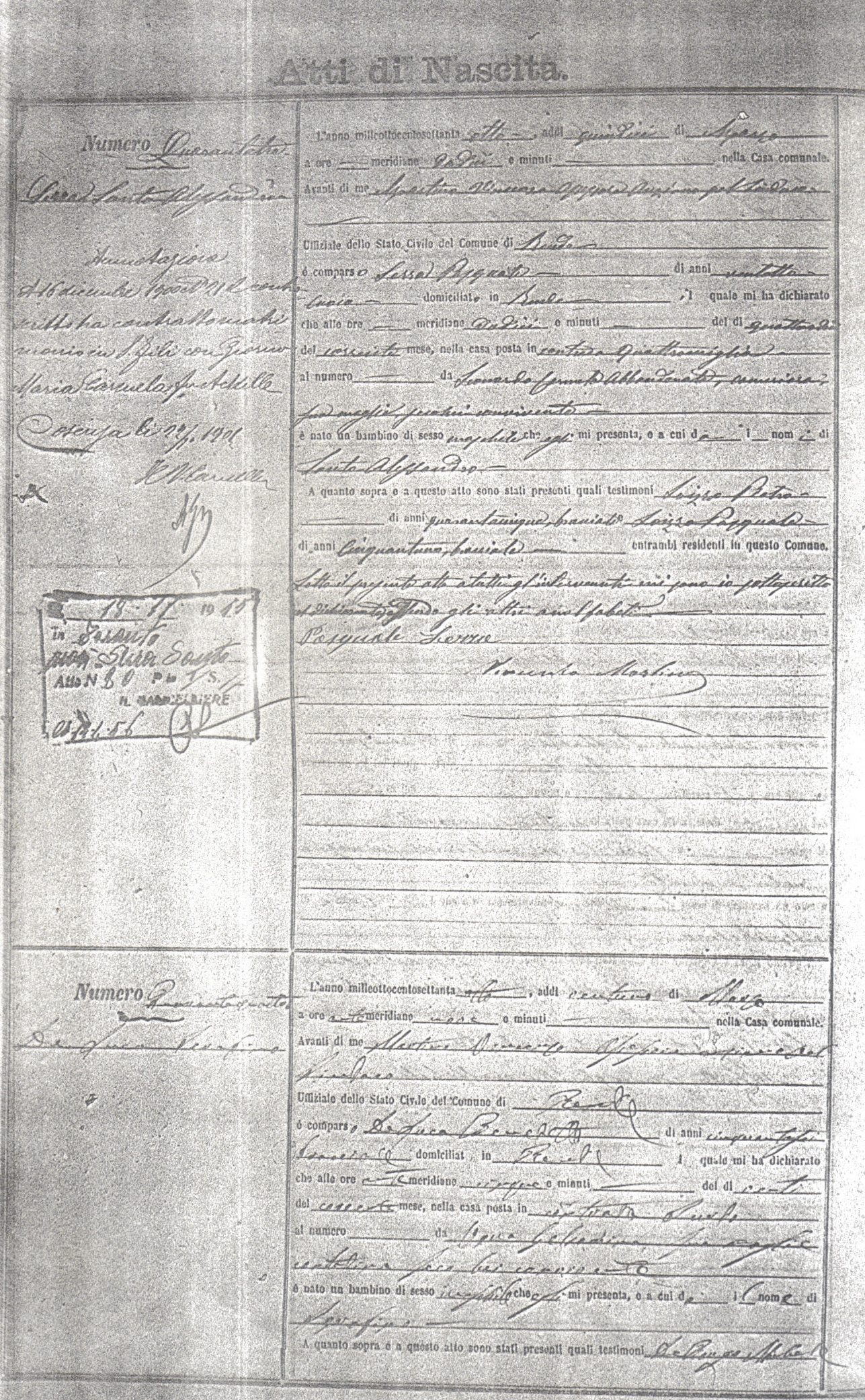 This page has the index to all the birth acts available for Rende That occured in 1878. The index give the atto (act) number which will be linked to a copy of the actual record on the table below. Please be patient while we get these records up. For a translation of the birth act form, visit our sister site, Montalto Uffugo.Net.