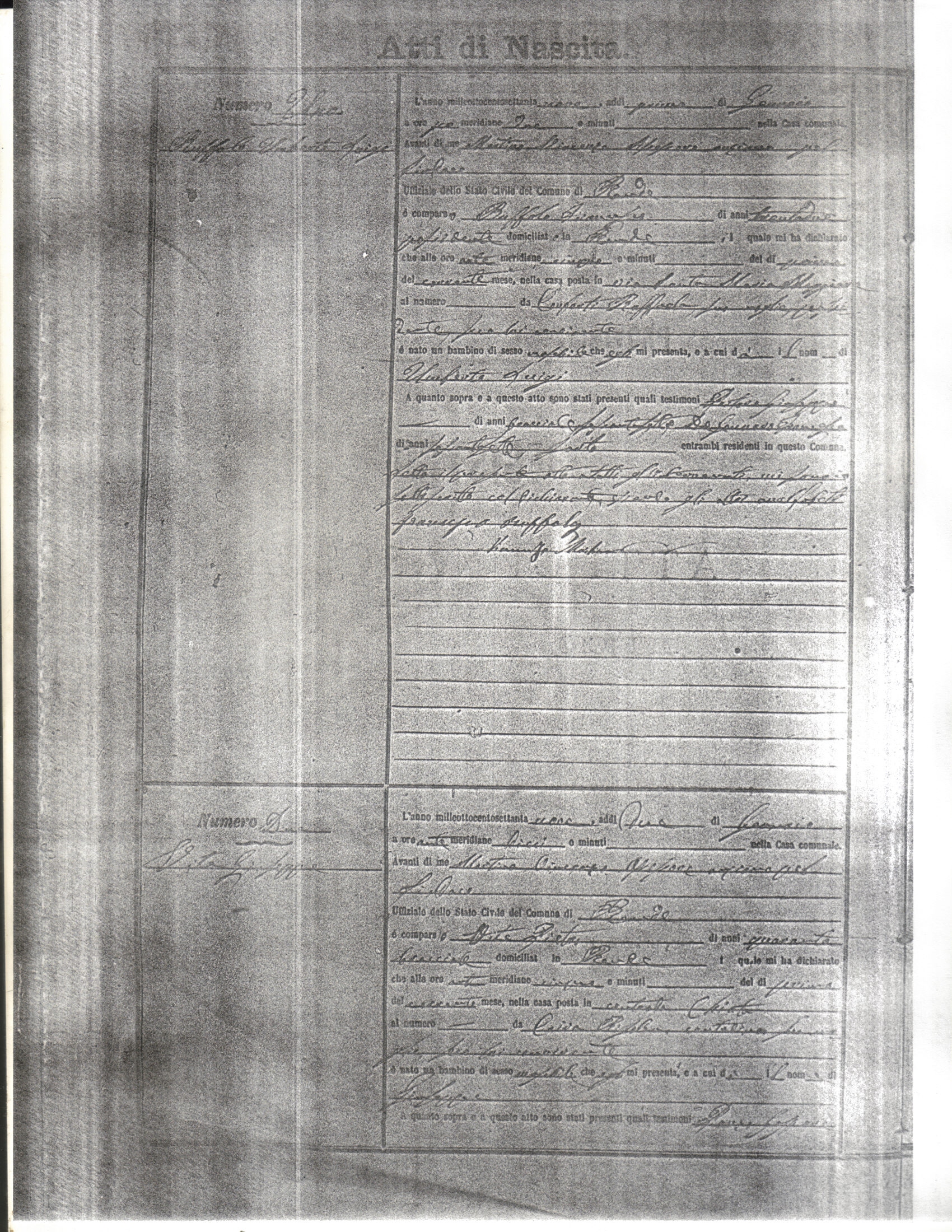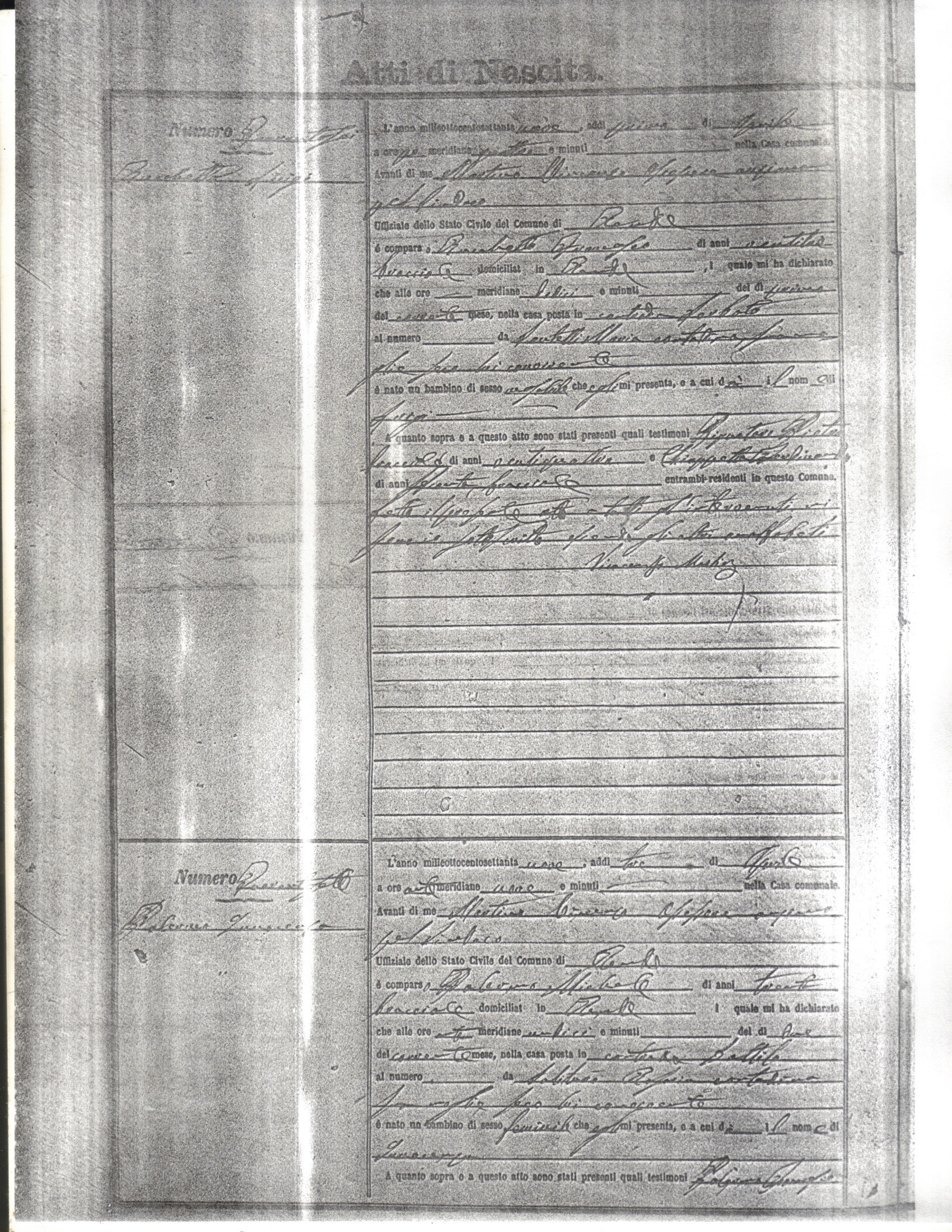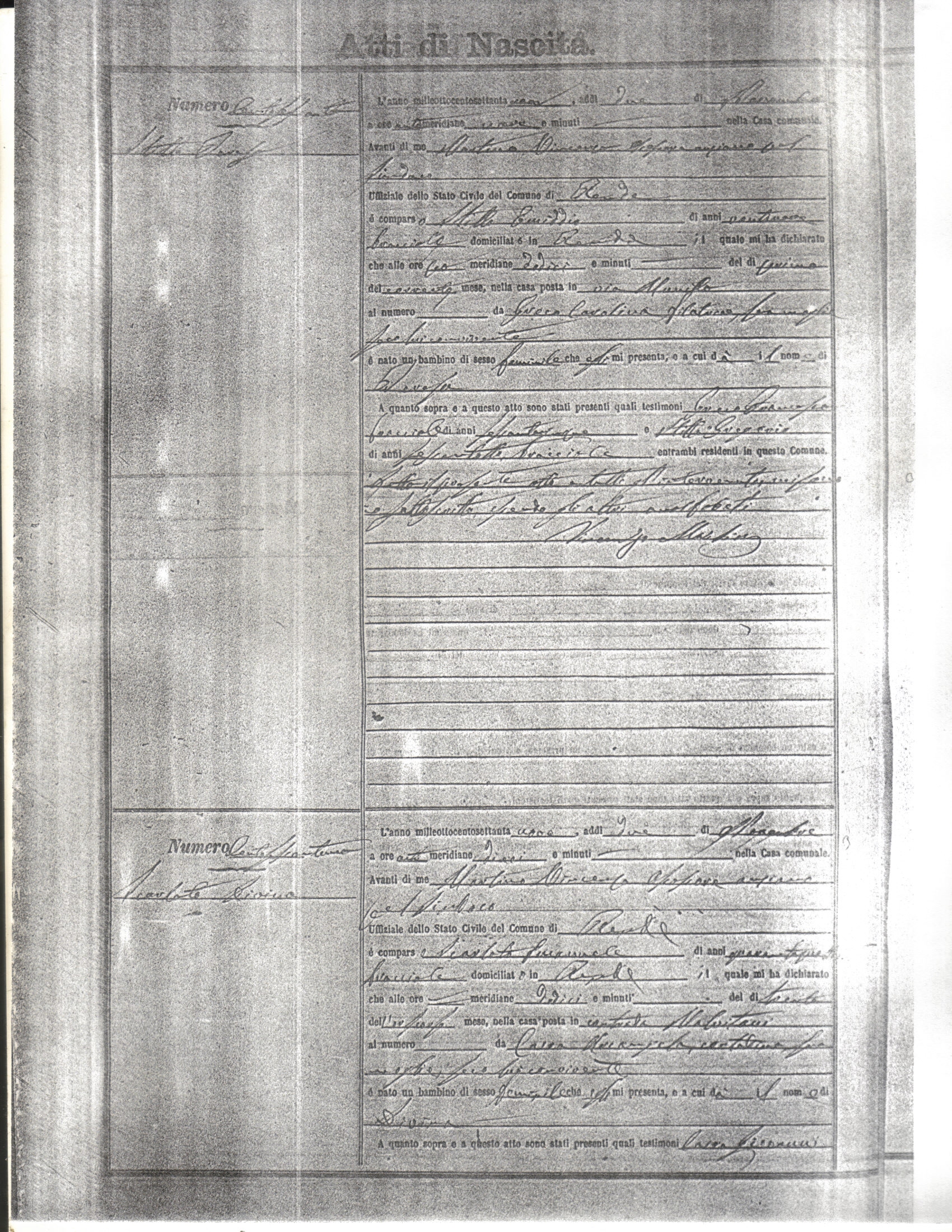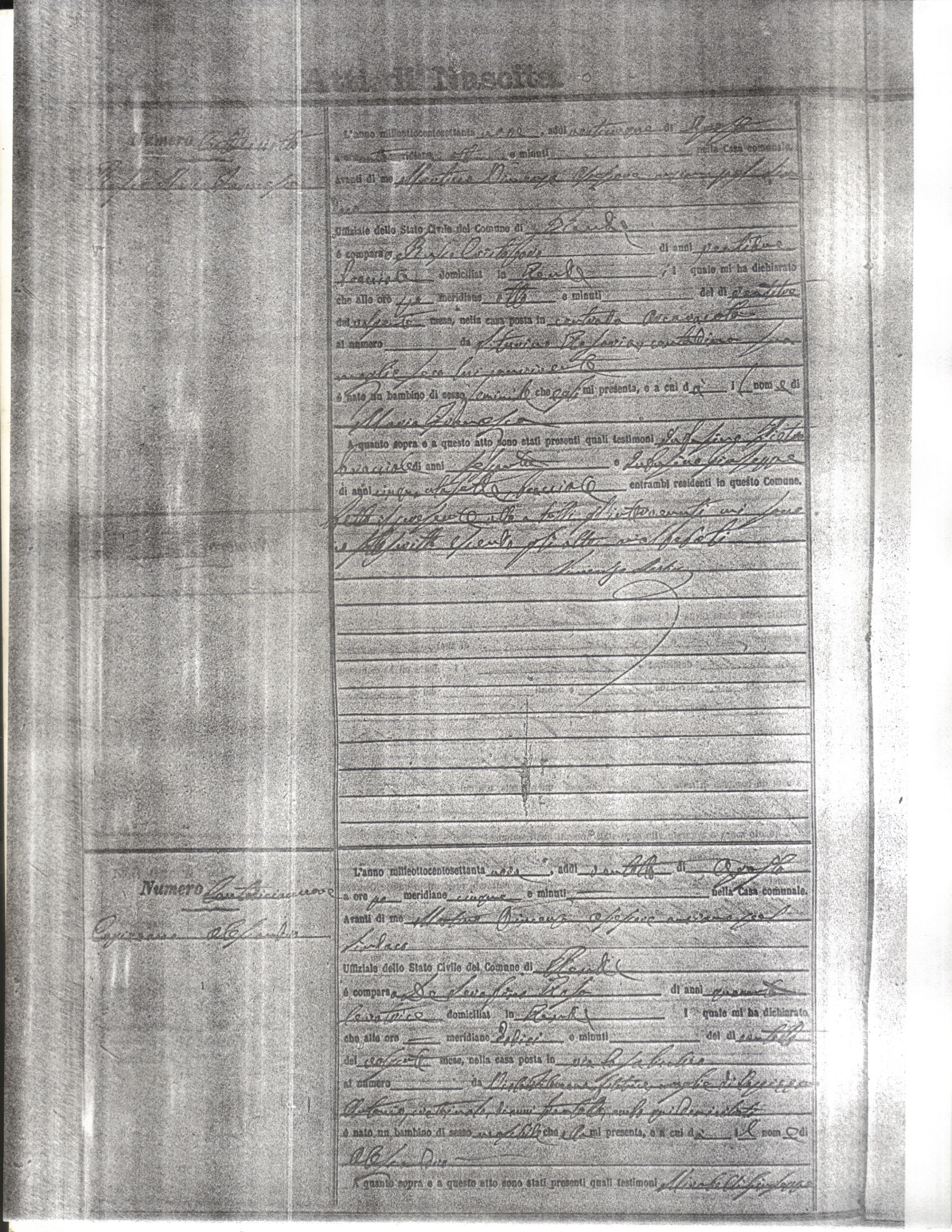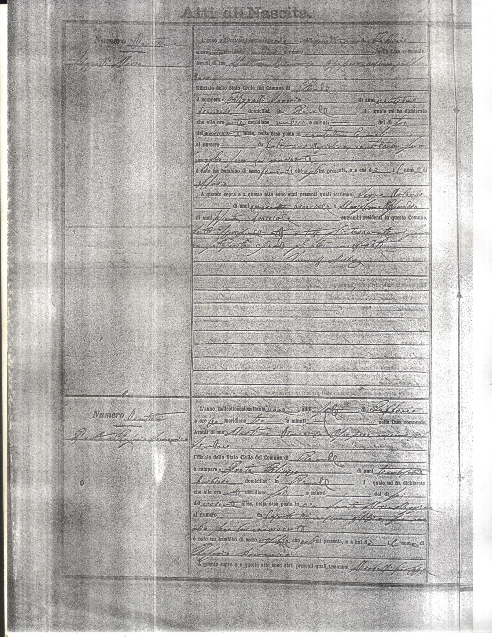 This page has the index to all the birth acts available for Rende That occured in 1879. The index give the atto (act) number which will be linked to a copy of the actual record on the table below. Please be patient while we get these records up. For a translation of the birth act form, visit our sister site, Montalto Uffugo.Net.