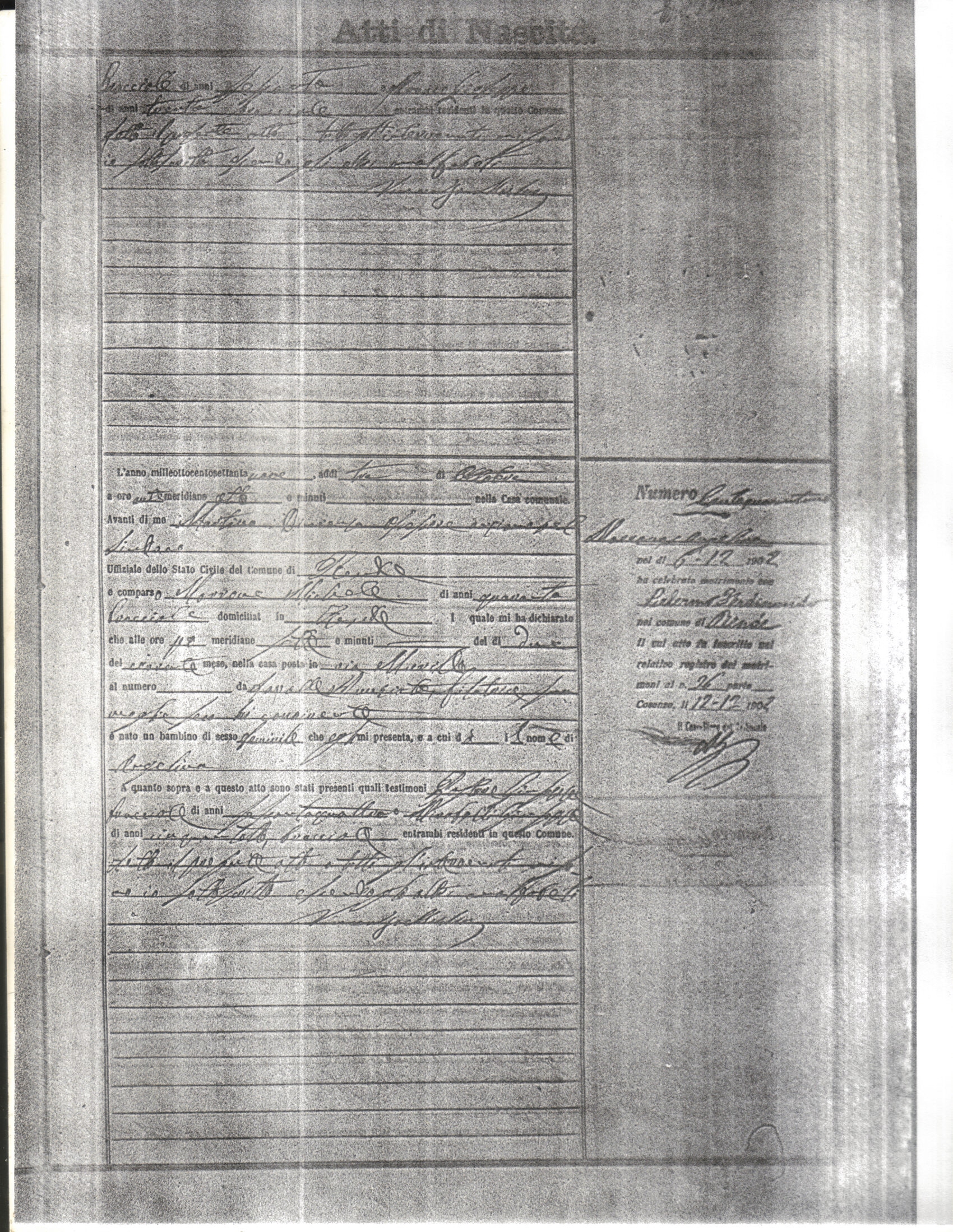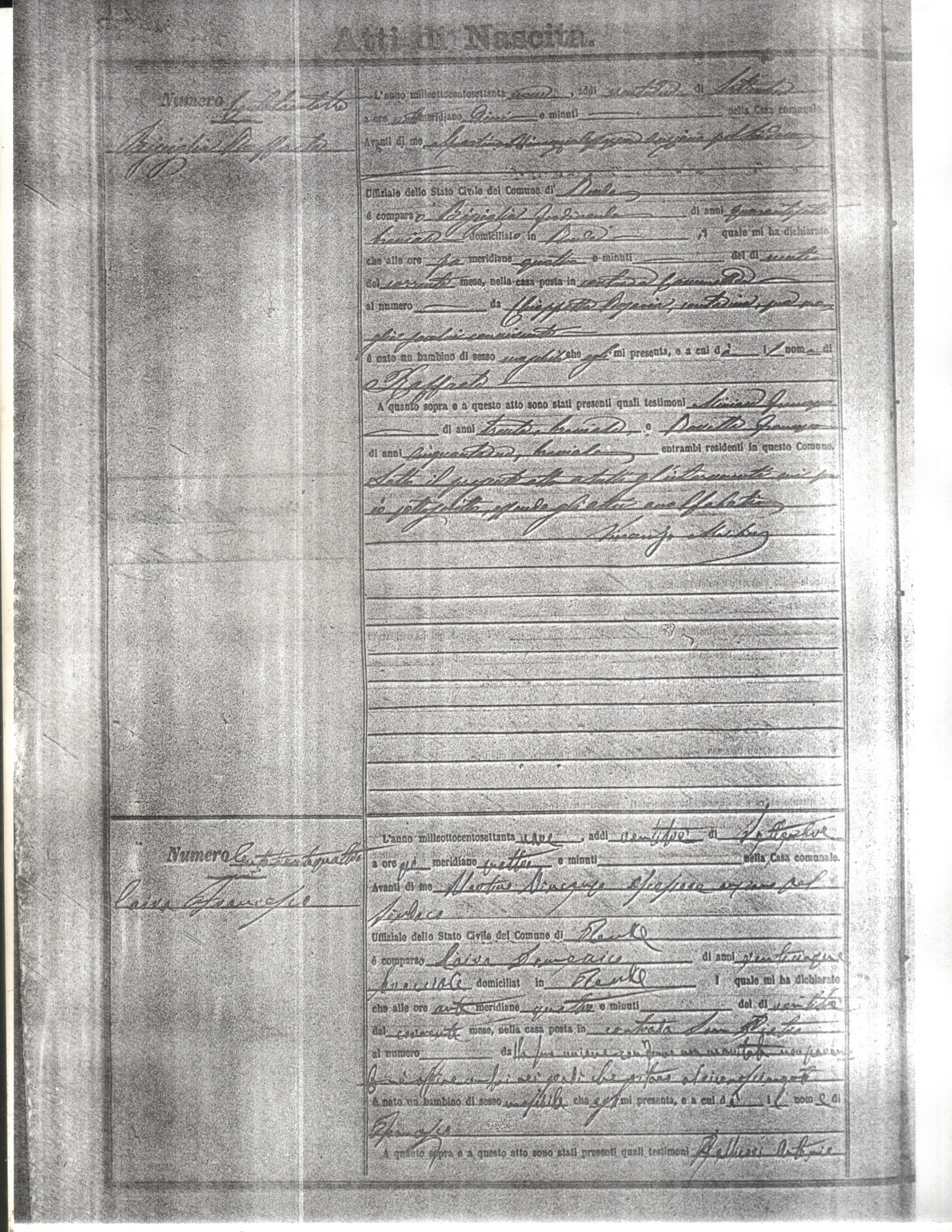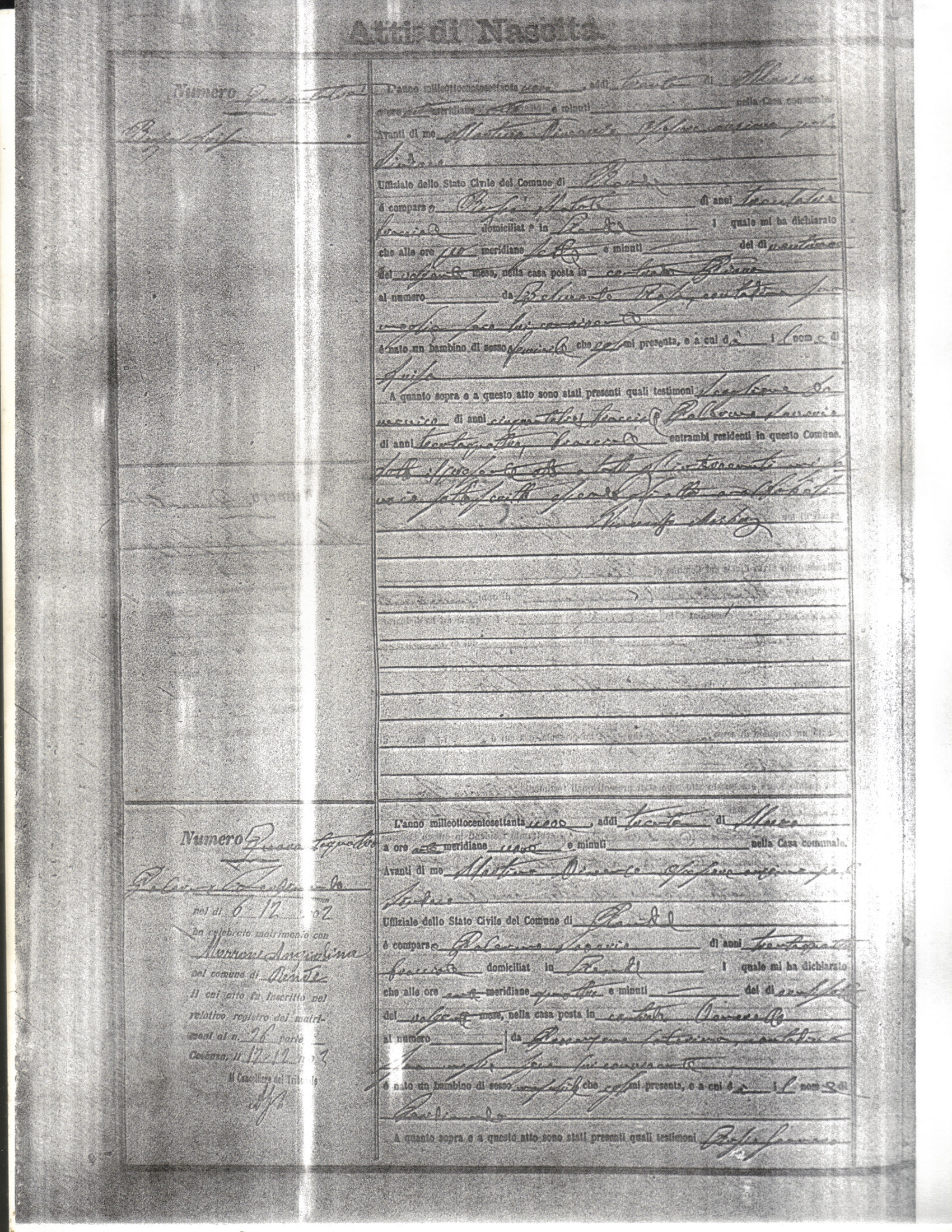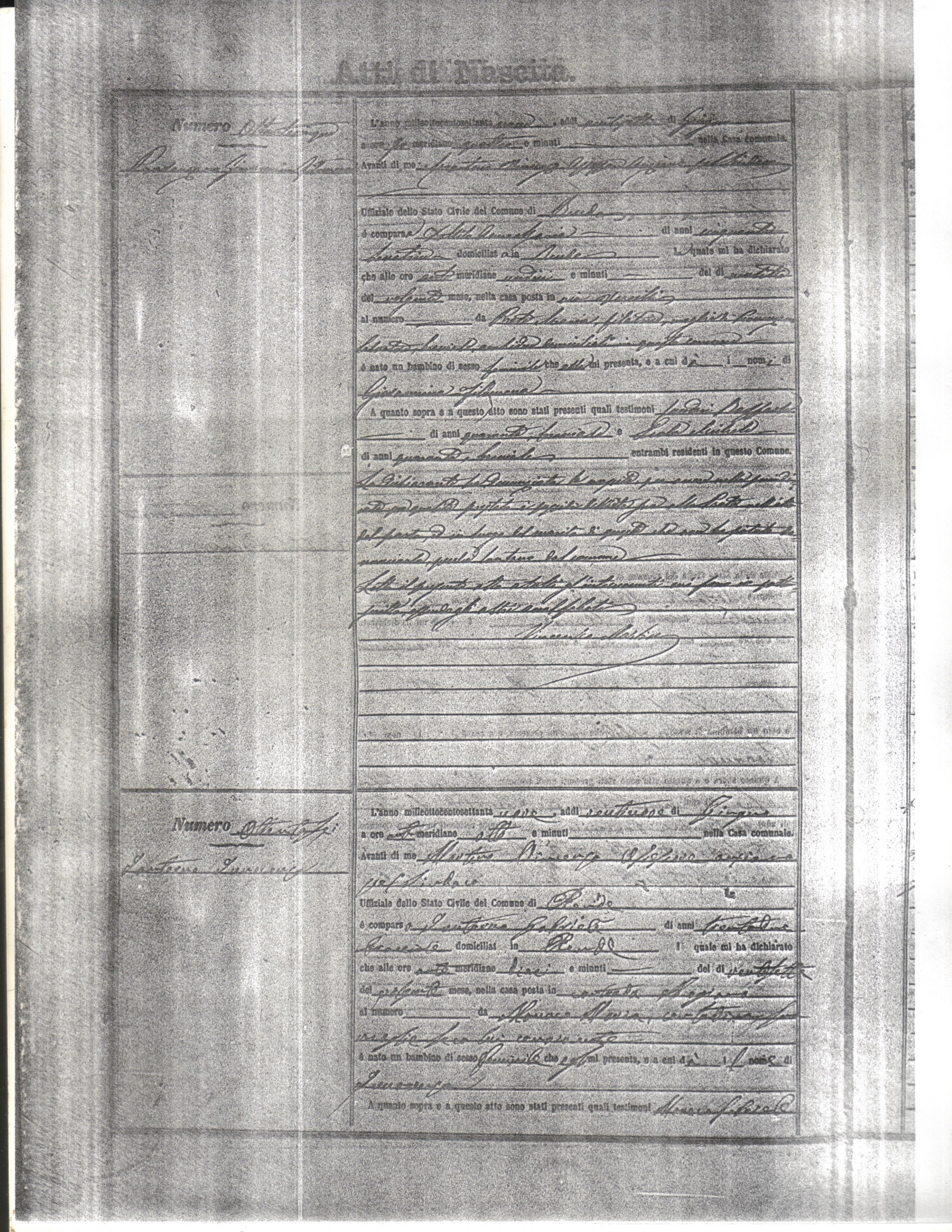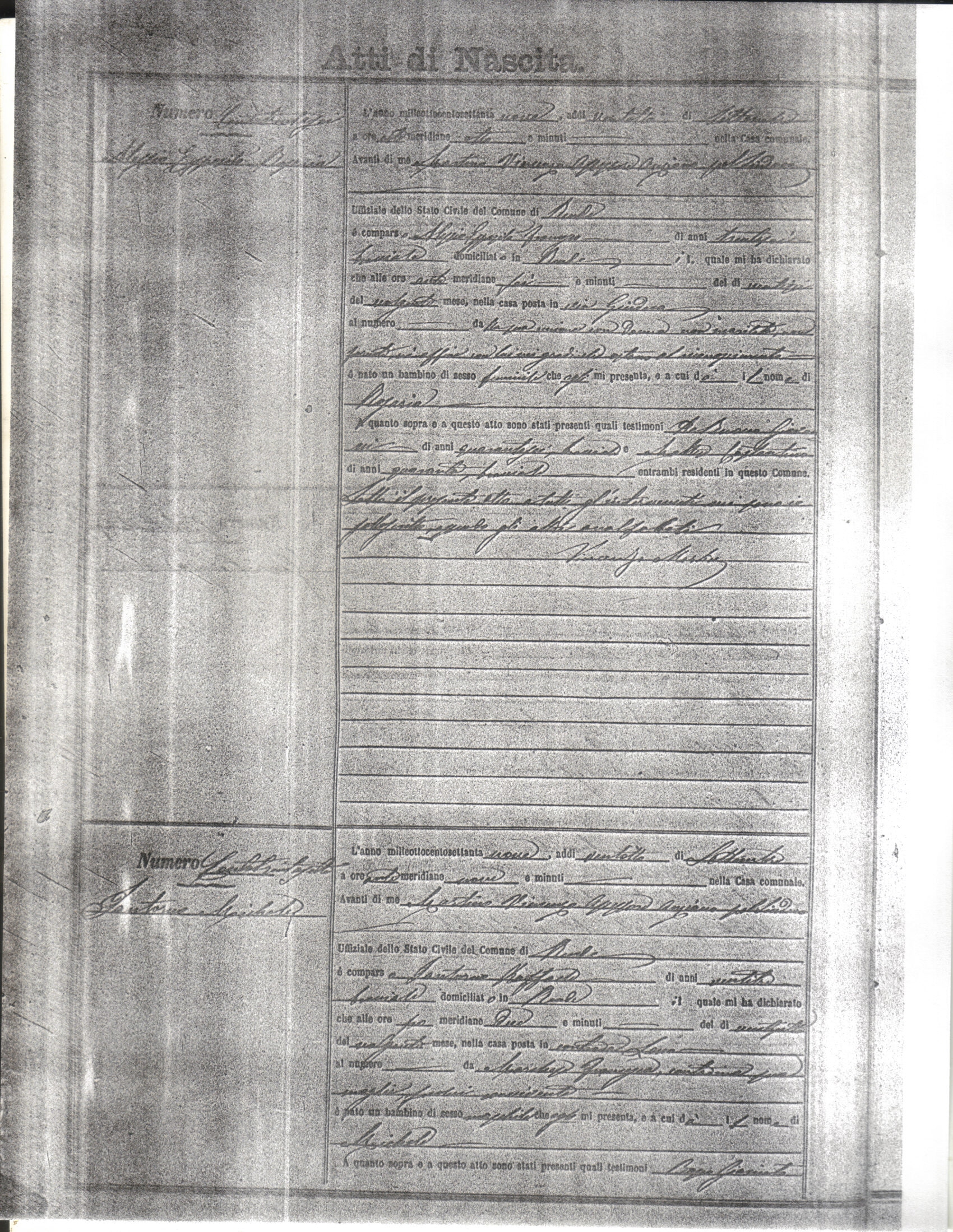 This page has the index to all the birth acts available for Rende That occured in 1879. The index give the atto (act) number which will be linked to a copy of the actual record on the table below. Please be patient while we get these records up. For a translation of the birth act form, visit our sister site, Montalto Uffugo.Net.